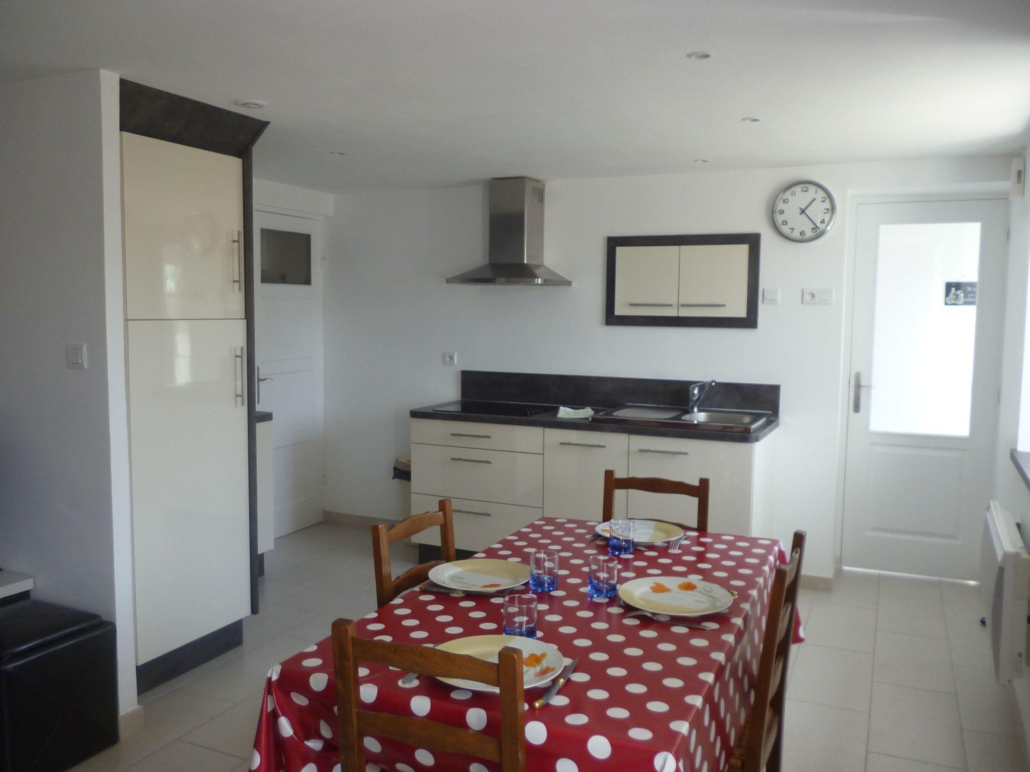 Inside, this two-storey house offers all the comforts you need for an unforgettable stay. On the first floor, you'll find two cosy bedrooms, one with a double bed measuring 1.40m x 1.90m and the other with two single beds measuring 0.90m x 1.90m. Heating is available in all rooms to ensure your comfort in all seasons. The ground floor consists of a spacious living area of approximately 30m2 which incorporates a modern kitchen with mini-oven, cooker, dishwasher, microwave and dining area for four people. Next to the kitchen is a bathroom with shower and a second shower room with WC at the rear of the gite. A lounge with flat-screen TV, sofa, hi-fi and Wi-Fi completes this cosy living space.