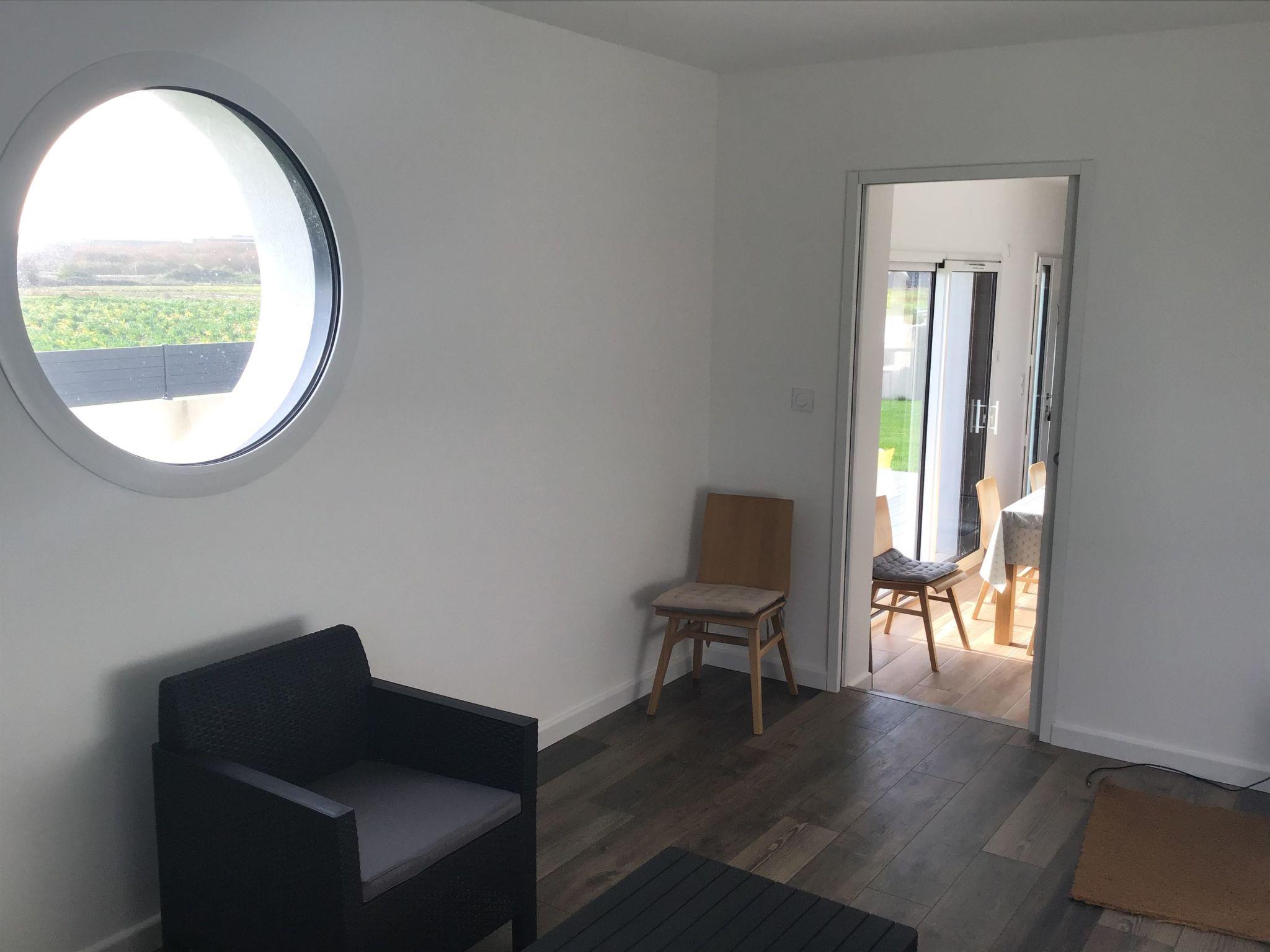 Access to the property is via an electric gate with remote control. The garden is fully fenced for children's safety. To the rear, the dune; opposite, market garden crops; to the side, a football training ground (no activity in summer). An ideal setting for a relaxing break, lulled by the sound of waves and birds.