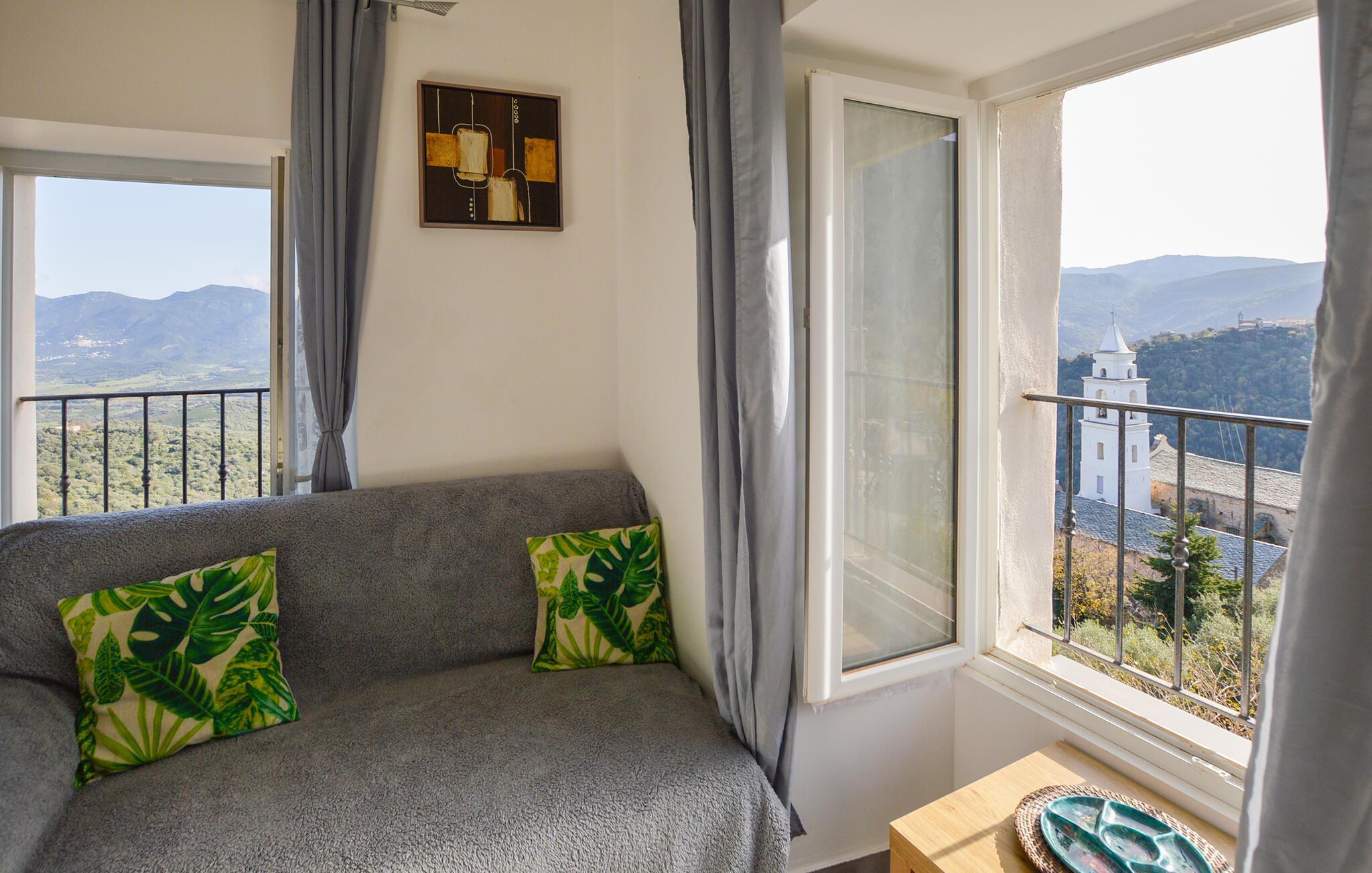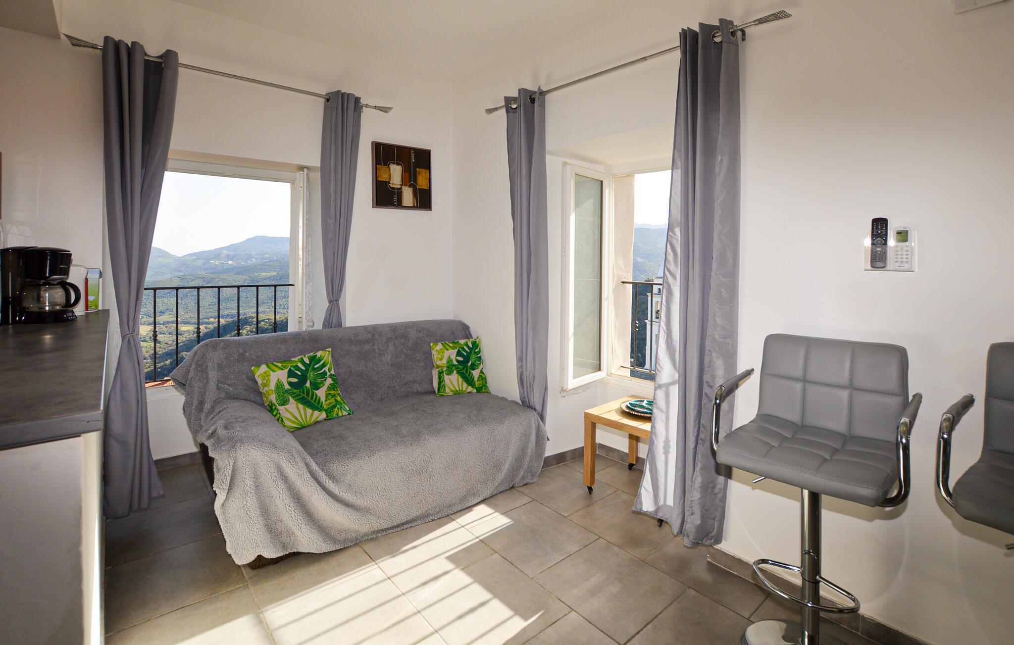 Højt i Korsikas bjerge venter de lyse, nænsomt renoverede værelser i dette gamle landsbyhus fra 1700-tallet på jer. Træd ind og nyd den betagende udsigt fra opholdsstuen i åbent plan, mens I slapper af på sofaen eller tilbereder jeres yndlingsret i det moderne, åbne køkken.