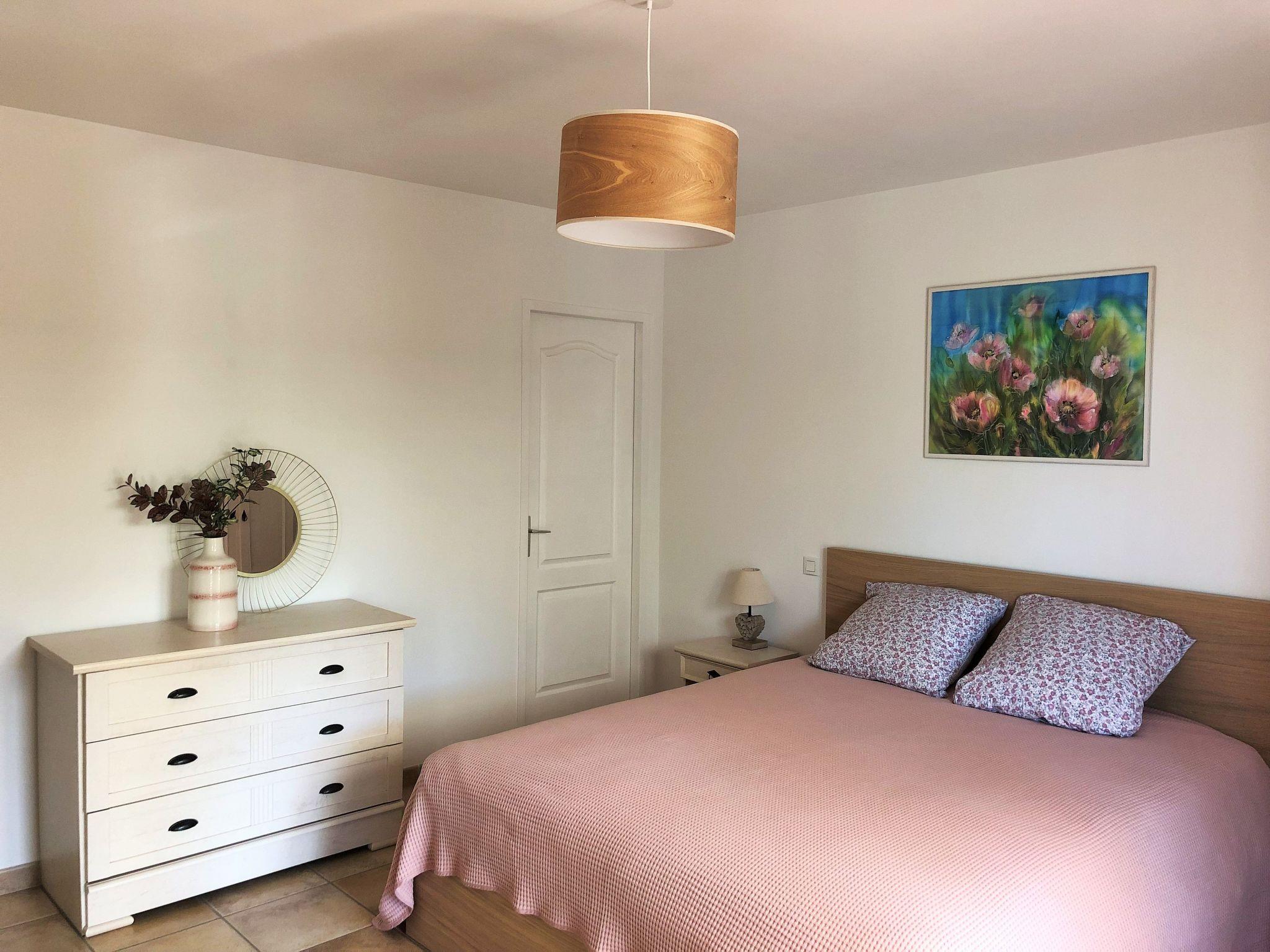 The house is on one level. It is fully air-conditioned. It covers 132 m2. The living room has two two-seater sofas and an armchair. There is also a large 4K television, a DVD player and a stereo system. There are plenty of DVDs and CDs in the drawers, as well as board games. The dining area has a table for six to eight guests. The open-plan kitchen is fully equipped. Inside, three bedrooms with high-quality bedding are arranged on either side of the living room: on one side, a master suite with en-suite shower room, and on the other, two bedrooms, a bathroom and separate toilet. Like the master suite, the romantic bedroom has a queen-size bed. The blue room has two single beds. All the bedrooms overlook the garden. A pantry completes the set, with an extra large fridge and freezer. We can only accommodate 6 people and one child (maximum age 3/4) as we offer a 120cm x 60cm cot in addition to the bedrooms.
