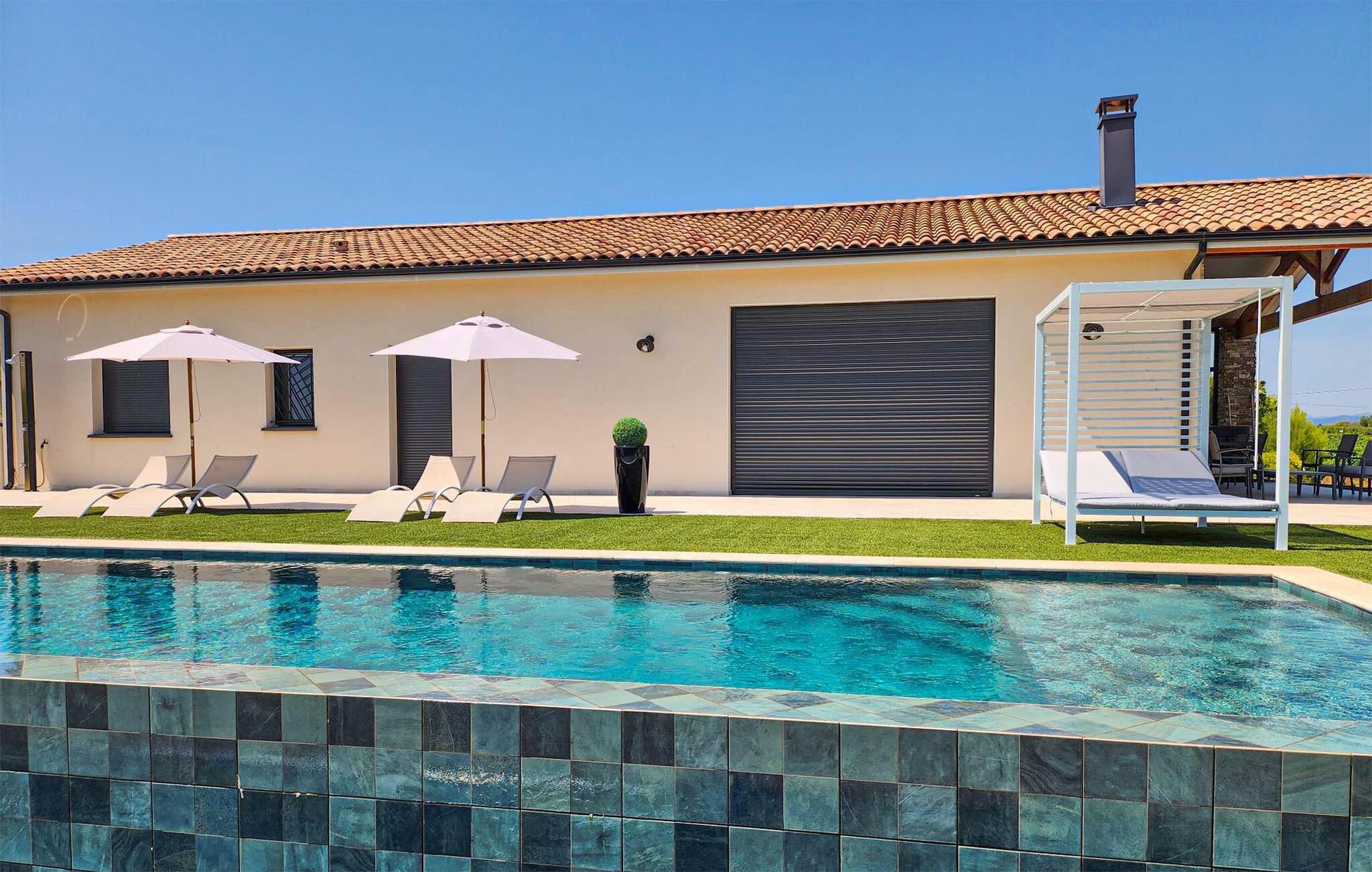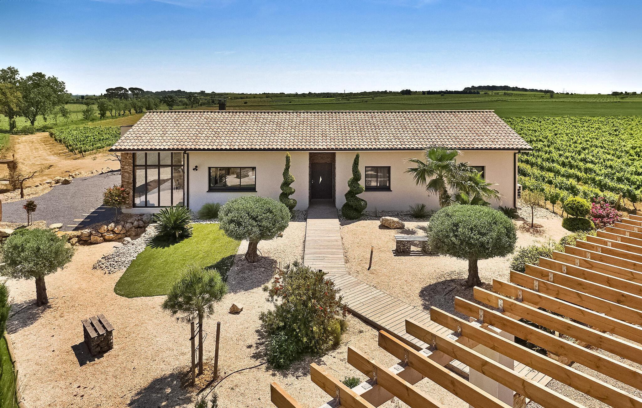 Oplev en moderne ferievilla beliggende på en vingård nær landsbyen Servian og byder på en fængslende udsigt over vingården. Denne villa har en rummelig opholdsstue suppleret af en karnap med udsigt over den indbydende pool. Oplev tre soveværelser i villaen, inklusive en luksuriøs master suite med bruseniche, fritstående badekar og walk-in closet. Vendbart klimaanlæg sikrer komfort i alle rum. Et uafhængigt udhus, der er tilgængeligt gennem haven, har et ekstra soveværelse med ensuite faciliteter. Udenfor kan du nyde en indbydende opvarmet infinity-pool sikret af en alarm, et afslappende spabad og en møbleret terrasse med udsigt over godsets vinmarker. Bemærk venligst: Et lille vandløb grænser op til ejendommens nordlige kant, hvilket kræver forsigtighed med små børn. Denne villa tilbyder et fredfyldt tilflugtssted midt i maleriske vinmarker, lovende afslapning, komfort og betagende udsigter for et uforglemmeligt ophold i hjertet af vinlandet. Omkring 3 min kørsel finder du landsbyen Servian med alle faciliteter (apotek, bageri, bar, restaurant, købmand, supermarked, indendørs swimmingpool, stadion, tennisbane...). Du er omkring 25 min kørsel fra strandene i Vias, Valras, Marseillan, Cap d'Agde, Agde.