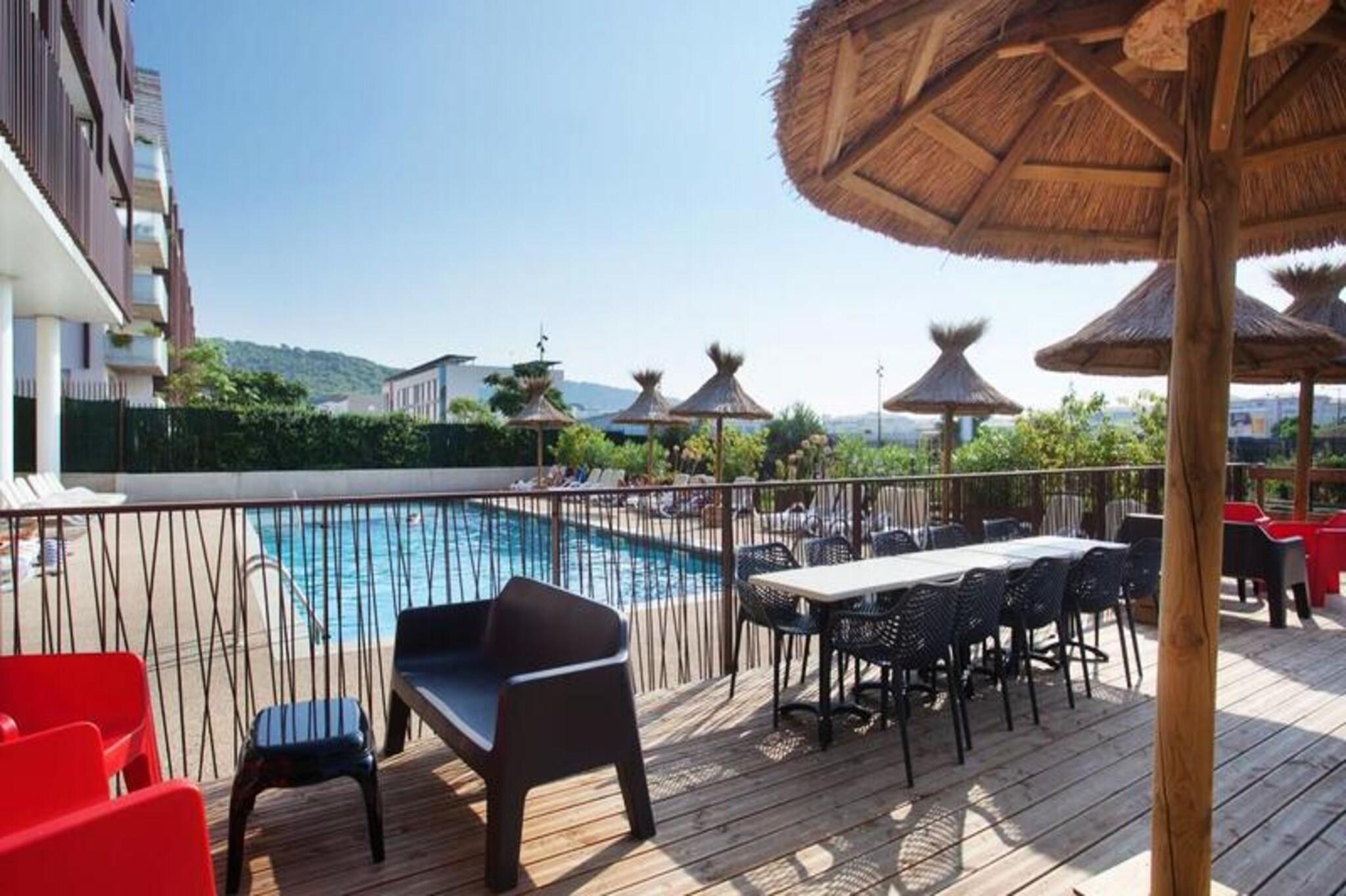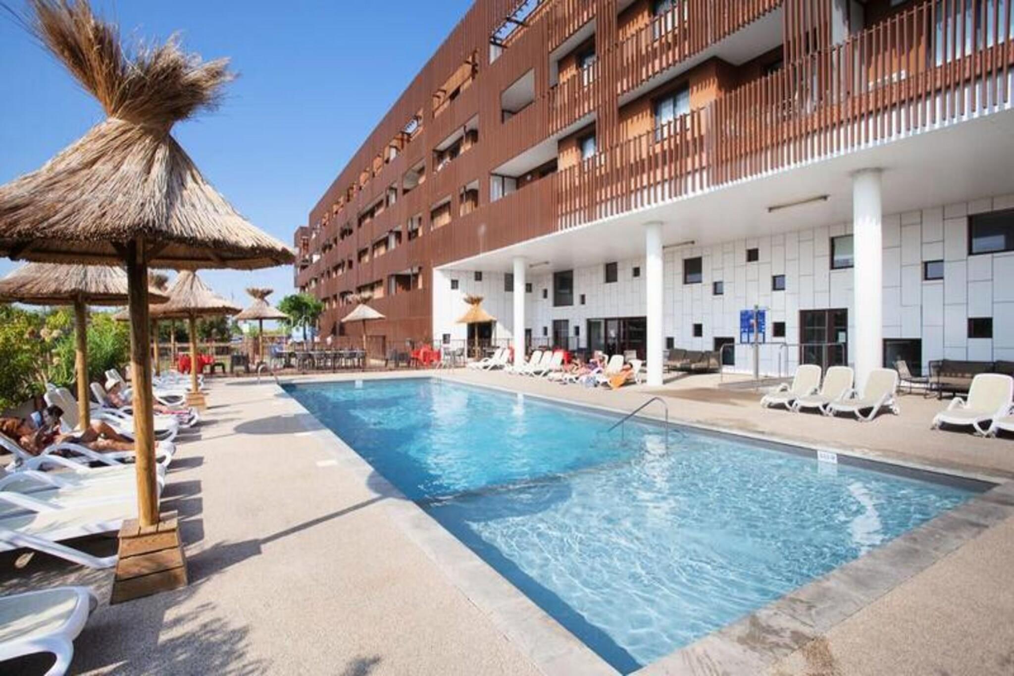 Beliggende i Sète, på bredden af ??Etang de Thau, 30 km fra Montpellier, inviterer Résidence Odalys Terra Gaia dig til et ophold ved Middelhavets kyster i denne typiske landsby ved Languedoc-kysten, hvor fyrreskove og fine sandstrande sameksisterer. og fiskerbåde. Lad dig charmere af dens fiskeri- og marinahavn, dens kanal og dens lokale traditioner, dens varme og populære atmosfære, som vil appellere til unge og gamle. Beliggende i det nye Salins-distrikt kun 300 m fra stranden, vil du nyde godt af dens ideelle beliggenhed og dens nærhed til byens centrum samt de mange tjenester, der er tilgængelige for dig i boligen. Du finder der især en 80m² udendørs swimmingpool med soppebassin og solarium og et airconditioneret wellness-område med hammam og fitness. Børn kan mødes i legeområdet, der er dedikeret til dem. En 116 m² stor morgenmadssal med aircondition venter på dig hver morgen! 3 værelses hytte 7/8 personer. Terrasse. Studio 2 + 2 værelser kabine 6 kommunikerer. Stue med 2 senge. Udstyret køkken. Soveværelse med 2 senge. Kahyt med 2 køjesenge. Badeværelse og toilet. Wifi adgang - gratis i lejlighederne Kæledyr tilladt - EURO70/kæledyr/ophold (7 nætter og mere) - EURO15/nat (mindre end 7 nætter) Depositum (ekstra) - 300 Babysæt - gratis ved forudgående reservation i receptionen (betales om vinteren: EURO9/dag, EURO35/ophold) Sengetøj - inkluderet Håndklæder - (frottéhåndklæde + badelagner): 9 EURO/skift/seng Slutrengøring - inkluderet eksklusive køkken Parkering - udækket, gratis (1 plads pr. lejlighed) Swimmingpool - opvarmet udendørs swimmingpool med åbent soppebassin (åben fra april til september) Sauna - 9€/person/session - 40€ (5 adgangspakke) Turistskat (ekstra gebyr) - Betales på stedet i henhold til gældende takst Fjernsyn - inkluderet