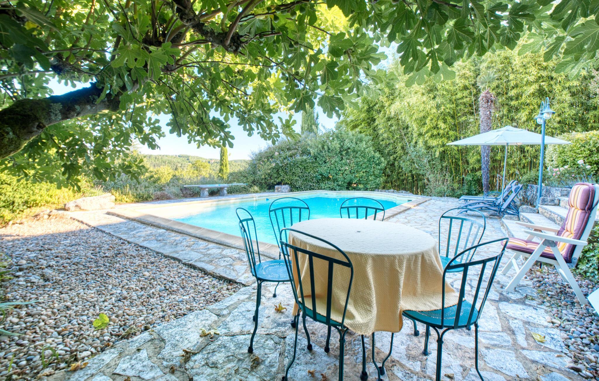 Fra den solrige terrasse har I en fantastisk udsigt over den grønne dal og haven. Begynd dagene med morgenmad udendørs, slap af på en liggestol eller hop i den smukke pool. Om aftenen inviterer grillpladsen til hyggestunder under stjernehimlen.