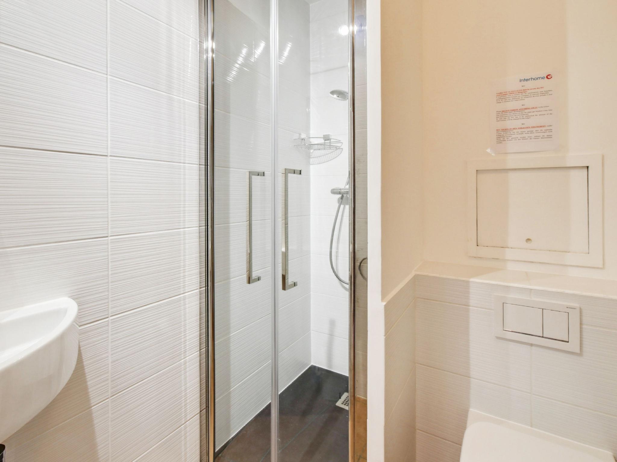 3-room apartment 39 m2 on 2nd floor. Practical and comfortable furnishings: living/dining room with 1 bed (80 cm, length 190 cm), TV (flat screen). Exit to the terrace. Sleeping alcove with 1 x 2 bunk beds (80 cm, length 190 cm). 1 room with 1 french bed (140 cm, length 190 cm). Kitchenette (dishwasher, 4 ceramic glass hob hotplates, toaster, kettle, microwave, electric coffee machine). Bathroom, shower/WC. Electric heating. Terrace 7 m2, west facing position. Terrace furniture. Beautiful view of the sea. Facilities: Internet (WiFi, extra). Parking space n 468 (niveau 1) (roofed), height 190 cm, width 240 cm. Please note: apartment street side. TV only FR. Smoke alarm. Instead of an enclosed bedroom, some sleeping areas are located in an open-plan area (gallery, alcove, etc.).