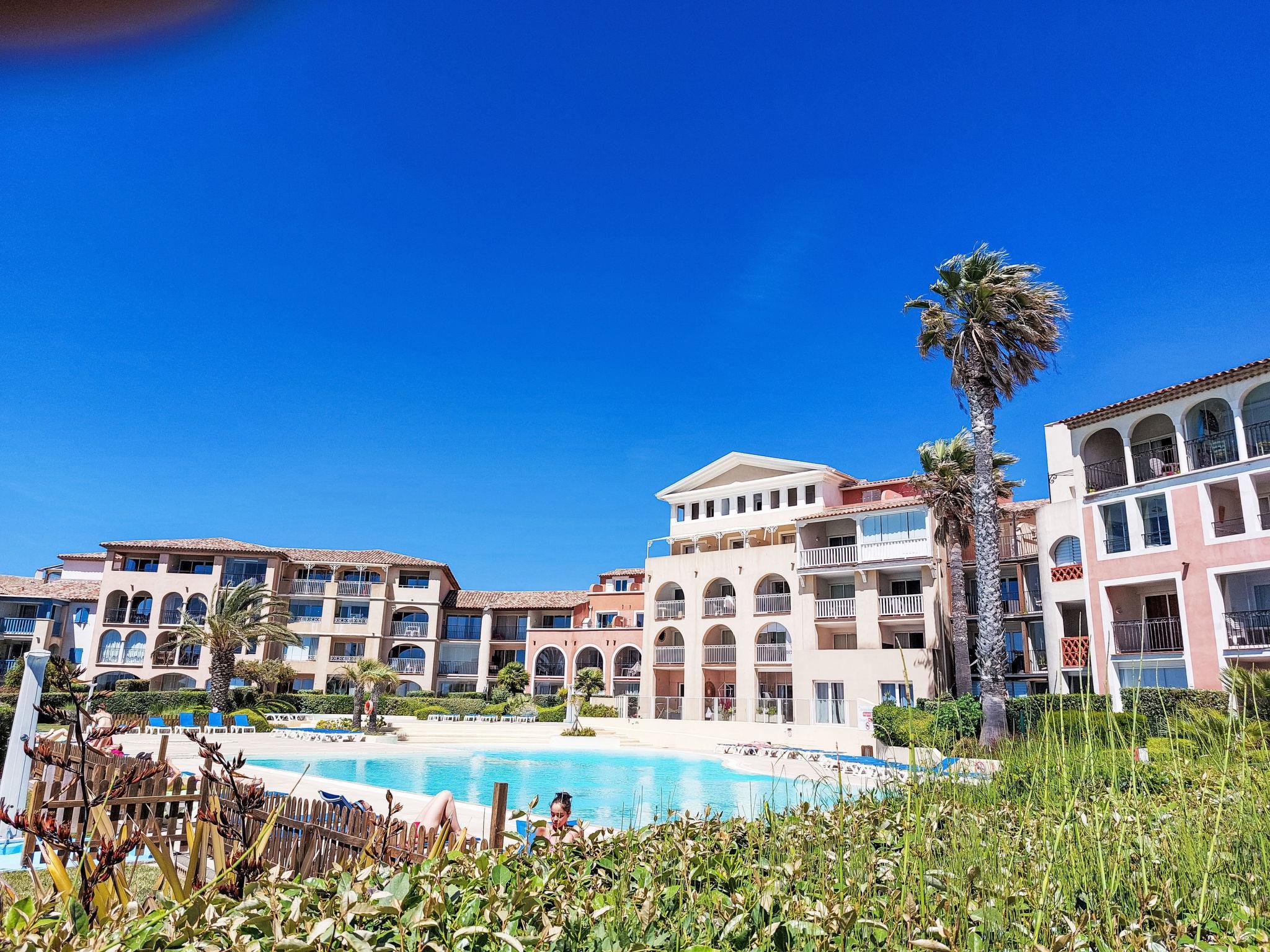 La Coudoulière: Residence "Les Rivages de Coudoulière", 3 storeys. 3 km from the centre of Six Fours, in a quiet position, 50 m from the sea, 100 m from the beach, in the countryside. For shared use: swimming pool (25 x 15 m, 340 m2, depth 60 - 160 cm, seasonal availability: 15.May. - 15.Oct. pool opening hours: 10:00-19:00) with internal staircase. Unconventional pool shape. Children's pool. In the complex: lift. Shop, restaurant, café 50 m, bus stop 200 m, sandy beach "La coudoulière" 100 m, park "Domaine de la Coudoulière" 50 m, lake Domaine de la Coudoulière 50 m. Sports harbour 50 m, golf course (18 hole) 13 km. Hiking paths: Sainte Baume, Sainte Victoire, Calanques Port-Cros, Porquerolles, Ile verte, Embiez, Figuerolles, Cassis. Please note: the keys‘ handover takes place by the agency Interhome in SIX FOURS LES PLAGES, 2 km. Additional accommodations can be booked.