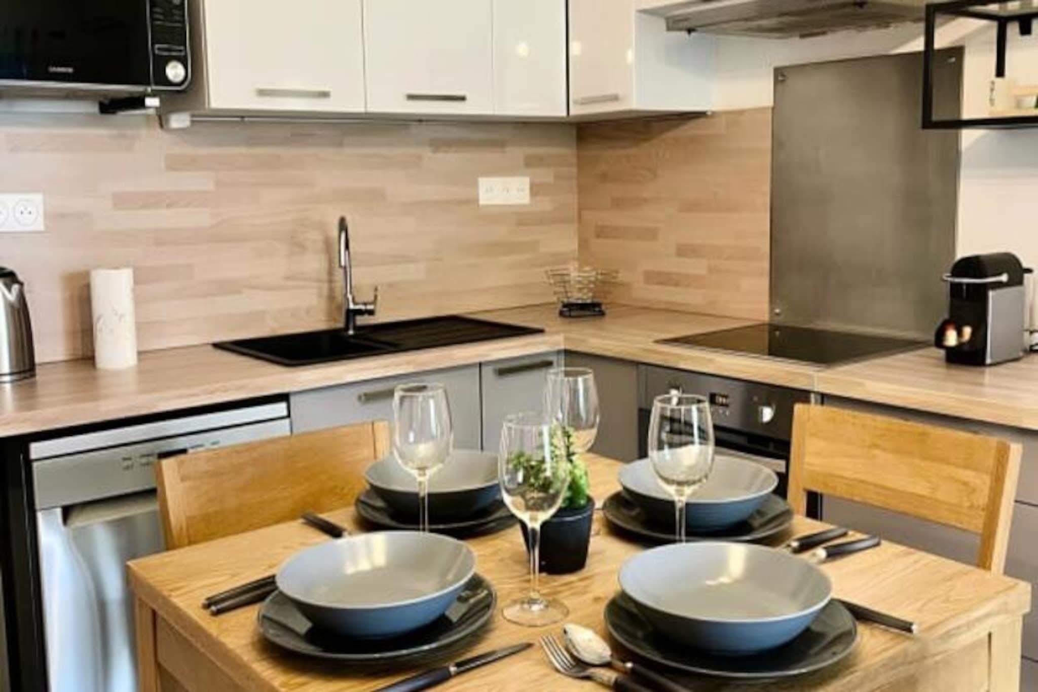 Kun en kort gåtur fra den gyldne sandstrand på Bonnegrâce-stranden og en hurtig køretur fra den charmerende havn i Sanary, tilbyder denne dejlige lejlighed på 55 m² et roligt kystnært tilflugtssted i hjertet af Provence. Beliggende i en fredelig toetagers bygning er denne ejendom en oase af ro, perfekt til at slappe af og nyde middelhavslivsstilen. Uanset om du nipper til din morgenkaffe på den rummelige 11 m² store terrasse eller nyder den blide havbrise, føles hvert øjeblik her som et frisk pust. Indvendigt er lejligheden omhyggeligt designet til din komfort. Det åbne køkken er fuldt udstyret med moderne apparater, herunder ovn, mikrobølgeovn, Nespresso-kaffemaskine og et stort køleskab med fryser, hvilket gør det nemt at tilberede måltider med lokale råvarer. Opholdsstuen, komplet med en hyggelig sovesofa, tv og Wi-Fi, er ideel til afslapning efter en dag med udforskning. Soveværelset har en komfortabel dobbeltseng og udsigt over terrassen, mens det andet soveværelse, designet til børn, tilbyder en enkeltseng på mezzaninen. Et elegant badeværelse med bruseniche og separat toilet bidrager til bekvemmeligheden. Sengelinned, håndklæder og aircondition er inkluderet for et bekymringsfrit ophold. Gå udenfor til den private terrasse, hvor havemøbler og et spisebord til seks personer inviterer dig til at nyde måltider under åben himmel under den provencalske sol. Med en privat parkeringsplads og ekstra gæsteparkering er det nemt at komme rundt. Concierge-servicen, LES CLES DU CABANON, er tilgængelig syv dage om ugen for at sikre, at dit ophold bliver problemfrit. Denne lejlighed har en perfekt beliggenhed og placerer dig i nærheden af ??Bonnegrâce-stranden, de pulserende markeder i Sanary-sur-Mer og de fantastiske kyststier på Côte d'Azur. Uanset om du er her for at nyde solen, udforske de charmerende byer eller blot slappe af, lover denne ejendom en uforglemmelig ferie ved havet.