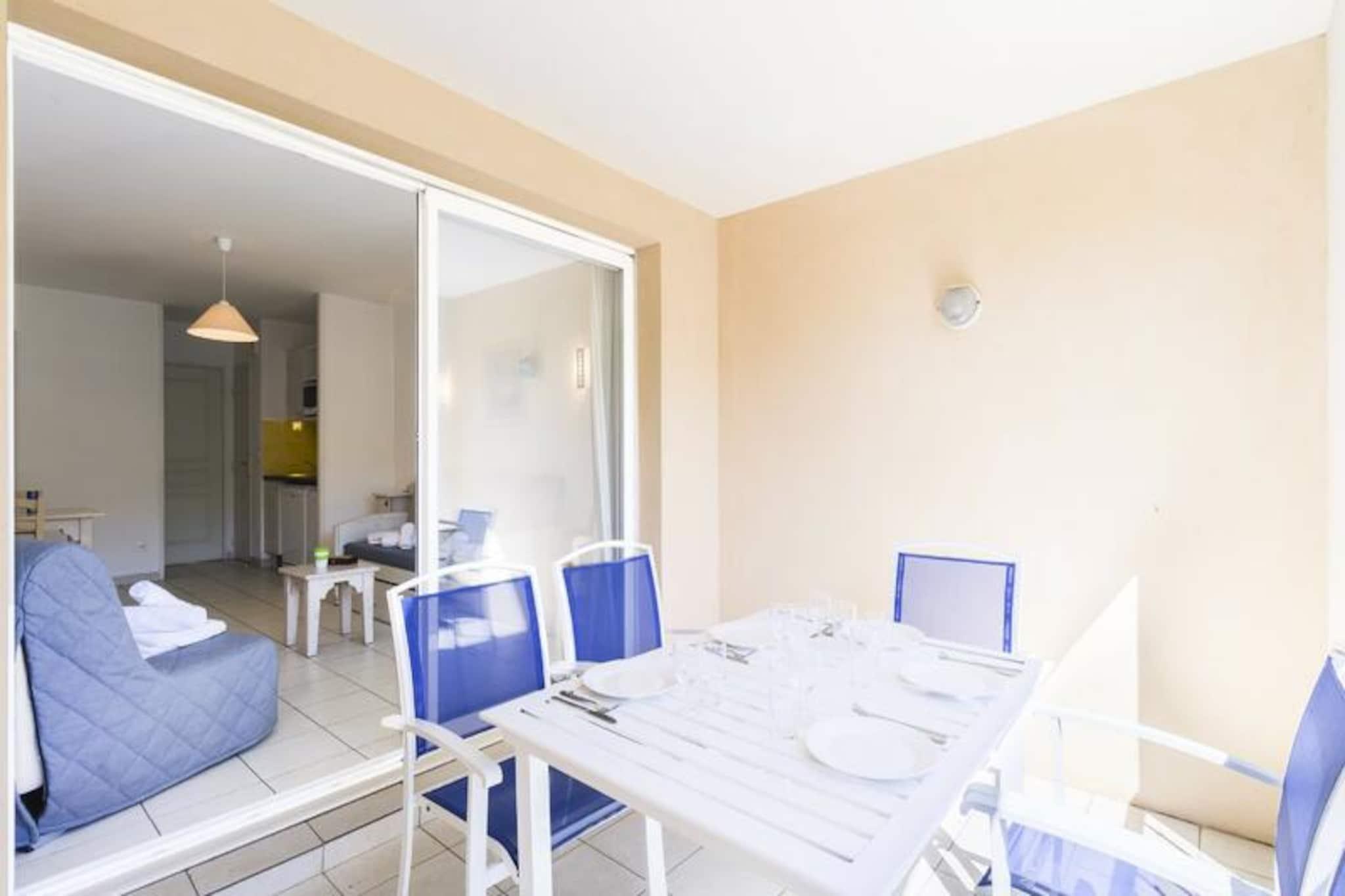 Denne rummelige 2-værelses lejlighed i Six-Fours-les-Plages er designet til komfort og kan rumme op til 4 gæster. Det har en stue med en udtrækssovesofa, et hyggeligt soveværelse med en dobbeltseng og et badeværelse med separat toilet. Ejendommen er kæledyrsvenlig mod et ekstra gebyr, hvilket giver dine kæledyr mulighed for at deltage i feriehyggen. Gratis Wi-Fi, sengetøj og håndklæder er inkluderet. Der er en privat parkeringsplads til hver bolig, og babyudstyr er tilgængeligt efter anmodning. Ejendommen ligger kun 350 meter fra stranden og 1,5 km fra byens centrum og tilbyder nem adgang til en række lokale attraktioner. Udforsk den 18 kilometer lange kystlinje, lystbådehavne og fine sandstrande, perfekt til solbadning eller vandaktiviteter. Området byder også på et udvalg af caféer, restauranter og markeder, hvor du kan nyde middelhavskøkken. Bandol og Toulon er i nærheden og tilbyder endnu flere kulturelle og rekreative muligheder. Lejligheden har et fuldt udstyret køkken, hvilket gør det nemt at tilberede måltider under dit ophold. Du kan også nyde den udendørs balkon eller terrasse for at slappe af og nyde omgivelserne. Yderligere faciliteter inkluderer adgang til den opvarmede udendørs swimmingpool (sæsonbestemt), en soppebassin og gratis udendørs parkering. For ekstra bekvemmelighed er en morgenbuffet tilgængelig, og slutrengøringspakken er inkluderet, eksklusive køkkenområdet og opvasken.