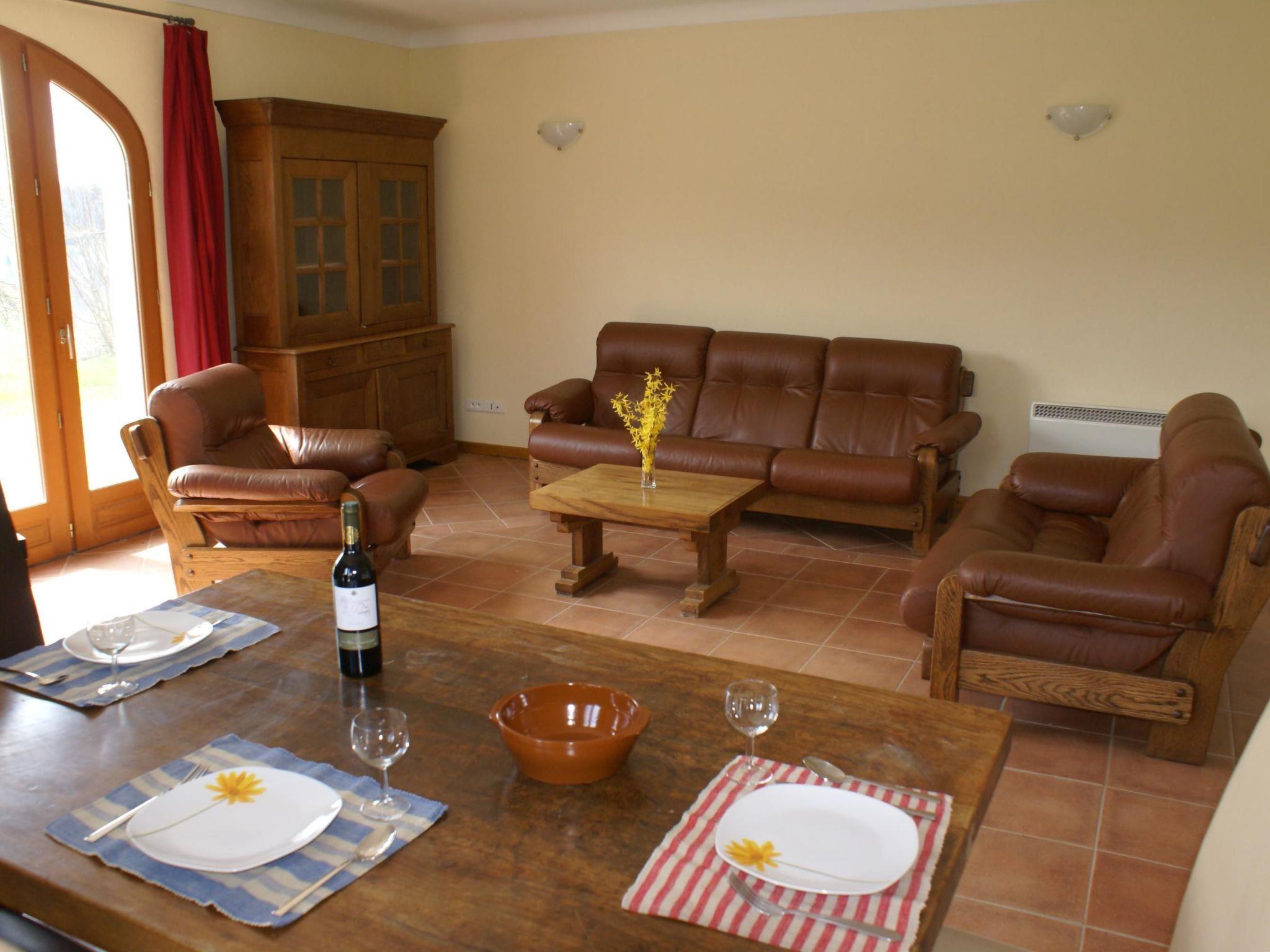 On the patio, there is a round dining table with plenty of chairs with armrest, ensuring a comfortable dining experience. Enjoy the Mediterranean sun under the sun shade and the reclining chairs. From the patio you have nice views over the natural surroundings.