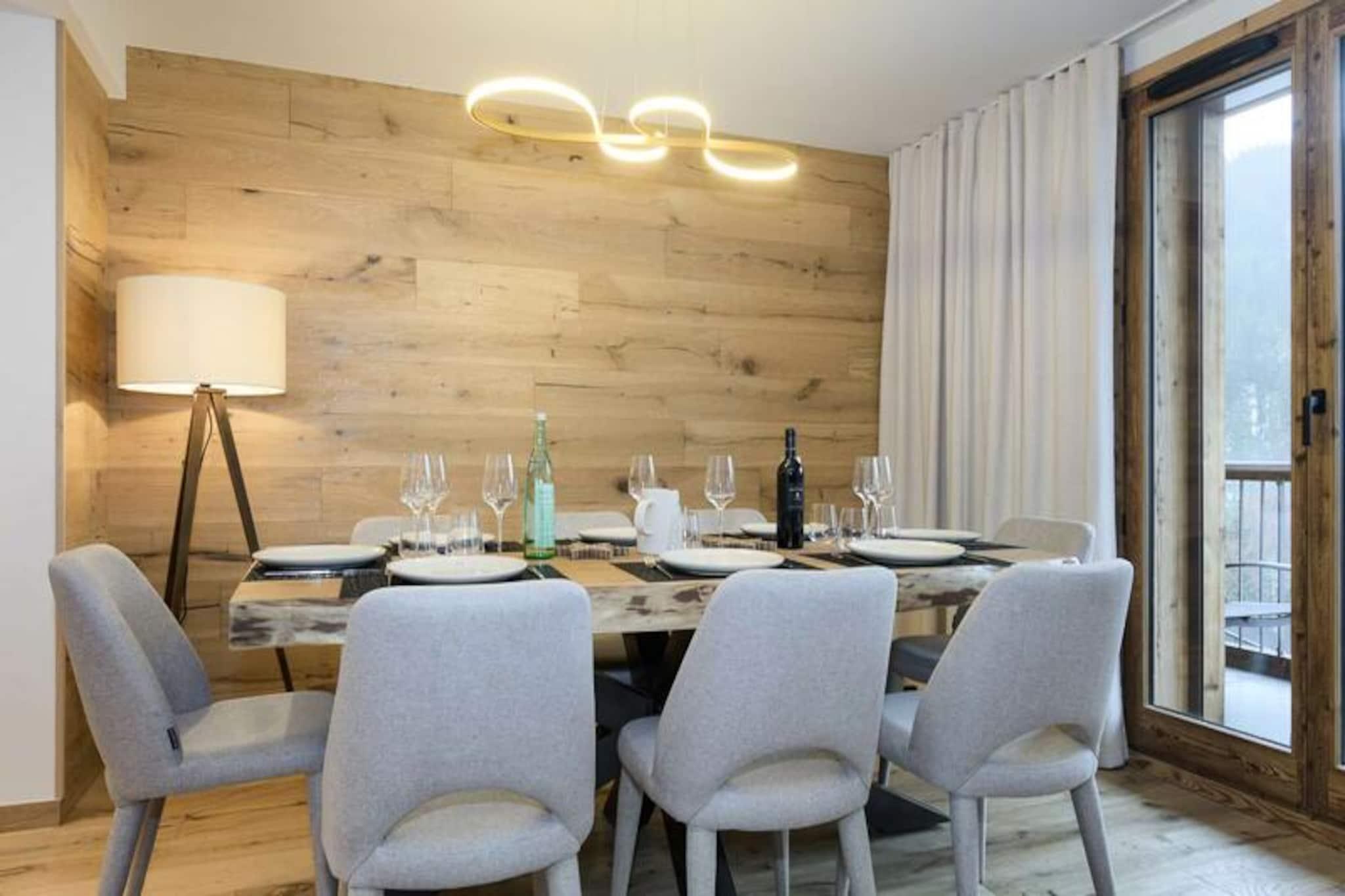 Højt over de maleriske skråninger i Courchevel 1650 tilbyder denne luksuriøse og moderne lejlighed et uovertruffent alpint tilflugtssted. Forestil dig at vågne op til den betagende udsigt over snedækkede tinder og den fredfyldte dal nedenfor, alt sammen fra din private balkon. Uanset om du er her for spændingen ved skiløb eller roen ved bjerglivet, lover dette ski-in/ski-out-paradis en uforglemmelig flugt. Lejligheden strækker sig over imponerende 95 kvadratmeter og har komfortabel plads til op til otte gæster. Opholds- og spisestuen, badet i naturligt lys, inviterer dig til at slappe af med sine luksuriøse møbler og moderne indretning. Det fuldt udstyrede køkken med topmoderne apparater som en L'Or Barista-kaffemaskine og en vinkælder, sikrer, at hvert måltid er en fryd. Soveværelserne er designet til ultimativ komfort, herunder en master suite med eget badeværelse og balkon, et andet soveværelse med queensize-seng og et alsidigt tredje værelse, der kan konfigureres med fire enkeltsenge eller to dobbeltsenge. Forkæl dig selv med spabadet efter en dag på pisterne, og nyd bekvemmeligheden ved en vaskemaskine/tørretumbler, skiboks og overdækket parkeringsplads. Beliggenheden er uovertruffen, med Petit Moriond-svævebanen kun få skridt væk og Ariondaz-pisten, der bringer dig tilbage til din dør. Lokale butikker, herunder en delikatesseforretning og skiudlejning, er bekvemt placeret for foden af ??boligen. Ud over skiløb tilbyder den pulserende bymidte et udvalg af restauranter, butikker og afterski-aktiviteter for at fuldende din alpine oplevelse. Med personlig concierge-service, herunder booking af liftkort, restaurantreservationer og transportarrangementer, er der taget hånd om alle detaljer i dit ophold. Uanset om du besøger om vinteren for de uberørte pister eller om sommeren for de frodige bjergstier, er denne lejlighed din port til det bedste af Courchevel 1650.