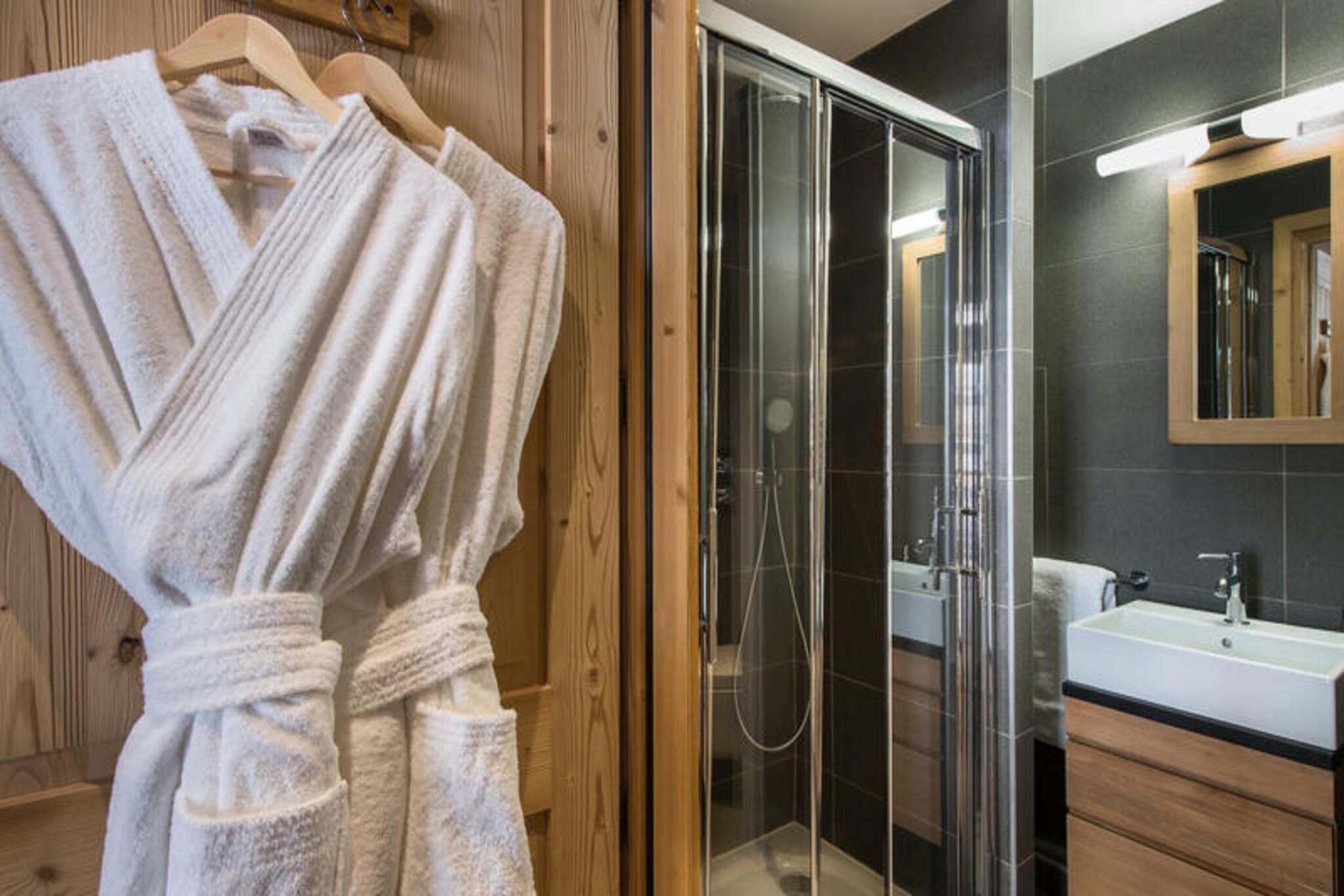Denne rummelige duplex-lejlighed på 112 m² er beliggende på 3. sal i en luksusbolig og rummer komfortabelt op til 8 personer i sine 4 soveværelser. Det har to soveværelser med dobbeltsenge med en-suite badeværelser, et tredje soveværelse med dobbeltseng og et kabineværelse med køjesenge, hvilket gør det ideelt for familier eller grupper. Lejligheden er ikke-ryger, og kæledyr er ikke tilladt. Denne ejendom ligger kun 150 meter fra snefronten og Ariondaz-gondolen og tilbyder hurtig adgang til skiløjperne og området 3 Valleys. Hjertet af Courchevel Moriond er lige uden for døren, med butikker, barer, restauranter og den franske skiskole (ESF) inden for rækkevidde, hvilket sikrer, at både afslapning og eventyr er kun få øjeblikke væk. Lejligheden har et fuldt udstyret åbent køkken, en spiseplads og en hyggelig stue med et fjernsyn. For nemheds skyld er der et skiskab, Wi-Fi, en værdiboks og to parkeringspladser. Yderligere faciliteter omfatter regelmæssig rengøring to gange om ugen og slutrengøring, hvilket sikrer et behageligt ophold.