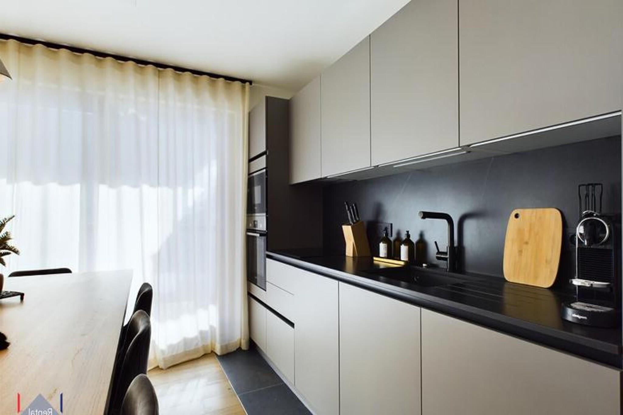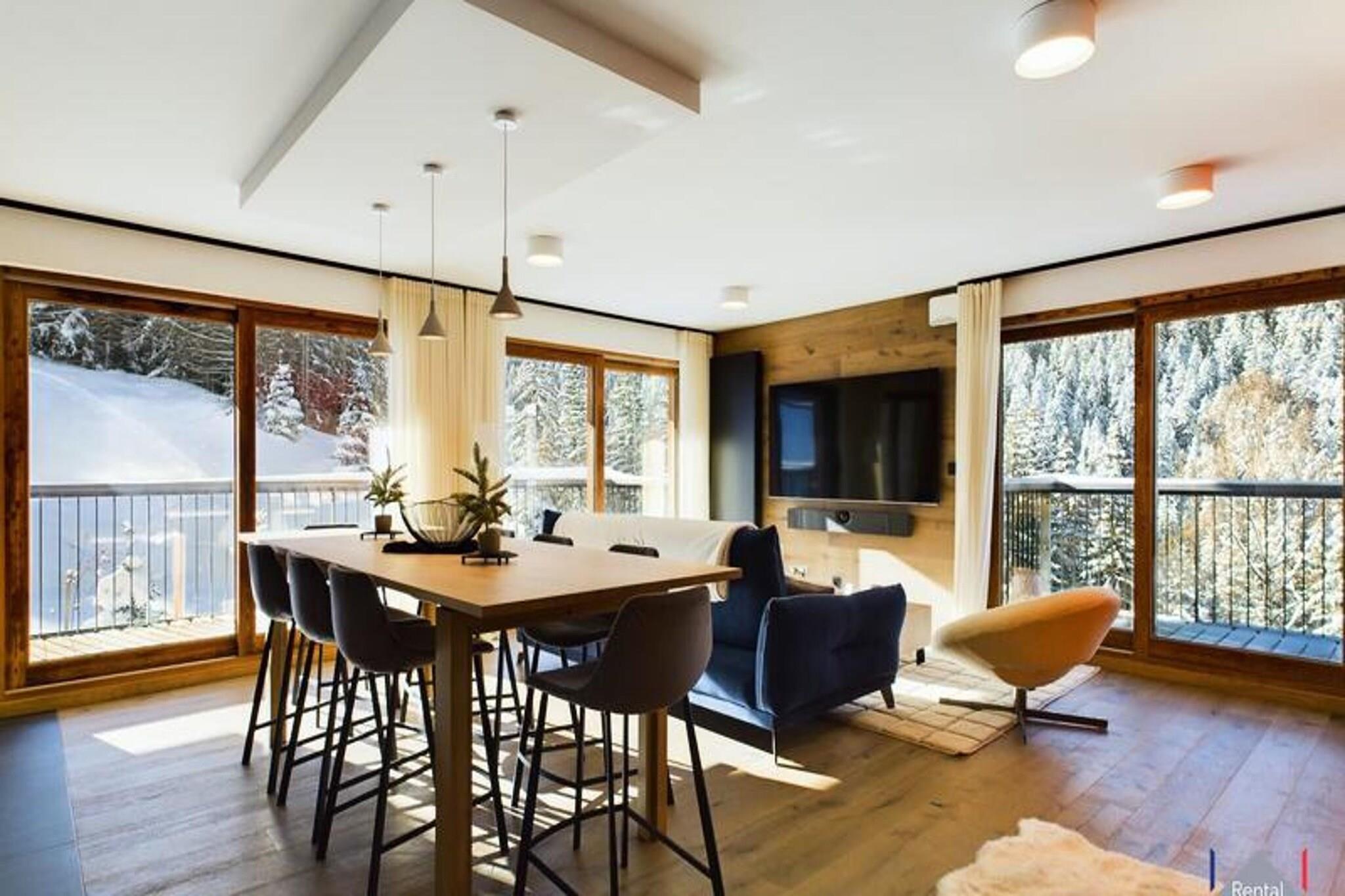 Denne nyrenoverede lejlighed, beliggende på 2. sal i en moderne bolig, tilbyder en rummelig 91 m² indretning designet til 8 gæster. Det har tre en-suite soveværelser: to med dobbeltsenge og et med to sæt køjesenge (4 sovepladser). Hvert værelse er udstyret med et Smart TV, rigelig opbevaring og adgang til en af ??de tre altaner. Ejendommen er ikke-ryger og ikke kæledyrsvenlig, hvilket sikrer et fredeligt og behageligt miljø for alle gæster. Lejligheden har en førsteklasses beliggenhed med adgang til ski-in og kun en kort gåtur til "Petit Moriond" gondolen, 50 meter væk. Den gratis shuttle-service, som er tilgængelig ved foden af ??bygningen, giver adgang til alle feriesteder i Courchevel samt Aquamotion, 5 minutters kørsel derfra. For dem, der ønsker at udforske, kan området prale af nærliggende butikker og en række spisemuligheder. Resortet giver nem adgang til pisterne, hvilket gør det til et ideelt valg for skientusiaster. Indvendigt byder lejligheden på en stor stue på 32 m² med et komfortabelt opholdsområde med ethanolpejs. Den rummelige spiseplads er perfekt til familiemåltider, mens det moderne køkken er fuldt udstyret til alle dine kulinariske behov. Yderligere faciliteter inkluderer sengetøj og håndklæder samt daglig rengøring, hvilket sikrer et problemfrit ophold i hjertet af Courchevel Moriond.