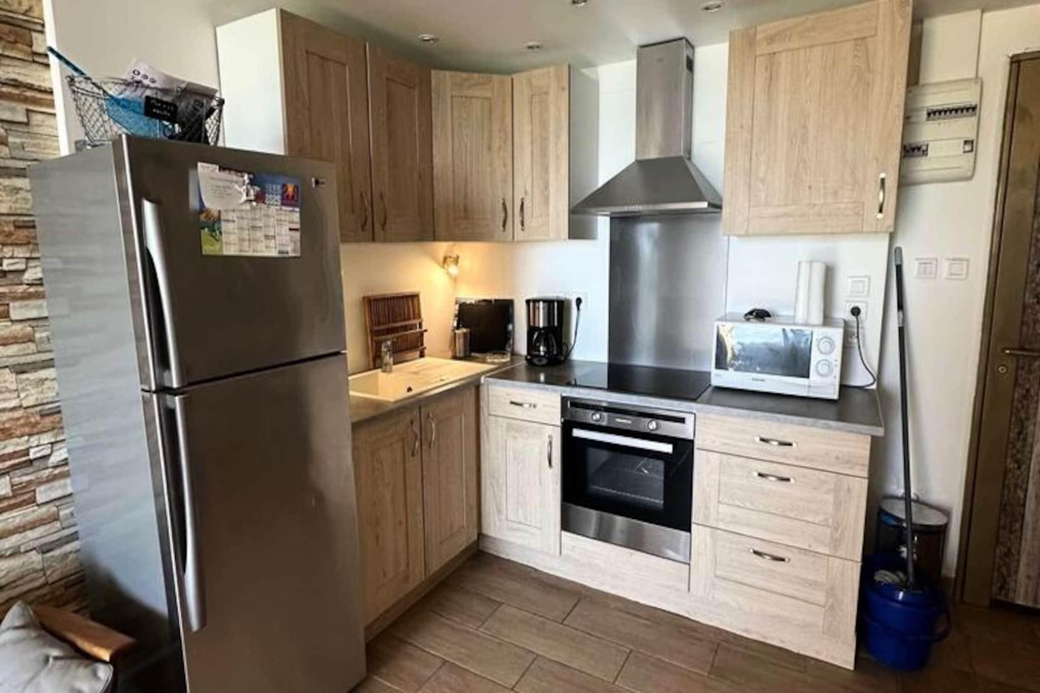 Hvor Middelhavets azurblå bølger kysser Saint-Cyr-sur-Mers kyster, tilbyder denne fantastiske lejlighed ved havet en uovertruffen flugt. Forestil dig at vågne op til havets blide lyd, træde ud på din private terrasse og mærke solen varme din hud, mens du kigger ud over det endeløse blå vand. Dette er mere end en ferie; det er et tilbagetog i ro, hvor hvert øjeblik føles som et postkort, der kommer til live. Perfekt til par, familier eller venner, redefinerer denne oase med et soveværelse kystlivet. \n\nIndenfor finder du en lys og luftig stue med panoramaudsigt over havet, komplet med en komfortabel sovesofa til ekstra gæster. Det fuldt udstyrede køkken åbner ud til spiseområdet, så du kan tilberede måltider, mens du nyder middelhavsudsigten. Soveværelset med en luksuriøs dobbeltseng lover afslappende nætter, mens det funktionelle badeværelse sikrer bekvemmelighed. Gå udenfor til din private have og terrasse på 25 m², hvor havet er din baggrund for uforglemmelige solnedgange og rolige morgener. \n\nBeliggende i Saint-Cyr-sur-Mer placerer denne ejendom dig i hjertet af Provences kystcharme. Udforsk nærliggende strande, nyd frisk fisk og skaldyr på lokale restauranter, eller slentre gennem maleriske gader fyldt med butikker og caféer. For eventyrlystne venter vandrestier og vandsport, mens vinentusiaster kan nyde regionens berømte vinmarker. \n\nUanset om du søger afslapning eller udforskning, tilbyder denne lejlighed ved havet den perfekte blanding af komfort og beliggenhed. Book dit ophold i dag, og lad Middelhavet sætte scenen for din drømmeferie.