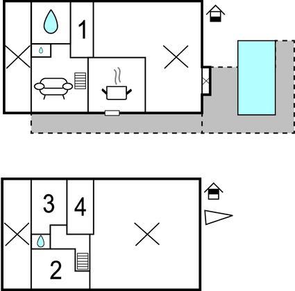 Soveværelse (nr. 1) - 2 Sovepladser. (Enkeltseng(e)).