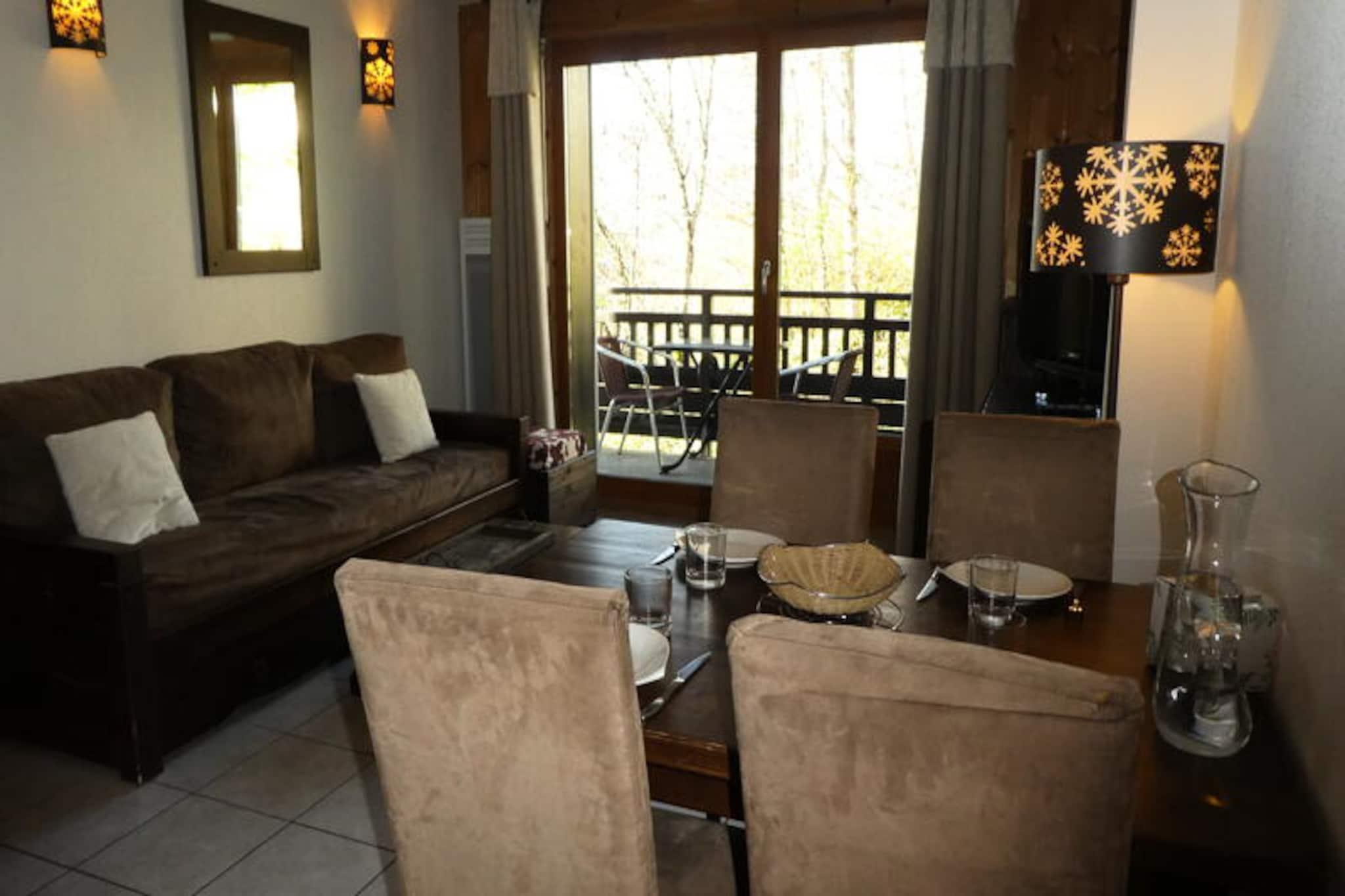 Denne 33 m² store toværelseslejlighed i Saint-Gervais, beliggende i en bolig med tre hytter (i alt 41 lejligheder), kan rumme op til fire gæster. Den har en udtrækssovesofa til to og to enkeltsenge. Kæledyr er tilladt mod et ekstra gebyr på EURO5 pr. dag eller EURO25 pr. uge. Der kræves et depositum på EURO260. Boligen tilbyder en opvarmet indendørs swimmingpool (åben sæsonmæssigt: vinter 2024/2025 og sommer 2025). Beliggende i et roligt område, er dette feriehus bygget på en bjergskråning. Et shuttlestop (140 m under boligen) giver en 15-minutters tur til Saint-Gervais-svævebanerne. Denne lejlighed på 2. sal tilbyder en nordlig eksponering og en balkon. Det omfatter en stue med spiseplads og tv, et veludstyret køkken (opvaskemaskine, keramisk kogeplade, køleskab, mikroovn, kaffemaskine, brødrister, kedel), et soveværelse, et badeværelse med badekar og et separat toilet. Der er også en garage, skiskabe, en babyseng og en stol. Puder, dyner og service er inkluderet, men husholdningsprodukter er ikke. Valgfri ydelser (med tillæg, afhængigt af reservation og tilgængelighed) inkluderer leje af Wi-Fi-boks, leje af husholdningslinned (lagner og håndklæder), leje af udstyr til børnepasning (høj stol og barneseng), leje af raclette- og fonduemaskiner samt daglig eller slut- rengøring ved ophold. Varme er inkluderet.