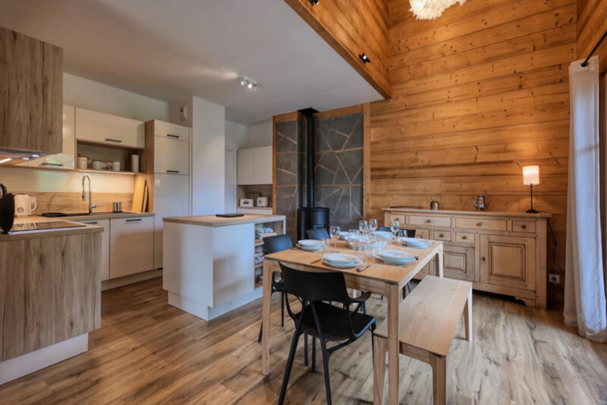 Højt over den maleriske by Saint-Gervais Mont-Blanc tilbyder denne udsøgte duplex et roligt alpint tilflugtssted kun 10 minutter fra det pulserende bycentrum. Omgivet af betagende udsigt over bjergene kombinerer denne nybyggede ejendom moderne komfort med den tidløse charme fra de franske alper, hvilket gør den til et ideelt tilflugtssted for familier eller vennegrupper, der søger afslapning og eventyr. Træd indenfor og oplev et gennemtænkt designet rum, der komfortabelt kan rumme op til 10 gæster. Stueetagen har en hyggelig stue med tv, et fuldt udstyret køkken, der åbner ud til en spiseplads med en varm pejs, og tre indbydende soveværelser, inklusive et charmerende køjesengsværelse, der er perfekt til børn eller større grupper. To badeværelser, et med badekar og et med bruser, sikrer bekvemmelighed for alle. Ovenpå er der et ekstra dobbeltværelse, der tilbyder et privat fristed. Balkonen tilbyder et fredeligt sted at nyde den friske bjergluft og de fantastiske omgivelser. Gæsterne vil sætte pris på de inkluderede tjenester såsom Wi-Fi, sengetøj, badeværelsesprodukter og opredte senge ved ankomst, hvilket sikrer et problemfrit og behageligt ophold. Der er udendørs parkering til rådighed, og ejendommen er røgfri og kæledyrsfri og bevarer sin perfekte stand. Med sin førsteklasses beliggenhed nær Saint-Gervais Mont-Blanc kan besøgende nemt udforske den charmerende by, nyde lokal mad eller begive sig ud på spændende udendørseventyr. Uanset om du står på ski om vinteren, vandrer om sommeren eller blot slapper af ved pejsen, lover denne duplex en uforglemmelig alpin ferie.