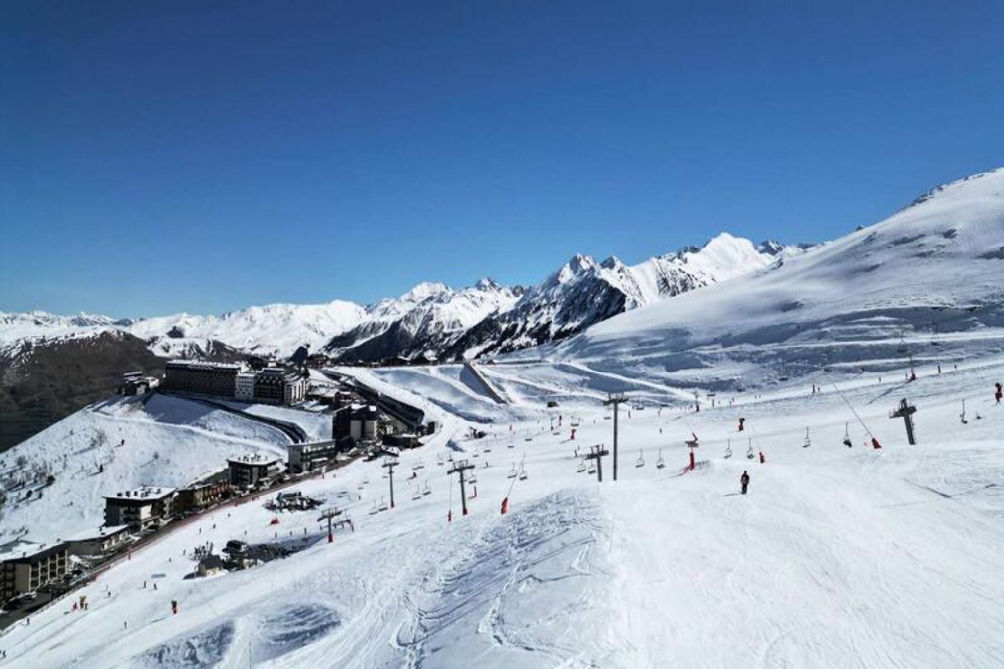 Dette charmerende feriehus er designet til komfort og bekvemmelighed og kan rumme op til seks gæster. Ejendommen omfatter et rummeligt soveværelse med dobbeltseng, et hyggeligt kabineområde med to køjesenge og en sovesofa i den åbne stue. Mens husholdningsprodukter og bademåtter ikke leveres, vil du finde et velholdt miljø perfekt til familier. Kæledyr er ikke tilladt, hvilket sikrer et rent og allergivenligt ophold for alle besøgende. Ejendommen ligger i Pla d'Adet og tilbyder en fantastisk udsigt over Pyrenæerne fra sin private balkon. Gæsterne vil nyde nem adgang til nærliggende skiløjper, skiskolen og en svævebane, alt inden for 300 meter. Lokale attraktioner omfatter bjergstier og vintersportsmuligheder. Derudover er caféer, markeder og restauranter bekvemt placeret kun 500 meter væk, hvilket giver rigelige muligheder for spisning og shopping. Feriehuset har et moderne, fuldt udstyret køkken, der problemfrit integreres i opholdsrummet, hvilket giver mulighed for afslappede måltider i hjemmet. Badeværelset har brusekabine og toilet for ekstra bekvemmelighed. Opvarmning er tilgængelig i hele ejendommen, hvilket sikrer en varm og hyggelig atmosfære under dit ophold. Gæsterne kan også bestille forskellige aktiviteter, fra sneskovandring til skiudflugter, hvilket gør dette til den perfekte base for bjergeventyr.