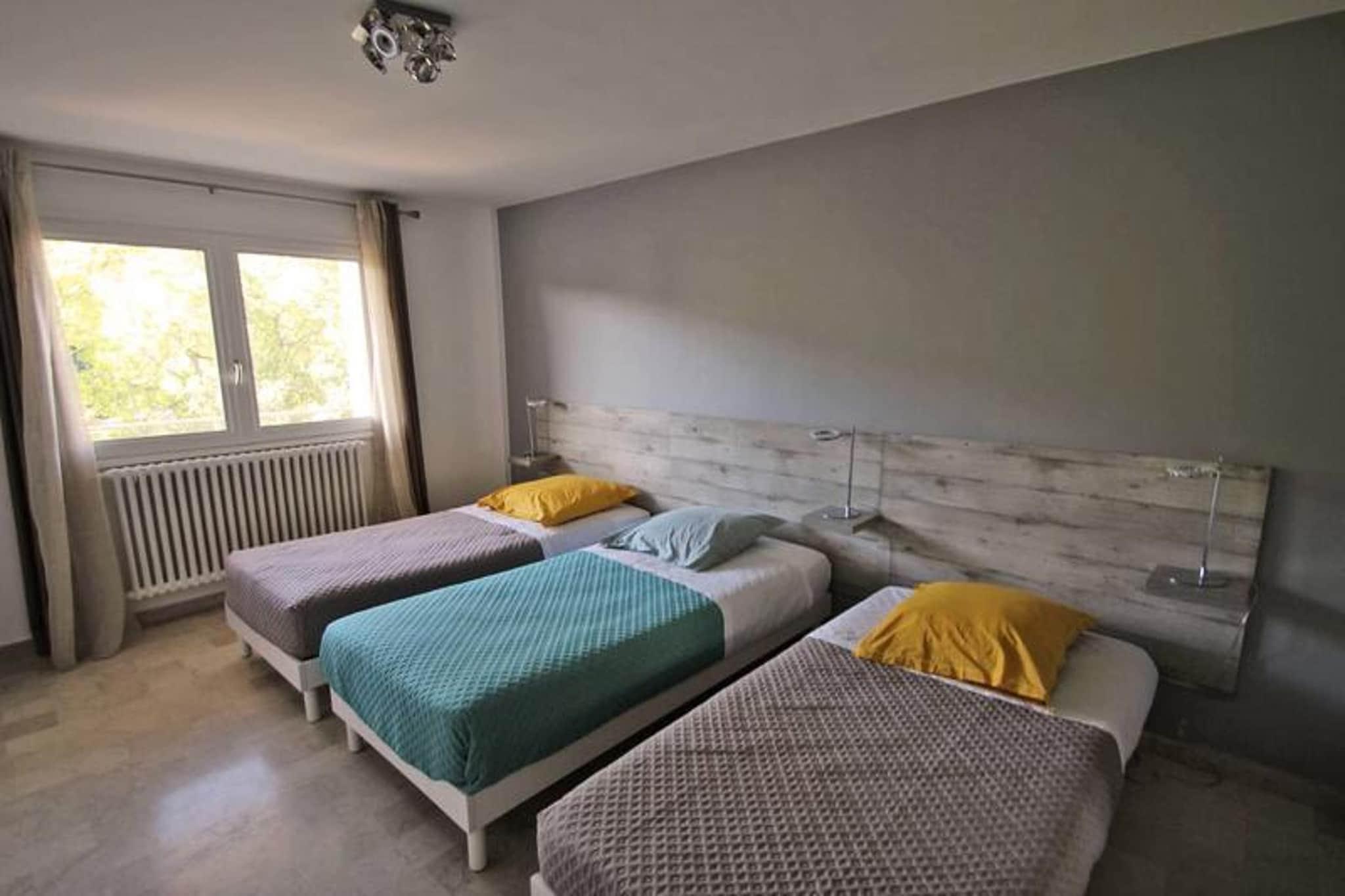 Denne charmerende 3-værelses lejlighed, beliggende på 2. sal i Résidence Les Saisons, byder på en rummelig planløsning på 69 m² med plads til op til 5 gæster. Det har en moderne stue med aircondition, en komfortabel sofa, lænestole, et tv og en spiseplads med bord og stole, der fører til en 10 m² stor terrasse. Lejligheden indeholder to soveværelser: det ene med en 140 cm dobbeltseng og det andet med tre 90 cm enkeltsenge, som hver byder på rigelig opbevaring. Ejendommen er ikke-ryger, og kæledyr er ikke tilladt, hvilket sikrer et rent og afslappende miljø for alle gæster. Ideelt beliggende i hjertet af byen, er lejligheden kun 350 meter fra stranden og et stenkast fra forskellige butikker, restauranter og caféer, hvilket gør den perfekt for dem, der ønsker at nyde den pulserende lokale atmosfære. Byens centrum er umiddelbart tilgængeligt, så gæsterne kan udforske området til fods. Boligen har også privat overdækket parkering, sikret af en elektrisk port, hvilket sikrer bekvemmelighed og ro i sindet for dem, der ankommer i bil. Det fuldt udstyrede køkken indeholder moderne apparater såsom ovn, køleskab, fryser, opvaskemaskine, Nespresso-kaffemaskine, mikroovn og kedel, hvilket gør madlavning let. Badeværelset er udstyret med bruser, vaskeskab og vaskemaskine. WiFi er tilgængeligt overalt, og en babyseng med madras tilbydes til familier, der rejser med små. Lejligheden er for nylig renoveret og tilbyder en frisk, moderne stil for et behageligt ophold.