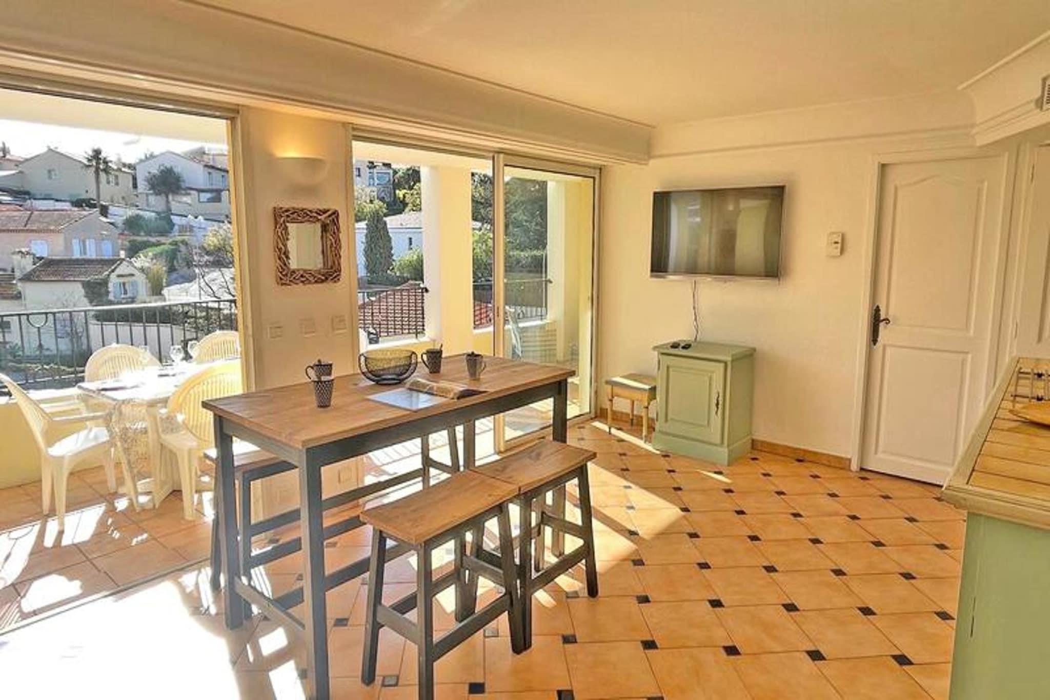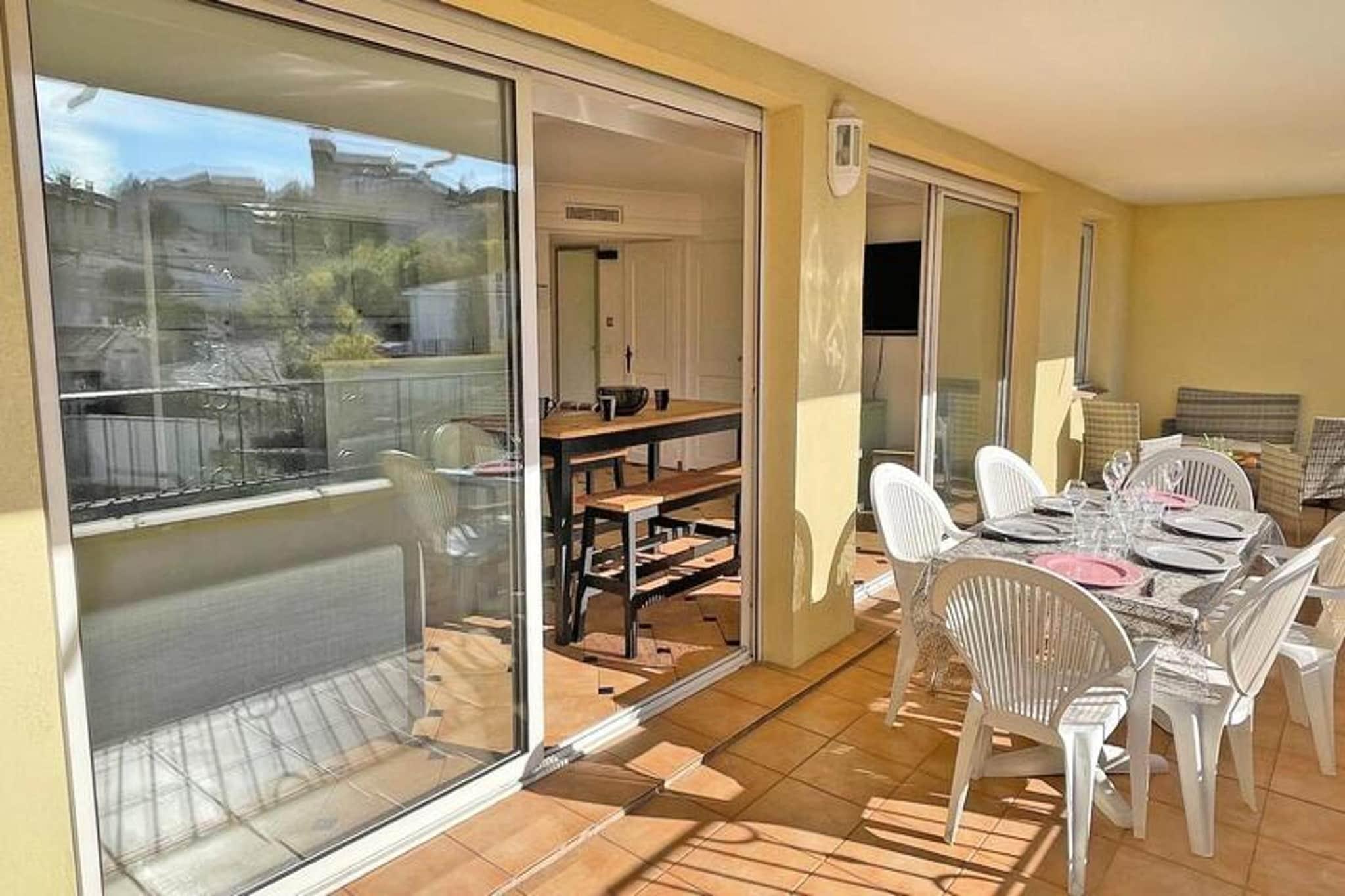 Denne 3-værelses lejlighed på 56 m² er beliggende på anden sal i en bolig med elevator, der komfortabelt kan rumme op til 6 gæster. Det har en rummelig stue med en 140 cm hjørnesofa, fladskærms-tv og spiseplads. Det åbne, fuldt udstyrede køkken omfatter opvaskemaskine, køleskab, fryser, ovn og keramisk kogeplade med 4 brændere. Det store soveværelse har en 160 cm seng med rigelig opbevaring, mens det andet soveværelse byder på enten 2x80 cm eller en 160 cm seng, også med opbevaring. Lejligheden indeholder to badeværelser - det ene med badekar og vaskeskab, det andet med bruser og vaskemaskine - plus et separat toilet. Beliggende kun 450 meter fra byens centrum og 350 meter fra stranden, tilbyder lejligheden nem adgang til Sainte-Maximes pulserende caféer, butikker og markeder. Du kan nyde den nærliggende promenade, udforske lokale restauranter eller slappe af på stranden. Boligen er ideelt beliggende for både afslapning og udforskning, og tilbyder nærhed til alle de væsentlige faciliteter og samtidig bevare et fredeligt miljø. Lejlighedens store terrasse på 23 m², solrig om eftermiddagen, giver et perfekt sted til udendørs spisning og nyde udsigten. Yderligere faciliteter inkluderer privat underjordisk parkering, aircondition og fiberoptisk WiFi til problemfri fjernarbejde. Boligen har også en swimmingpool, der er åben fra maj til september. Kæledyr er ikke tilladt, og lejligheden sikrer et behageligt ophold med tankevækkende indeslutninger som engangsmadrasbeskyttere, køkkenruller og badeværelsestæpper. Lejligheden er perfekt til familier eller små grupper på udkig efter en velbeliggende og fuldt udstyret ferieudlejning.