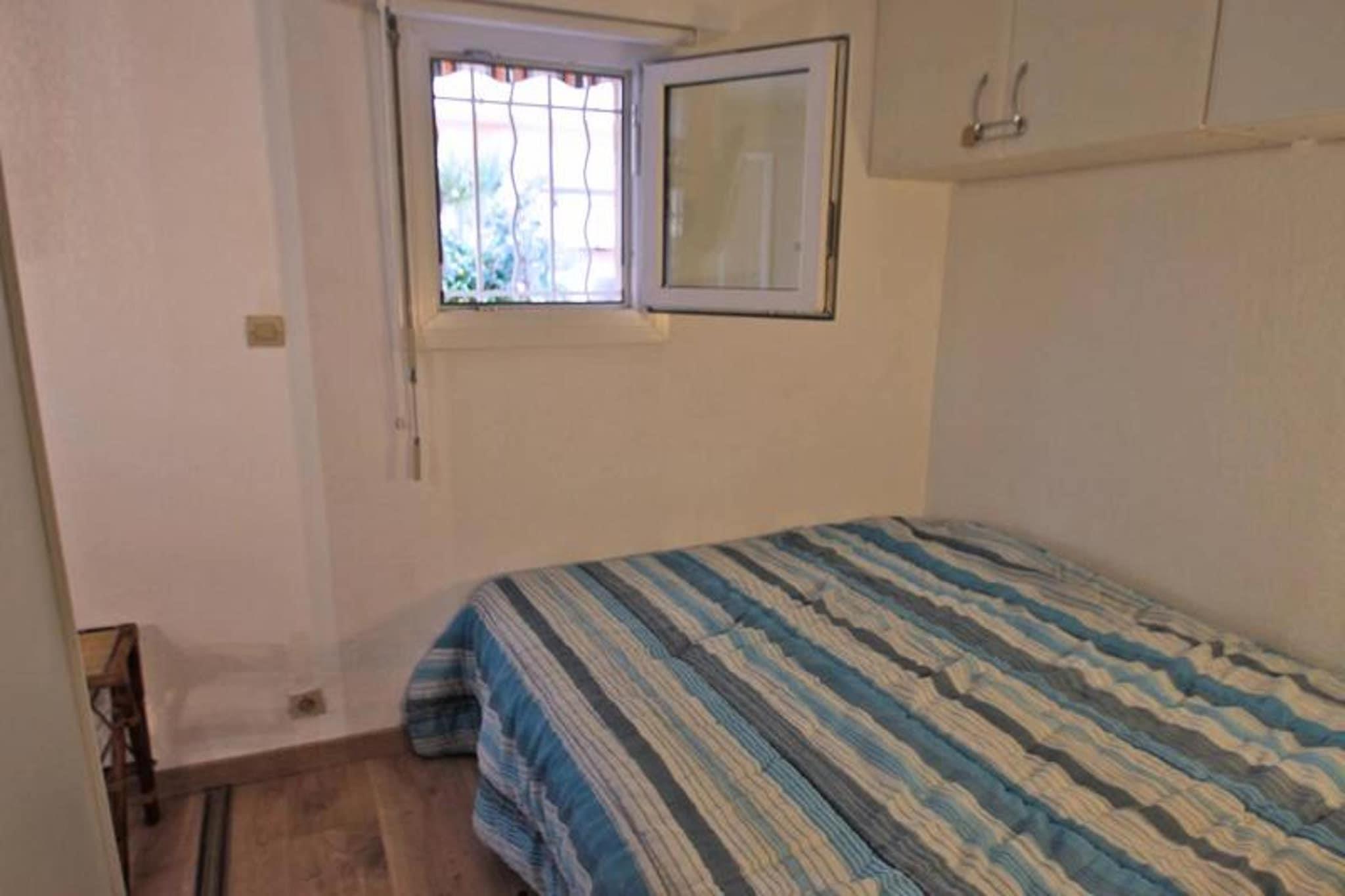 Denne charmerende T2-hyttelejlighed tilbyder et behageligt ophold for op til 4 gæster. Den airconditionerede stue har en "clic-clac" sovesofa (140 cm) og en spiseplads med bord og stole. Kabinens soveværelse er udstyret med en 140 cm dobbeltseng, og lejligheden indeholder desuden et veludstyret tekøkken med 2 kogeplader, køleskab, ovn, mikroovn og opvaskemaskine. Badeværelset er komplet med bruser, vaskemaskine og håndklædetørrer, mens et separat toilet tilføjer ekstra bekvemmelighed. Kæledyr er tilladt efter anmodning. Lejligheden ligger i hjertet af Sainte-Maxime, kun 300 meter fra stranden og i gåafstand fra butikker og restauranter. Byens centrum er lige uden for døren, hvilket gør det nemt at udforske lokale caféer, butikker og markeder. Denne centrale beliggenhed giver gæsterne mulighed for at nyde byens livlige atmosfære, mens de stadig giver et fredeligt tilflugtssted. Lejligheden har desuden en rummelig 16m² sydvestvendt terrasse med spisemøbler, perfekt til at nyde udendørslivet. Gæsterne har adgang til en privat underjordisk garage med tilstrækkelig plads til et køretøj. Yderligere faciliteter inkluderer Wi-Fi, aircondition i stuen og alle de nødvendige køkken- og badeværelsesfaciliteter for et behageligt ophold.