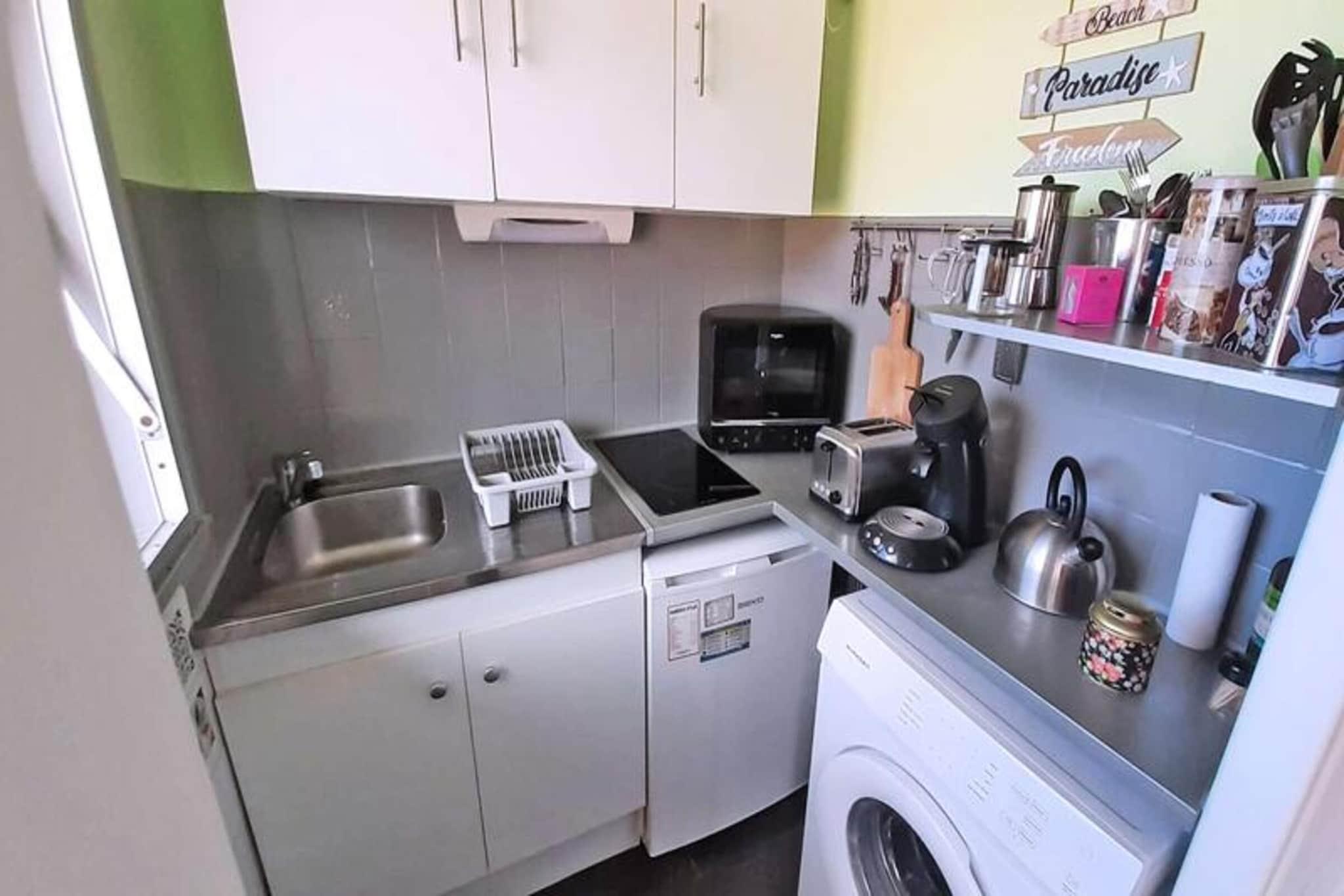 Dette hyggelige 21 m² store studie, designet til 2 personer, tilbyder et komfortabelt og fuldt renoveret rum perfekt til par. Det har en stue med aircondition, en 160 cm sovesofa, spiseplads, fladskærms-tv og adgang til en 7 m² stor terrasse med havudsigt. Det åbne tekøkken indeholder en 2-brænder induktionskomfur, ovn, køleskab, vaskemaskine, Senséo kaffemaskine, italiensk kaffemaskine, elkedel, brødrister og diverse køkkenredskaber. Et badeværelse med bruser, vaskeskab og toilet fuldender studiet. Privat parkering er tilgængelig i boligen, sikret af en elektrisk port. Studiet er ideelt beliggende kun 100 meter fra byens centrum, 20 meter fra stranden og 50 meter fra butikker, hvilket gør det perfekt til at udforske området til fods. Gæsterne kan nemt nyde nærliggende attraktioner, restauranter og den pulserende lokale atmosfære, alt sammen inden for gåafstand. Ud over de grundlæggende faciliteter inkluderer studiet aircondition, lomme-WiFi og en privat terrasse med spisemøbler og et tørrestativ. Boligen tilbyder også en ideel beliggenhed for et afslappende ophold ved havet med alle nødvendige tjenester, herunder køkkenruller og badeværelsestæpper.