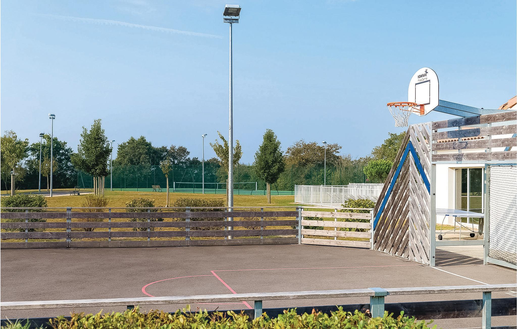 Dette kompleks består af hundrede rækkehuse, som er fordelt på syv områder. Efter morgenmaden kan I snuppe en frisk dukkert i den opvarmede udendørs pool og benytte saunaen og hammam, som er gratis en gang om ugen. I kan også træne på ferien og bruge fitnessrummet samt hygge jer med et spil tennis, bordtennis eller fodbold. Har I cyklerne med, er der også opbevaringsplads til dem.