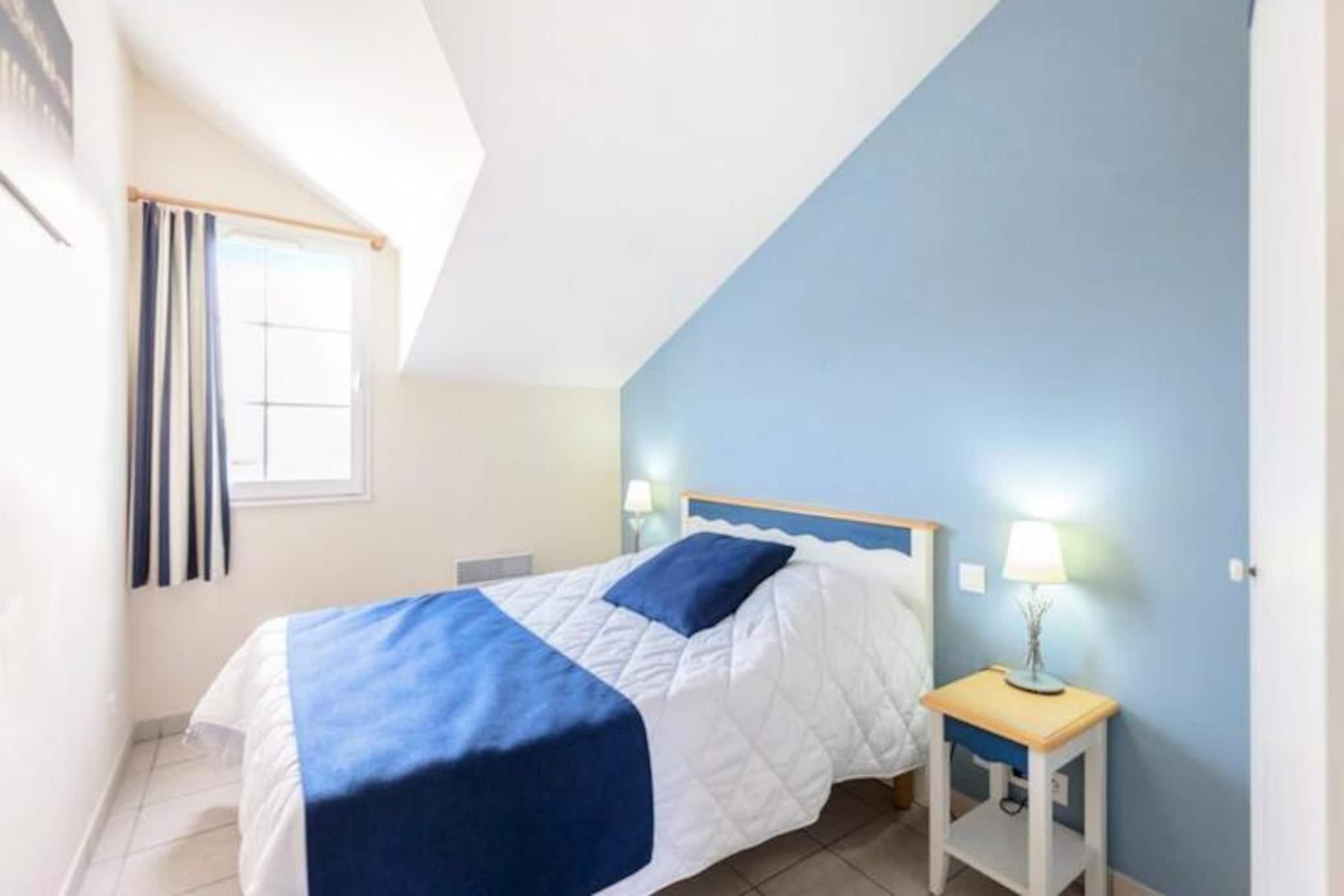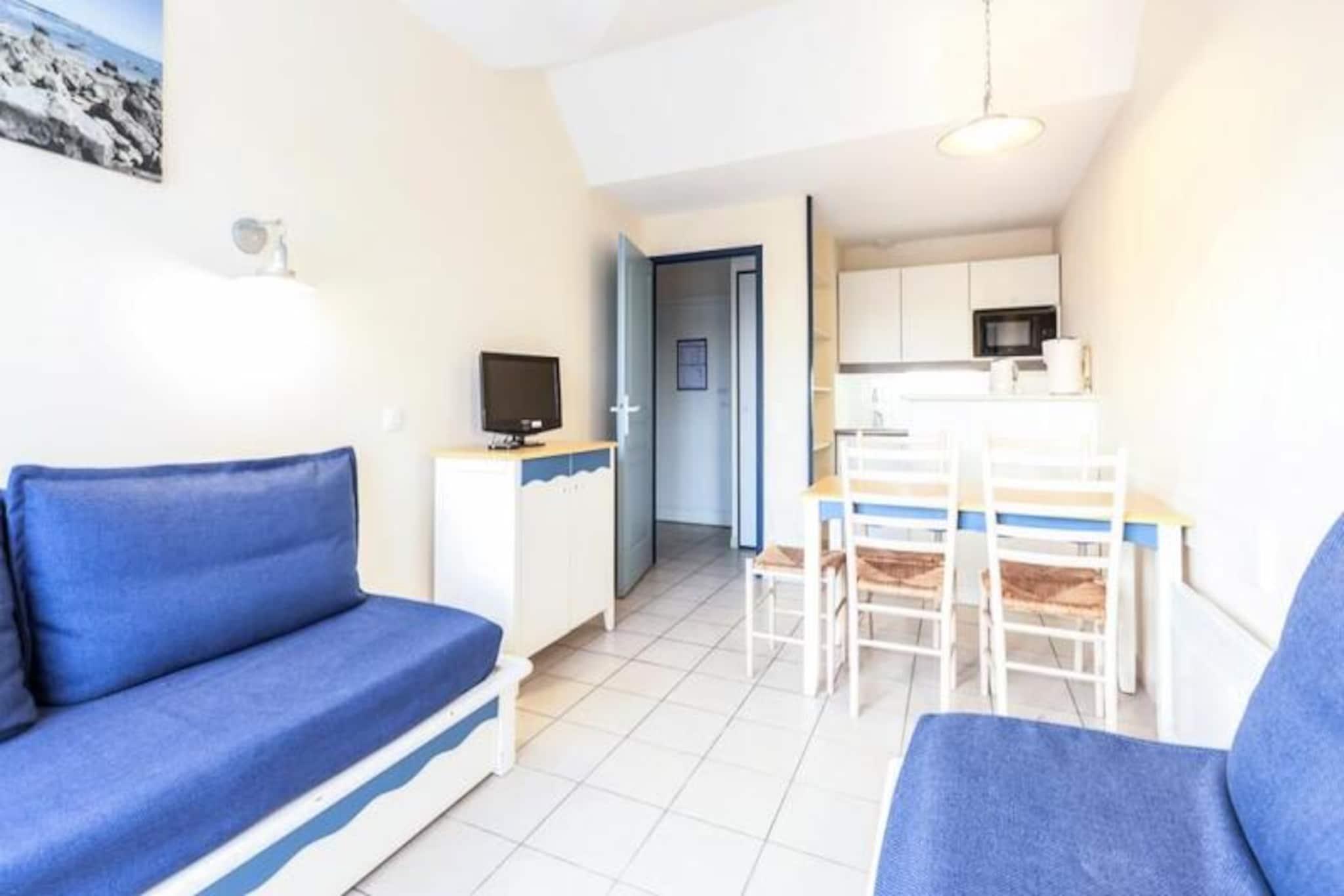 Denne charmerende lejlighed, beliggende på en 90 hektar stor ejendom, kan rumme op til 4 personer med et soveværelse med dobbeltseng og to sovesofaer i stuen. Ejendommen er kæledyrsvenlig mod et ekstra gebyr (spørg venligst for detaljer). Sengelinned og håndklæder er tilgængelige mod et tillægsgebyr, og slutrengøring er obligatorisk. Gratis parkering er inkluderet på stedet, og der tilbydes tv-adgang til underholdning. Boligen er omgivet af en fyrreskov, der tilbyder nem adgang til stranden til fods, på cykel eller med shuttleservice til Veillon-stranden, kun 2,5 km væk. Nyd aktiviteter på stedet såsom tre swimmingpools, et vandområde med rutsjebaner, minigolf, tennis og to 18-hullers golfbaner. Butikker, et pizzeria, bageri og isbar er også tilgængelige for nemheds skyld. Lejligheden har et fuldt udstyret køkken, åbent til stuen med spisebord til 4. Badeværelset har badekar med separat toilet. En møbleret balkon tilbyder en parkudsigt til afslapning. Yderligere tjenester, herunder Wi-Fi, er tilgængelige mod et ekstra gebyr.