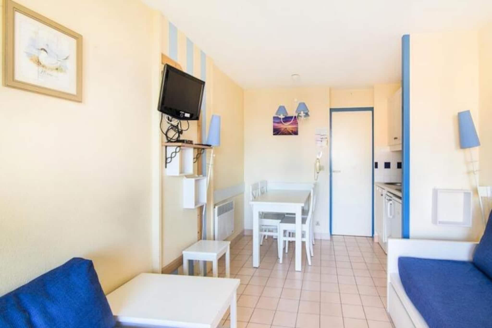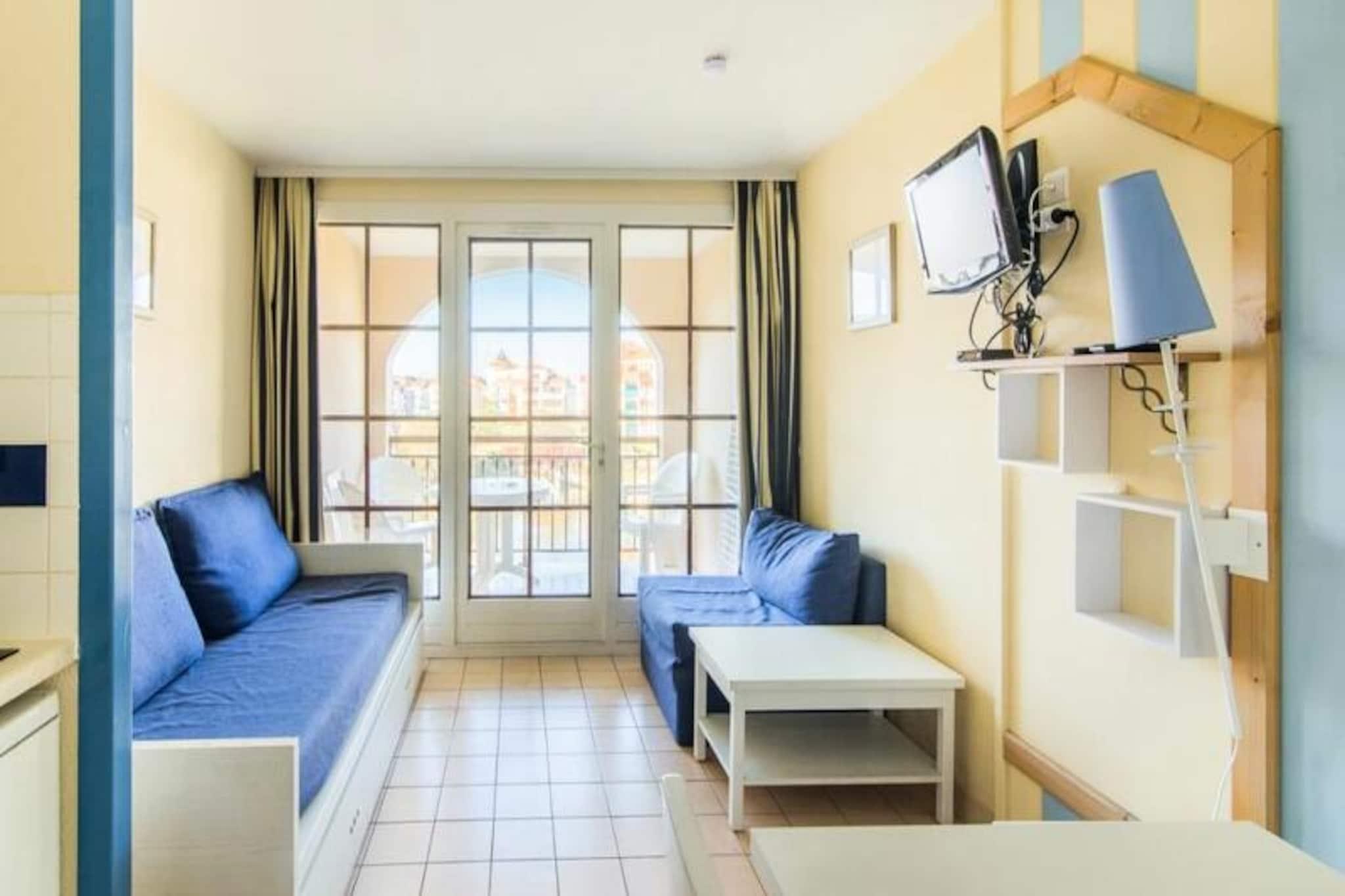 Denne charmerende ferielejlighed kan rumme op til 6 personer med en stue med to sovesofaer (en med en trille) og et kabineområde med to køjesenge. Det har også et badeværelse med badekar og toilet. Lejligheden er kæledyrsvenlig (mod et ekstra gebyr), og et babysæt er tilgængeligt efter anmodning. Nyd en møbleret overdækket balkon med udsigt over søen og landsbyen samt et fladskærms-tv. Sengelinned og håndklæder er tilgængelige mod et tillægsgebyr. Beliggende på en 90 hektar stor ejendom tilbyder boligen direkte adgang til naturen og er kun en kort gå- eller cykeltur fra havet. Veillon-stranden ligger 2,5 km derfra og er tilgængelig med transport. Boligen har tre swimmingpools, herunder en opvarmet pool, vandrutsjebaner og et soppebassin. Yderligere aktiviteter omfatter to 18-hullers golfbaner, tennisbaner og minigolf. Faciliteterne på stedet inkluderer et pizzeria, bageri og bar/isbar. Lejligheden har et fuldt udstyret køkken, perfekt til at tilberede måltider. Gratis udendørs parkering er tilgængelig, og valgfri tjenester såsom trådløs internetadgang og slutrengøring kan arrangeres. Nærliggende butikker og caféer giver nem adgang til det væsentlige, mens fritidsaktiviteter sikrer et sjovt og afslappende ophold.