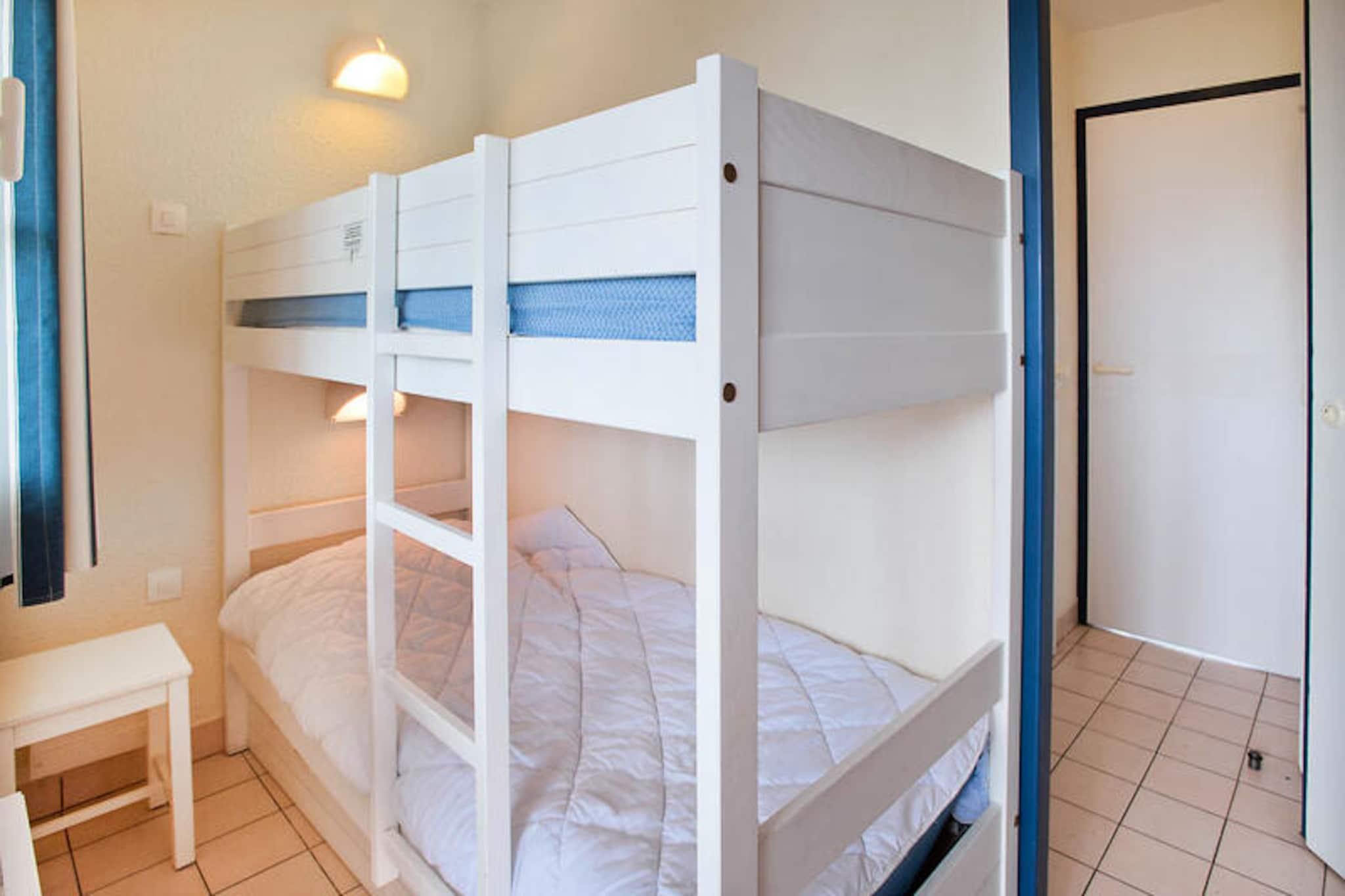 La Résidence Port Bourgenay - maeva Home está situada en Talmont-Saint-Hilaire, en la región de Vendée, a solo 9 km de Les Sables-d'Olonne. Se trata de una auténtica finca de 90 hectáreas rodeada de un pinar y con vistas directas a un lago. La residencia peatonal está dividida en cinco distritos y ofrece tiendas donde encontrará todo lo necesario para unas vacaciones cómodas y relajantes. Puedes llegar al océano a pie o en bicicleta a través del pinar, el Talmondaise (lanzadera) también puede dejarte en la playa de Veillon, situada a 2,5 km, donde podrás disfrutar de numerosas actividades. La residencia también cuenta con 3 piscinas y una zona acuática con tobogán. Fechas de apertura: La piscina del centro: del 27/04 al 12/09 La piscina del Moulin: del 15/06 al 08/09 La piscina de Bocage: del 15/06 al 02/09 En el sitio: Pizzería, panadería, bar/heladería. (Estos servicios son independientes de la residencia) Los alojamientos de Maeva Home son alquileres privados totalmente equipados ubicados dentro de la residencia. Limpieza adicional: A realizar al final de la estancia, ya sea por parte del cliente o pagando el servicio en el momento de la reserva, en el pre-check-in o a la llegada. Se beneficiará de las ventajas y servicios a la carta según sus deseos. Entretenimiento y ocio (cargo adicional): * Dos campos de golf de 18 hoyos * Tenis, minigolf 1 salón, 1 zona de camarote, 1 zona de cocina, 1 baño y 1 aseo. Equipamiento del salón: 1 sofá cama (2 camas) y 1 sillón bajo (1 cama) y 1 zona de cabina con 2 literas. Para la comida: una mesa con 4 sillas. Equipamiento de baños: 1 bañera y 1 aseo. Equipamiento de la cocina: Zona de cocina abierta al salón. Superficie: 26 m² aproximadamente. Las ventajas de este alojamiento: vista al lago y al pueblo, balcón amueblado, espacio de almacenamiento, TV de pantalla plana... Etiqueta de selección de hogar maeva: Apartamentos mantenidos, al día y con equipamiento de calidad. Para unas vacaciones exitosas y confortables. Acceso Wifi - Con suplemento - sujeto a disponibilidad. Se admiten mascotas - Además, consulte directamente con la residencia para conocer los precios (permitidos para determinados alojamientos). Kit Bebé - Sujeto a disponibilidad: 1 cuna plegable (norma NF EN 716), 1 cochecito (el contenido puede variar según la residencia) - precios a consultar en recepción. Ropa de cama - Con coste adicional - El contenido puede variar según la residencia: sábana bajera, sábana o funda nórdica y funda de almohada. Toallas - Cargo extra. Posibilidad de cambio de ropa de diario disponible, consultar precios en recepción. Limpieza final de estancia - Servicio de limpieza obligatorio a pagar al realizar el check-in o a la llegada. Aparcamiento - gratuito descubierto situado en la residencia. Piscina - Incluida. En el centro de la residencia encontrará: Piscinas climatizadas, toboganes y piscina infantil con juegos acuáticos. Información de la agencia maeva Home. Fecha de apertura: 29/04 al 15/09, accesible a todos Tobogán y piscina supervisados ??únicamente del 01/07 al 31/08 Tasa turística (cargo adicional) - El pago de la tasa turística se realiza a través de su espacio personal: https://mon-compte.maeva.com, el importe varía según la ubicación. Gratis para menores de 18 años. Televisión - Dependiendo de tu alojamiento Se admiten mascotas - extra Limpieza final de estancia - Servicio de limpieza obligatorio a pagar al realizar el check-in o a la llegada. Ropa de cama - Cargo adicional.