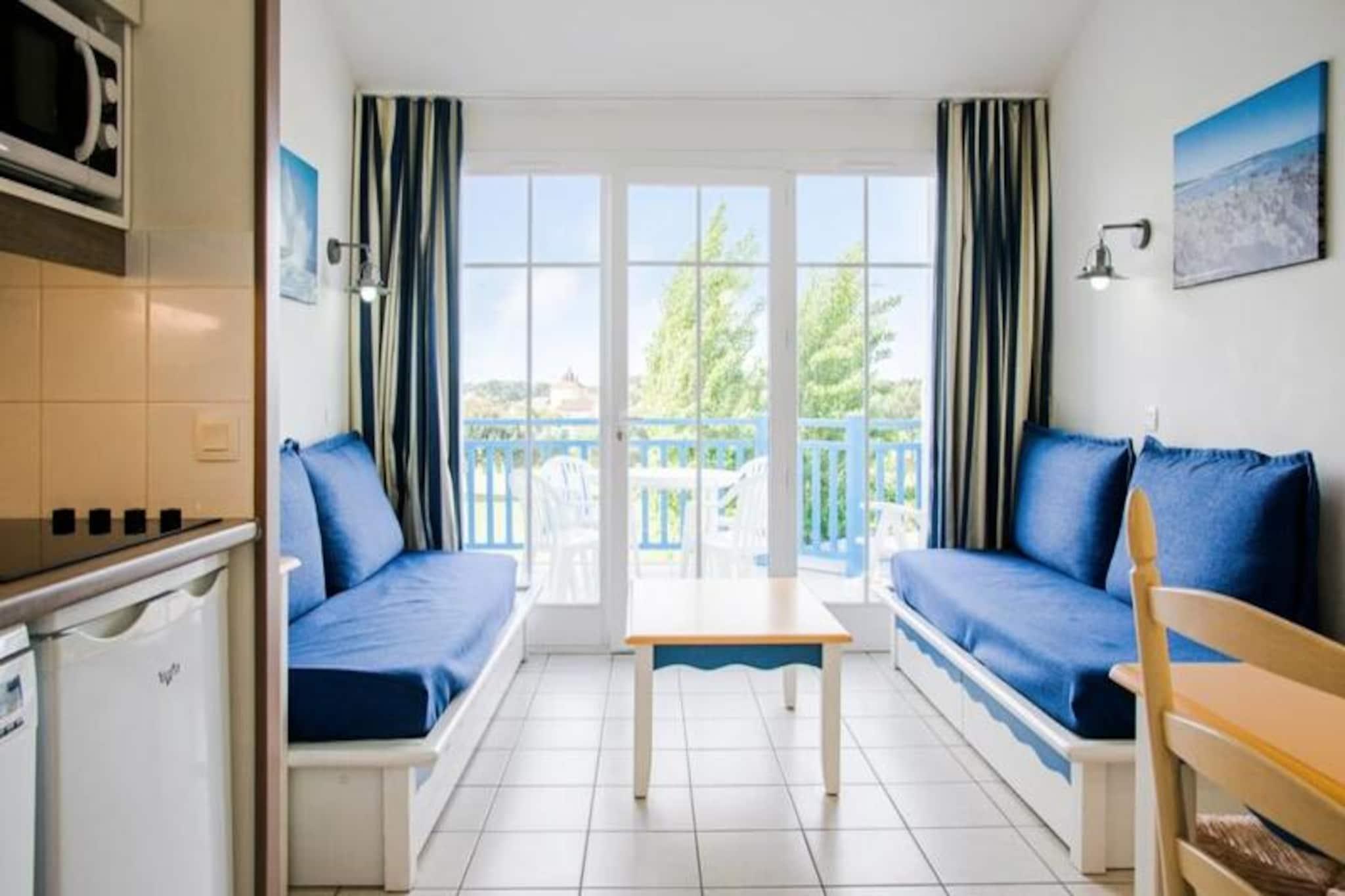 La Résidence Port Bourgenay - maeva Home está situada en Talmont-Saint-Hilaire, en la región de Vendée, a solo 9 km de Les Sables-d'Olonne. Se trata de una auténtica finca de 90 hectáreas rodeada de un pinar y con vistas directas a un lago. La residencia peatonal está dividida en cinco distritos y ofrece tiendas donde encontrará todo lo necesario para unas vacaciones cómodas y relajantes. Puedes llegar al océano a pie o en bicicleta a través del pinar, el Talmondaise (lanzadera) también puede dejarte en la playa de Veillon, situada a 2,5 km, donde podrás disfrutar de numerosas actividades. La residencia también cuenta con 3 piscinas y una zona acuática con tobogán. Fechas de apertura: La piscina del centro: del 27/04 al 12/09 La piscina del Moulin: del 15/06 al 08/09 La piscina de Bocage: del 15/06 al 02/09 En el sitio: Pizzería, panadería, bar/heladería. (Estos servicios son independientes de la residencia) Los alojamientos de Maeva Home son alquileres privados totalmente equipados ubicados dentro de la residencia. Limpieza adicional: A realizar al final de la estancia, ya sea por parte del cliente o pagando el servicio en el momento de la reserva, en el pre-check-in o a la llegada. Se beneficiará de las ventajas y servicios a la carta según sus deseos. Entretenimiento y ocio (cargo adicional): * Dos campos de golf de 18 hoyos * Tenis, minigolf 1 sala de estar, 1 área de cocina, 1 dormitorio, 1 baño, 1 WC separado y balcón (orientación sur). Equipamiento del salón: 1 sofá cama con cama nido (2 personas). Para la comida: una mesa con 4 sillas y 1 taburete. Instalaciones de la habitación: 1 dormitorio con 1 cama doble, 1 armario y 1 trastero. Equipamiento de baño: 1 bañera y 1 toallero eléctrico. 1 aseo independiente. Equipamiento de la cocina: Zona de cocina abierta al salón. Equipamiento de terraza: 1 mesa con 5 sillas. Superficie: 25 m². Las ventajas de este alojamiento: balcón amueblado, orientación sur, vista al campo de golf, acceso a la piscina de la residencia, caja fuerte, TV, espacio de almacenamiento... Etiqueta de selección de hogar maeva: Apartamentos mantenidos, al día y con equipamiento de calidad. Para unas vacaciones exitosas y confortables. Acceso Wifi - Con suplemento - sujeto a disponibilidad. Se admiten mascotas - Además, consulte directamente con la residencia para conocer los precios (permitidos para determinados alojamientos). Kit Bebé - Sujeto a disponibilidad: 1 cuna plegable (norma NF EN 716), 1 cochecito (el contenido puede variar según la residencia) - precios a consultar en recepción. Ropa de cama - Con coste adicional - El contenido puede variar según la residencia: sábana bajera, sábana o funda nórdica y funda de almohada. Toallas - Cargo extra. Posibilidad de cambio de ropa de diario disponible, consultar precios en recepción. Limpieza final de estancia - Servicio de limpieza obligatorio a pagar al realizar el check-in o a la llegada. Aparcamiento - gratuito descubierto situado en la residencia. Piscina - Incluida. En el centro de la residencia encontrará: Piscinas climatizadas, toboganes y piscina infantil con juegos acuáticos. Información de la agencia maeva Home. Fecha de apertura: 29/04 al 15/09, accesible a todos Tobogán y piscina supervisados ??únicamente del 01/07 al 31/08 Tasa turística (cargo adicional) - El pago de la tasa turística se realiza a través de su espacio personal: https://mon-compte.maeva.com, el importe varía según la ubicación. Gratis para menores de 18 años. Televisión - Dependiendo de tu alojamiento Se admiten mascotas - extra Limpieza final de estancia - Servicio de limpieza obligatorio a pagar al realizar el check-in o a la llegada. Ropa de cama - Cargo adicional.