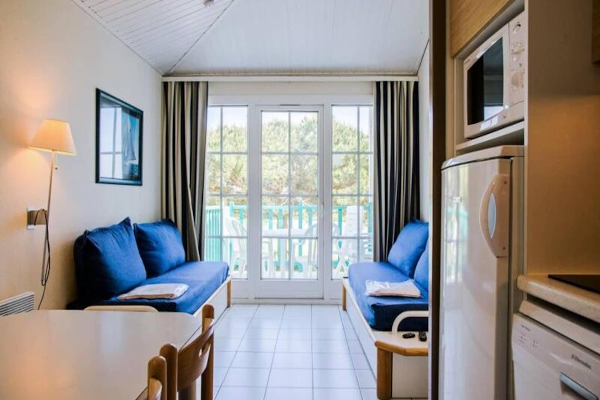 La Résidence Port Bourgenay - maeva Home está situada en Talmont-Saint-Hilaire, en la región de Vendée, a solo 9 km de Les Sables-d'Olonne. Se trata de una auténtica finca de 90 hectáreas rodeada de un pinar y con vistas directas a un lago. La residencia peatonal está dividida en cinco distritos y ofrece tiendas donde encontrará todo lo necesario para unas vacaciones cómodas y relajantes. Puedes llegar al océano a pie o en bicicleta a través del pinar, el Talmondaise (lanzadera) también puede dejarte en la playa de Veillon, situada a 2,5 km, donde podrás disfrutar de numerosas actividades. La residencia también cuenta con 3 piscinas y una zona acuática con tobogán. Fechas de apertura: La piscina del centro: del 27/04 al 12/09 La piscina del Moulin: del 15/06 al 08/09 La piscina de Bocage: del 15/06 al 02/09 En el sitio: Pizzería, panadería, bar/heladería. (Estos servicios son independientes de la residencia) Los alojamientos de Maeva Home son alquileres privados totalmente equipados ubicados dentro de la residencia. Limpieza adicional: A realizar al final de la estancia, ya sea por parte del cliente o pagando el servicio en el momento de la reserva, en el pre-check-in o a la llegada. Se beneficiará de las ventajas y servicios a la carta según sus deseos. Entretenimiento y ocio (cargo adicional): * Dos campos de golf de 18 hoyos * Tenis, minigolf 1 sala, 1 cocina, 1 área de cabañas, 1 dormitorio, 2 baños y balcón (vista al campo de golf y al punto de agua). Equipamiento del salón: 2 sofás cama con 1 cama nido (3 personas). Comedor: una mesa con 6 sillas. Instalaciones en las habitaciones: Dormitorio 1: 1 cama doble. Dormitorio camarote: 2 literas individuales. Equipamiento de baño: Baño 1 (en la habitación doble): bañera. Cuarto de baño: ducha + WC. Equipamiento de la cocina: Zona de cocina abierta al salón. Equipamiento de terraza: una mesa con 7 sillas. Superficie: 30 m² aproximadamente. Las ventajas de este alojamiento: apartamento con acceso a la piscina de la residencia, con balcón, preciosas vistas al campo de golf, trastero. Etiqueta de selección de hogar maeva: Apartamentos mantenidos, al día y con equipamiento de calidad. Para unas vacaciones exitosas y confortables. Acceso Wifi - Con suplemento - sujeto a disponibilidad. Se admiten mascotas - Además, consulte directamente con la residencia para conocer los precios (permitidos para determinados alojamientos). Kit Bebé - Sujeto a disponibilidad: 1 cuna plegable (norma NF EN 716), 1 cochecito (el contenido puede variar según la residencia) - precios a consultar en recepción. Ropa de cama - Con coste adicional - El contenido puede variar según la residencia: sábana bajera, sábana o funda nórdica y funda de almohada. Toallas - Cargo extra. Posibilidad de cambio de ropa de diario disponible, consultar precios en recepción. Limpieza final de estancia - Servicio de limpieza obligatorio a pagar al realizar el check-in o a la llegada. Aparcamiento - gratuito descubierto situado en la residencia. Piscina - Incluida. En el centro de la residencia encontrará: Piscinas climatizadas, toboganes y piscina infantil con juegos acuáticos. Información de la agencia maeva Home. Fecha de apertura: 29/04 al 15/09, accesible a todos Tobogán y piscina supervisados ??únicamente del 01/07 al 31/08 Tasa turística (cargo adicional) - El pago de la tasa turística se realiza a través de su espacio personal: https://mon-compte.maeva.com, el importe varía según la ubicación. Gratis para menores de 18 años. Televisión - Dependiendo de tu alojamiento Limpieza final de estancia - Servicio de limpieza obligatorio a pagar al realizar el check-in o a la llegada. Ropa de cama - Cargo adicional.