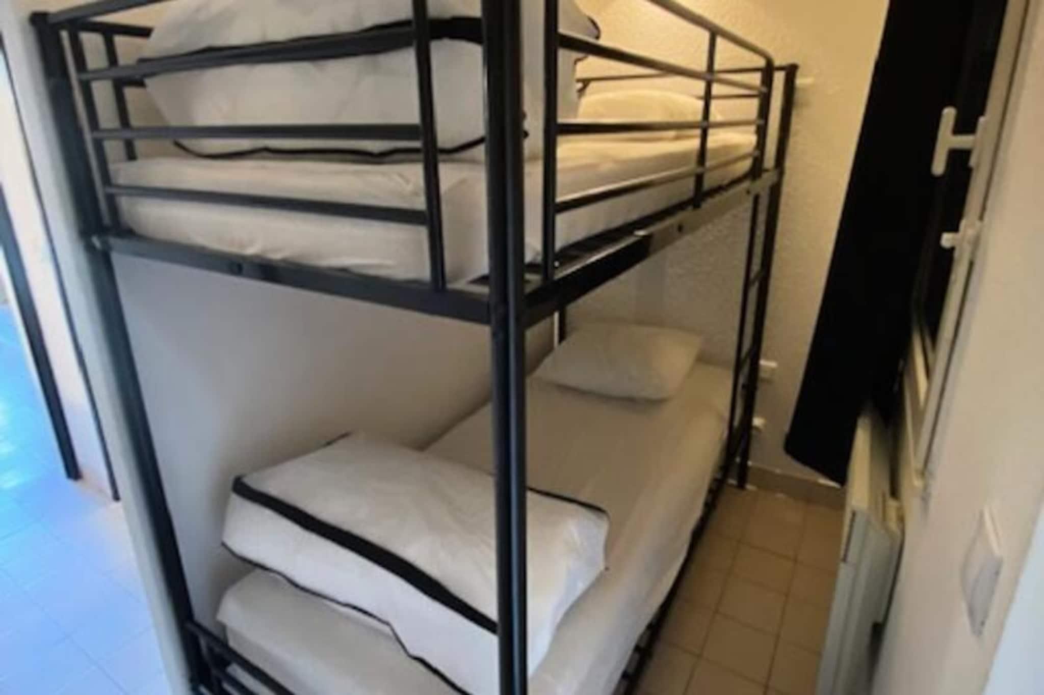 La Résidence Port Bourgenay - maeva Home está situada en Talmont-Saint-Hilaire, en la región de Vendée, a solo 9 km de Les Sables-d'Olonne. Se trata de una auténtica finca de 90 hectáreas rodeada de un pinar y con vistas directas a un lago. La residencia peatonal está dividida en cinco distritos y ofrece tiendas donde encontrará todo lo necesario para unas vacaciones cómodas y relajantes. Puedes llegar al océano a pie o en bicicleta a través del pinar, el Talmondaise (lanzadera) también puede dejarte en la playa de Veillon, situada a 2,5 km, donde podrás disfrutar de numerosas actividades. La residencia también cuenta con 3 piscinas y una zona acuática con tobogán. Fechas de apertura: La piscina del centro: del 27/04 al 12/09 La piscina del Moulin: del 15/06 al 08/09 La piscina de Bocage: del 15/06 al 02/09 En el sitio: Pizzería, panadería, bar/heladería. (Estos servicios son independientes de la residencia) Los alojamientos de Maeva Home son alquileres privados totalmente equipados ubicados dentro de la residencia. Limpieza adicional: A realizar al final de la estancia, ya sea por parte del cliente o pagando el servicio en el momento de la reserva, en el pre-check-in o a la llegada. Se beneficiará de las ventajas y servicios a la carta según sus deseos. Entretenimiento y ocio (cargo adicional): * Dos campos de golf de 18 hoyos * Tenis, minigolf Su alquiler vacacional incluye: 1 salón, 1 zona de cabina, 1 cocina, 1 baño, 1 aseo y 1 logia. Las ventajas de su alquiler: Estudio que ofrece una galería con vistas al pueblo de Port Bourgenay. Superficie: 35m². Ubicación : Planta de alojamiento: Planta baja Centro de la ciudad o pueblo: Centro del pueblo Distancia a pistas/mar: >500m Distancia comercial: >500m Actividades a distancia: entre 100m y 500m Composición del salón: Sofá cama Salón: 1 Sofá estándar: Sí Plazas para sentarse en el sofá: 3 Mesa de centro: Sí Lado de la comida: Tipo de cocina: americana Mesa en la cocina: Sí Número de sillas en la cocina: 4 Composición de las habitaciones: Cabaña 1: Acceso zona cabina: Sin Puerta Literas: 1 Composición del baño: Baño principal: Tipo de baño: Bañera sin columna Una toma de corriente libre cerca del espejo: Sí Perchero(s) o secador de toallas sin calefacción: Sí WC: Sí Etiqueta de selección de hogar maeva: Apartamentos mantenidos, al día y con equipamiento de calidad. Para unas vacaciones exitosas y confortables. Acceso Wifi - Con suplemento - sujeto a disponibilidad. Se admiten mascotas - Además, consulte directamente con la residencia para conocer los precios (permitidos para determinados alojamientos). Kit Bebé - Sujeto a disponibilidad: 1 cuna plegable (norma NF EN 716), 1 cochecito (el contenido puede variar según la residencia) - precios a consultar en recepción. Ropa de cama - Con coste adicional - El contenido puede variar según la residencia: sábana bajera, sábana o funda nórdica y funda de almohada. Toallas - Cargo extra. Posibilidad de cambio de ropa de diario disponible, consultar precios en recepción. Limpieza final de estancia - Servicio de limpieza obligatorio a pagar al realizar el check-in o a la llegada. Aparcamiento - gratuito descubierto situado en la residencia. Piscina - Incluida. En el centro de la residencia encontrará: Piscinas climatizadas, toboganes y piscina infantil con juegos acuáticos. Información de la agencia maeva Home. Fecha de apertura: 29/04 al 15/09, accesible a todos Tobogán y piscina supervisados ??únicamente del 01/07 al 31/08 Tasa turística (cargo adicional) - El pago de la tasa turística se realiza a través de su espacio personal: https://mon-compte.maeva.com, el importe varía según la ubicación. Gratis para menores de 18 años. Televisión - Dependiendo de tu alojamiento Depósito (en euros) - 400 Ropa de cama - Cargo adicional. Limpieza final de estancia - Servicio de limpieza obligatorio a pagar al realizar el check-in o a la llegada.