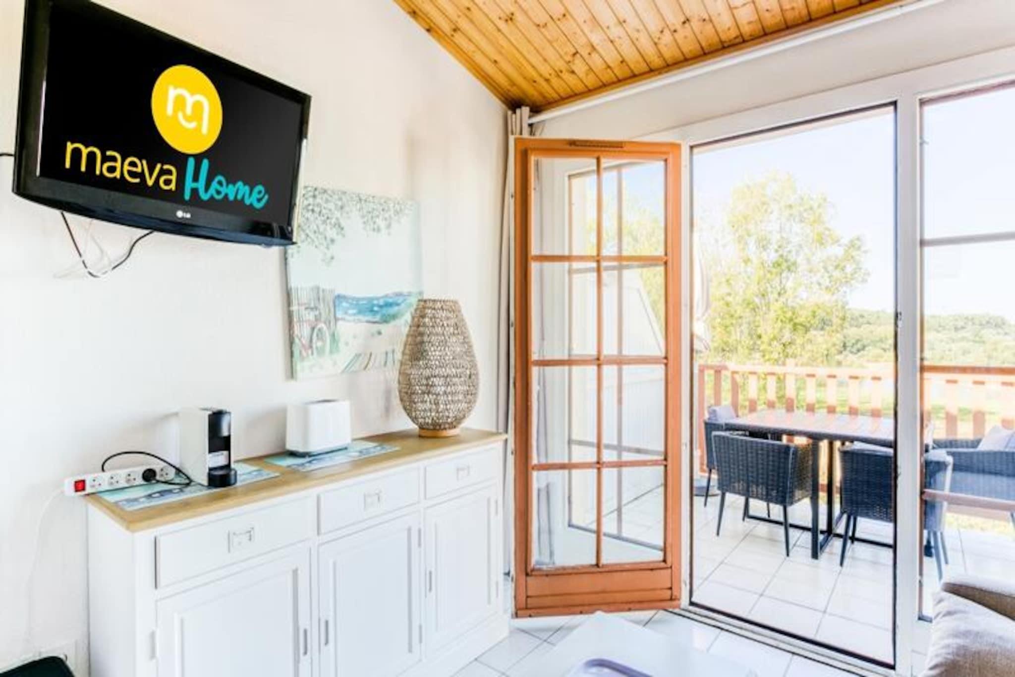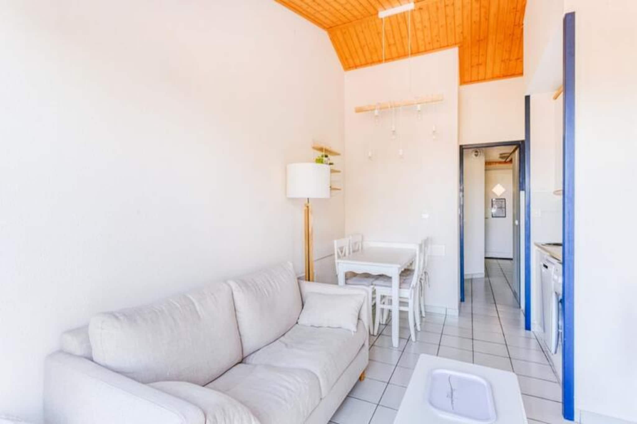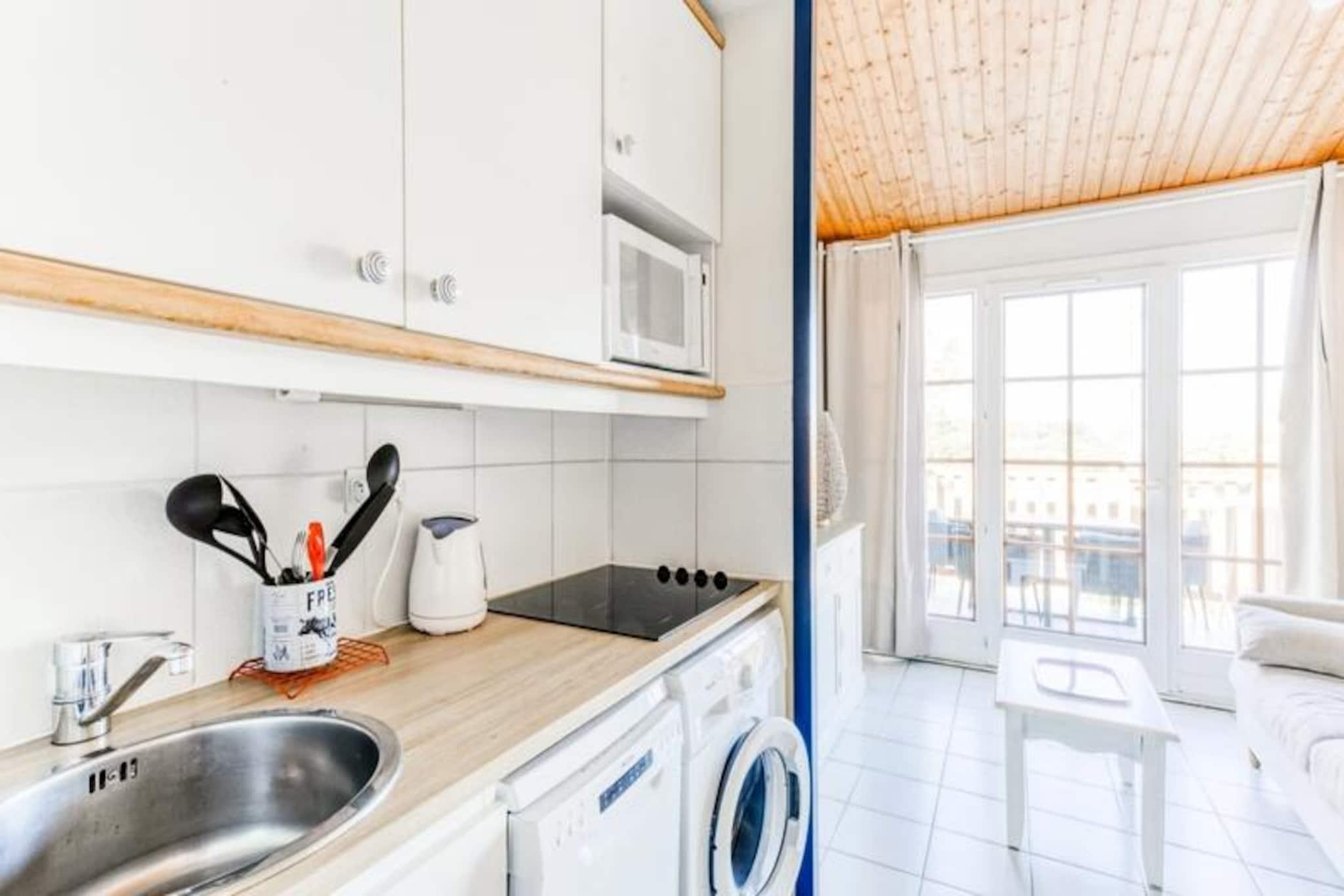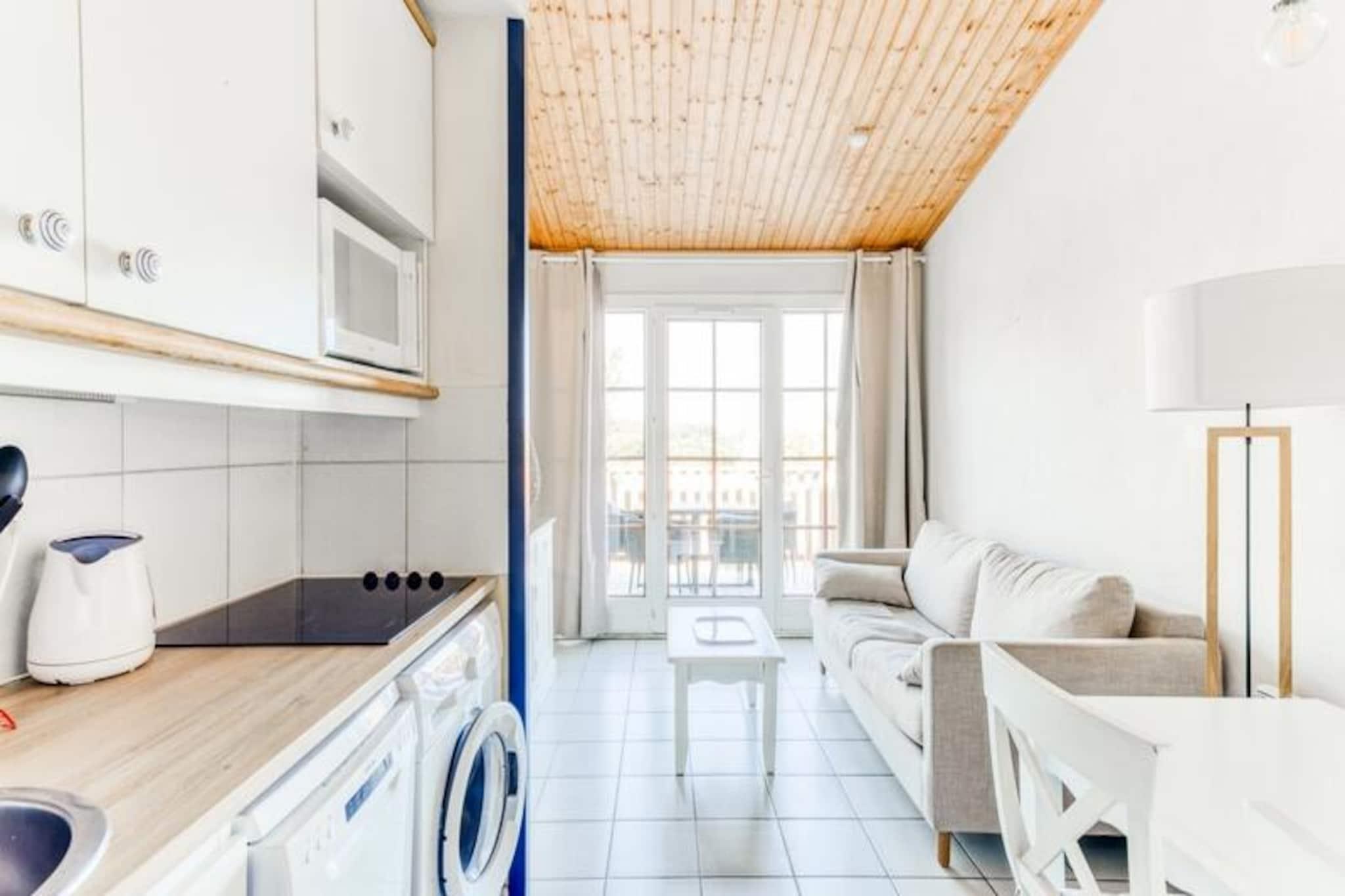 Denne charmerende 32 m² store lejlighed på 2. sal er ideel til en afslappende ferie, og byder på en lys stue med en sovesofa (2 sovepladser), et soveværelse med dobbeltseng og et badeværelse med badekar. Lejligheden har en vestvendt altan med en dejlig udsigt over søen, og der er gratis parkering på stedet. Kæledyr er tilladt mod et ekstra gebyr (tjek med boligen for detaljer). Sengelinned og håndklæder er tilgængelige mod et ekstra gebyr, med mulighed for at skifte sengetøj dagligt mod et ekstra gebyr. Boligen ligger på en 90 hektar stor ejendom omgivet af fyrreskove, der tilbyder nem adgang til havet via vandre- eller cykelstier. Du kan også tage en shuttle til Veillon-stranden, kun 2,5 km væk. Området byder på forskellige fritidsaktiviteter, herunder to 18-hullers golfbaner, tennis, minigolf og flere swimmingpools. Den nærliggende by Talmont-Saint-Hilaire byder på et udvalg af butikker, caféer og restauranter, hvilket sikrer, at alt hvad du behøver for et behageligt ophold er inden for rækkevidde. Indvendigt har lejligheden et moderne køkken åbent til stuen, komplet med et spisebord til fire. Boligen tilbyder også yderligere faciliteter såsom swimmingpools, vandrutsjebaner og et pizzeria. WiFi-adgang er tilgængelig mod et gebyr, og boligen tilbyder også en valgfri slutrengøring.