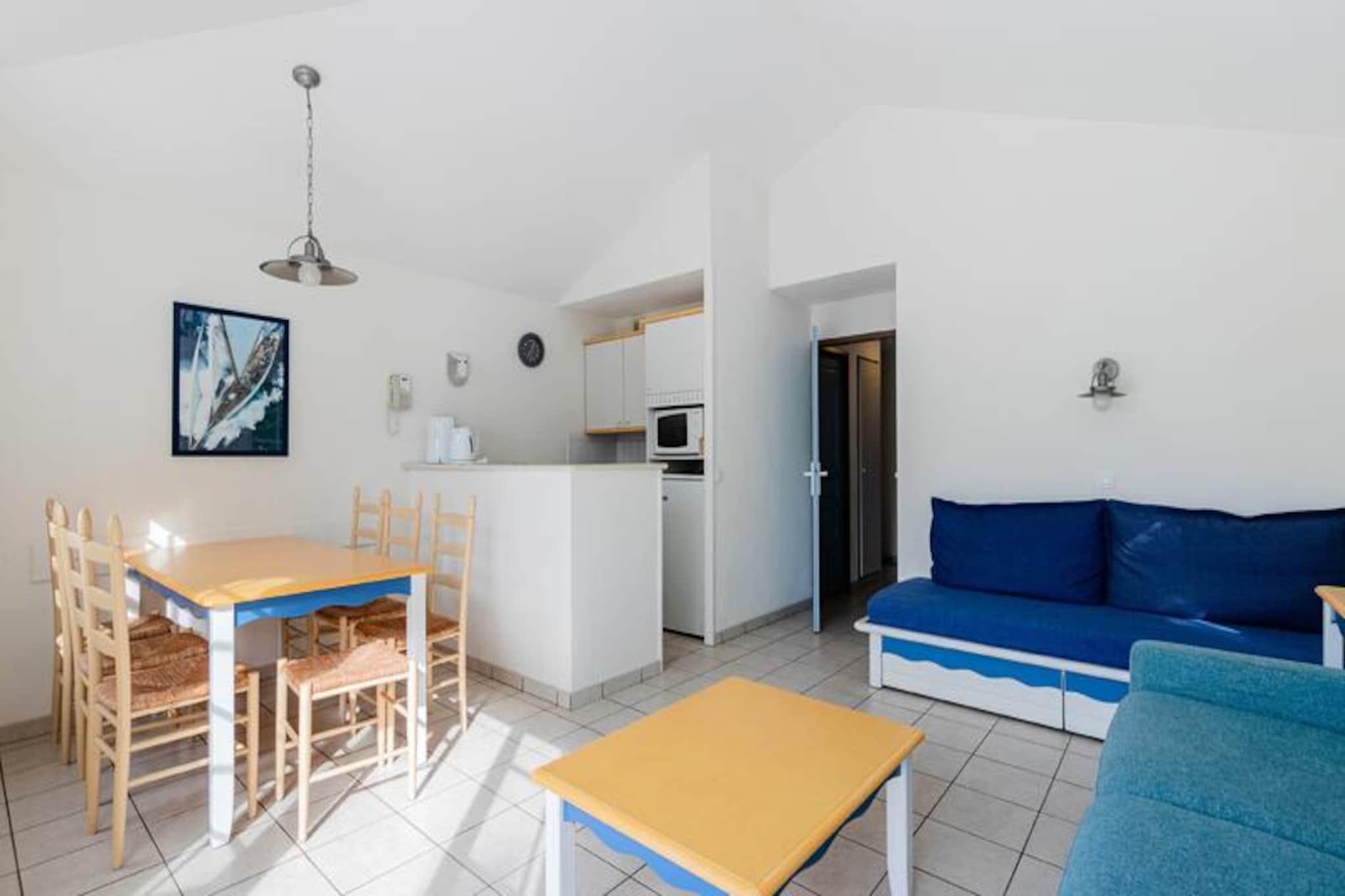 La Résidence Port Bourgenay - maeva Home está situada en Talmont-Saint-Hilaire, en la región de Vendée, a solo 9 km de Les Sables-d'Olonne. Se trata de una auténtica finca de 90 hectáreas rodeada de un pinar y con vistas directas a un lago. La residencia peatonal está dividida en cinco distritos y ofrece tiendas donde encontrará todo lo necesario para unas vacaciones cómodas y relajantes. Puedes llegar al océano a pie o en bicicleta a través del pinar, el Talmondaise (lanzadera) también puede dejarte en la playa de Veillon, situada a 2,5 km, donde podrás disfrutar de numerosas actividades. La residencia también cuenta con 3 piscinas y una zona acuática con tobogán. Fechas de apertura: La piscina del centro: del 27/04 al 12/09 La piscina del Moulin: del 15/06 al 08/09 La piscina de Bocage: del 15/06 al 02/09 En el sitio: Pizzería, panadería, bar/heladería. (Estos servicios son independientes de la residencia) Los alojamientos de Maeva Home son alquileres privados totalmente equipados ubicados dentro de la residencia. Limpieza adicional: A realizar al final de la estancia, ya sea por parte del cliente o pagando el servicio en el momento de la reserva, en el pre-check-in o a la llegada. Se beneficiará de las ventajas y servicios a la carta según sus deseos. Entretenimiento y ocio (cargo adicional): * Dos campos de golf de 18 hoyos * Tenis, minigolf Su alquiler vacacional incluye: 1 salón, 1 cocina, 2 dormitorios, 1 baño, 1 aseo independiente y 1 balcón. Las ventajas de su alquiler: Apartamento luminoso con balcón orientado al sur y con vistas al valle. Superficie: 35 m². Ubicación: Piso de alojamiento: 1er piso, Le Parc Acceso a playa o pista: No Centro de ciudad o pueblo: No Distancia de las pistas al mar: >500m Distancia al negocio: >500m Actividades a distancia: >500m Número de niveles de vivienda: Una sola planta Composición de la estancia: Sofá estándar: Sí Plazas para sentarse en el sofá: 3 Sofá convertible: Sí Número de camas en el sofá convertible: 2 sofás cama individuales, uno de ellos con 1 cama nido (3 camas) Mesa en el comedor: Sí Número de sillas (o taburetes): 7 Mesa de centro: Sí Chimenea: No Lado de la comida: Tipo de cocina: americana Mesa en la cocina: No Número de sillas en la cocina: No Composición de las habitaciones: Dormitorio 1: Camas individuales dormitorio 1: No Camas dobles dormitorio 1:1 Literas dormitorio 1: No Dormitorio 2: Camas individuales dormitorio 2: No Camas dobles dormitorio 2: No Literas dormitorio 2: 1 Composición del baño: Estado del baño principal: Buen estado Un inodoro privado dentro del alojamiento: Sí Un segundo baño privado con acceso independiente: No Un segundo inodoro: No Exteriores: Balcón: Sí Balcón opuesto: No Vista del balcón: Valle Orientación balcón: Sur Terraza: No Terraza opuesta: No Vista terraza: No Orientación terraza: No Jardín: No Con vistas al jardín: No Vista al jardín: No Orientación jardín: No Aparcamiento dedicado al alojamiento: No Tipo de Estacionamiento: Cubierto ¿Cómo describiría la luminosidad del alojamiento en su conjunto? : Brillante Etiqueta de selección de hogar maeva: Apartamentos mantenidos, al día y con equipamiento de calidad. Para unas vacaciones exitosas y confortables. Acceso Wifi - Con suplemento - sujeto a disponibilidad. Se admiten mascotas - Además, consulte directamente con la residencia para conocer los precios (permitidos para determinados alojamientos). Kit Bebé - Sujeto a disponibilidad: 1 cuna plegable (norma NF EN 716), 1 cochecito (el contenido puede variar según la residencia) - precios a consultar en recepción. Ropa de cama - Con coste adicional - El contenido puede variar según la residencia: sábana bajera, sábana o funda nórdica y funda de almohada. Toallas - Cargo extra. Posibilidad de cambio de ropa de diario disponible, consultar precios en recepción. Limpieza final de estancia - Servicio de limpieza obligatorio a pagar al realizar el check-in o a la llegada. Aparcamiento - gratuito descubierto situado en la residencia. Piscina - Incluida. En el centro de la residencia encontrará: Piscinas climatizadas, toboganes y piscina infantil con juegos acuáticos. Información de la agencia maeva Home. Fecha de apertura: 29/04 al 15/09, accesible a todos Tobogán y piscina supervisados ??únicamente del 01/07 al 31/08 Tasa turística (cargo adicional) - El pago de la tasa turística se realiza a través de su espacio personal: https://mon-compte.maeva.com, el importe varía según la ubicación. Gratis para menores de 18 años. Televisión - Dependiendo de tu alojamiento Depósito (en euros) - 600 Limpieza final de estancia - Servicio de limpieza obligatorio a pagar al realizar el check-in o a la llegada. Ropa de cama - Cargo adicional.