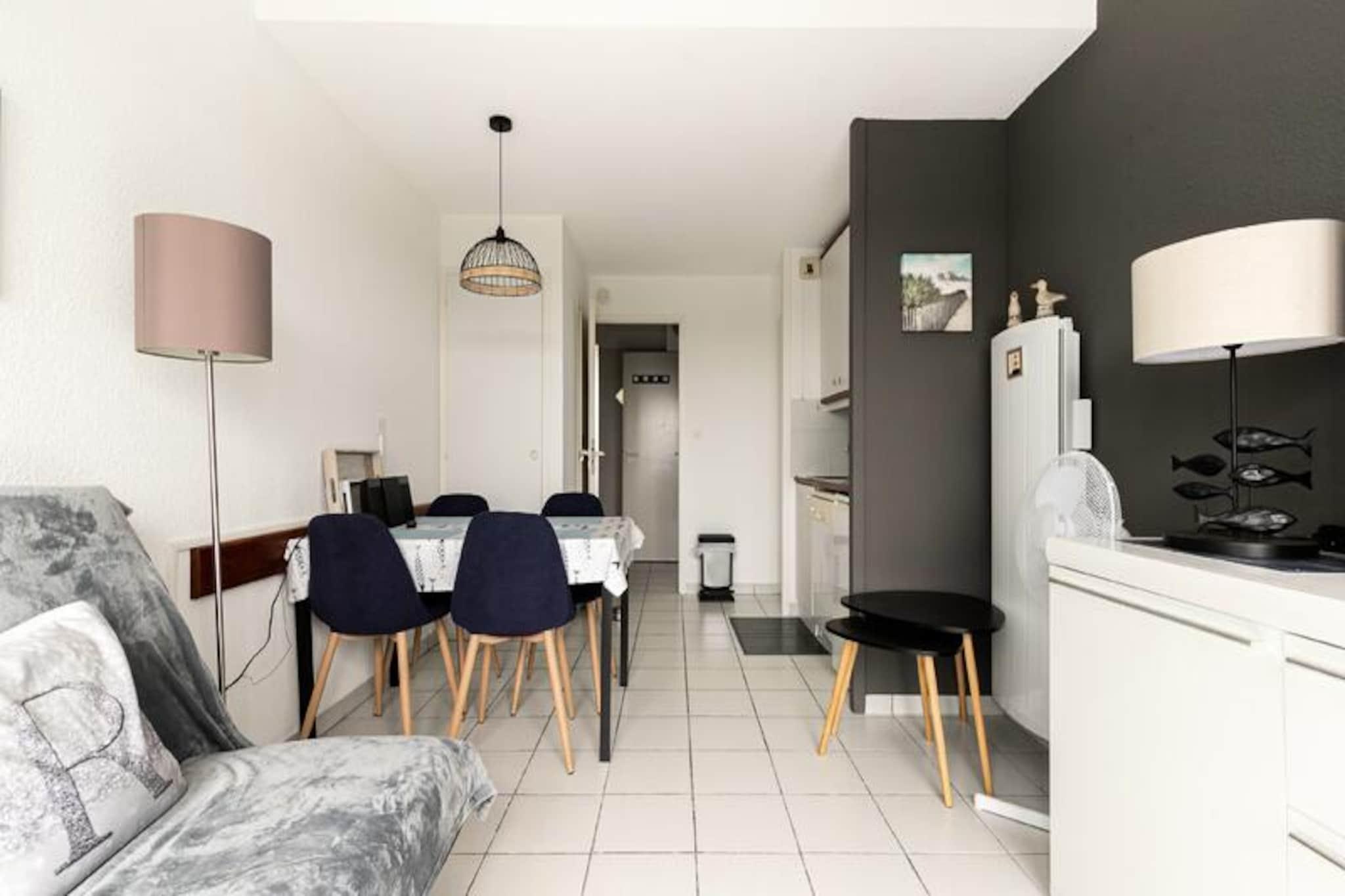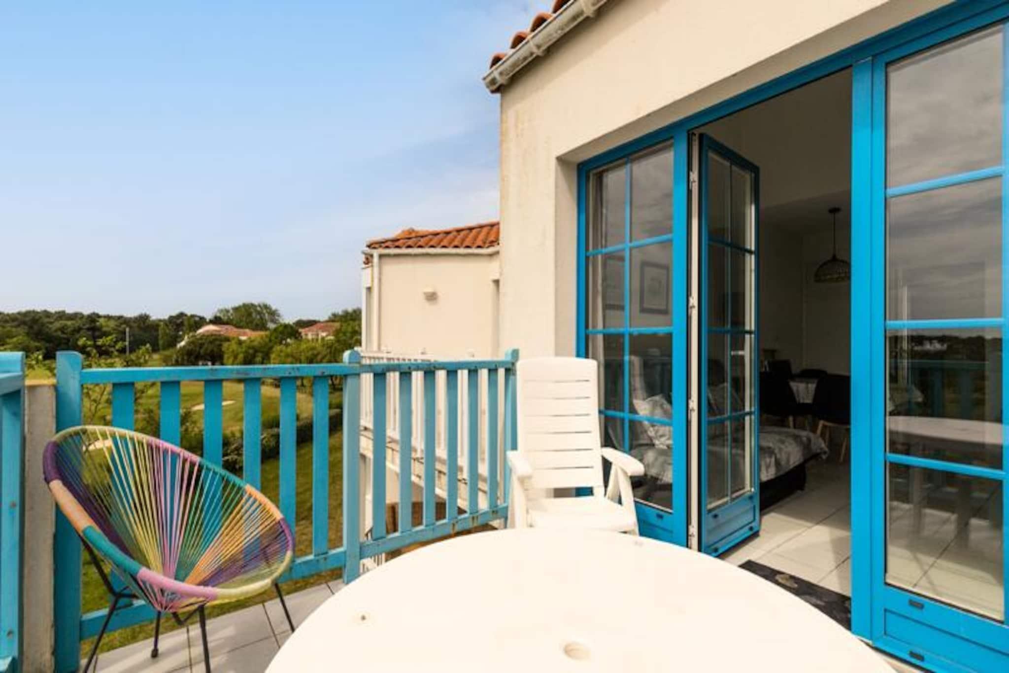 Denne charmerende duplex lejlighed, beliggende på anden sal, tilbyder et behageligt ophold for op til fire personer. Lejligheden har et soveværelse med en 140 cm seng, der kan adskilles i to enkeltsenge, en sovesofa i stuen og et badeværelse med badekar. Nyd to altaner, den ene mod syd med udsigt over golfbanen, og den anden mod nordvest. Ejendommen er kæledyrsvenlig med tillægsgebyrer for kæledyr, og et babysæt er tilgængeligt efter anmodning. Boligen ligger på en stor 90 hektar stor ejendom omgivet af en smuk fyrreskov med direkte adgang til en sø. Det er kun en kort gåtur eller cykeltur til havet, eller du kan tage shuttlen til Veillon Beach, 2,5 km væk. Den nærliggende by byder på et udvalg af butikker, mens selve boligen kan prale af en række rekreative faciliteter, herunder tre swimmingpools, en rutsjebane, tennis, minigolf og to 18-hullers golfbaner. Indvendigt er lejligheden veludstyret til et ophold med egen forplejning, og den har et fuldt udstyret køkken, en spiseplads og en komfortabel stue. Yderligere faciliteter inkluderer parkering, adgang til de opvarmede pools og spisemuligheder på stedet såsom et pizzeria, bageri og bar/isbar. Boligen tilbyder også valgfri tjenester som Wi-Fi, sengelinned, håndklæder og slutrengøring.