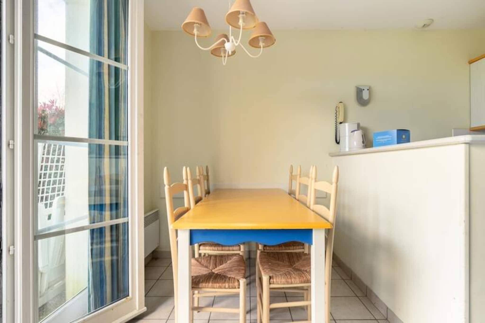 Dette charmerende duplex-feriehus i Bocage-distriktet tilbyder rummelige 45 m² for op til 6 gæster. Det har 2 soveværelser, herunder 1 dobbeltseng og 2 enkeltsenge, og en stue med sovesofa og trille til yderligere sovearrangementer. Ejendommen er kæledyrsvenlig (ekstra gebyrer) og tilbyder parkering, hvilket gør det til en bekvem mulighed for familier. Sengetøj er tilgængeligt mod et tillægsgebyr, og slutrengøring er obligatorisk. Beliggende kun få skridt fra havnen i Port-Bourgenay, er dette feriehus ideelt placeret til at udforske Vendée-kysten. Gæster kan nyde nærliggende attraktioner såsom de opvarmede swimmingpools i Bocage- og Moulin-distrikterne, eksklusive for beboere. Boligen tilbyder adgang til rutsjebaner, soppebassiner og vandspil, hvilket sikrer sjov for alle aldre. Der er også caféer, markeder og butikker i det omkringliggende område, perfekt til lokale restauranter og shopping. Inde i feriehuset er det fuldt udstyrede køkken halvåbent til stuen, hvilket giver en behagelig plads til familiens måltider. Badeværelset har badekar og toilet samt et ekstra separat toilet. For nemheds skyld er trådløs internetadgang tilgængelig mod et gebyr, og du kan nyde terrassen til udendørs afslapning.