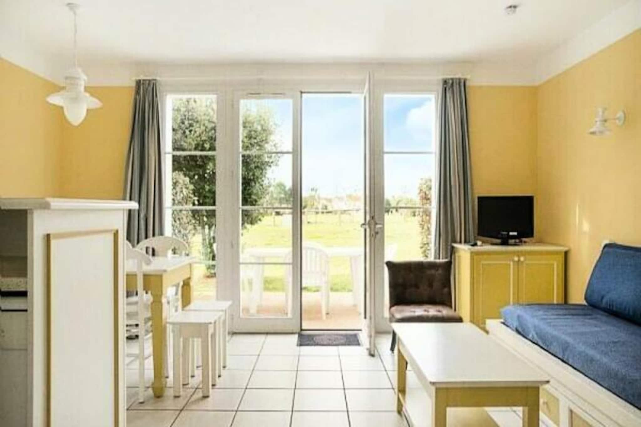 Dette charmerende feriehus byder på en rummelig planløsning på 48 m², ideel til op til 6 gæster. Det har en hyggelig stue, et veludstyret køkken, 2 komfortable soveværelser, et badeværelse og et separat toilet. Ejendommen er kæledyrsvenlig (med forbehold for tillægsgebyrer), og sengetøj og håndklæder er tilgængelige mod et ekstra gebyr. Slutrengøring er obligatorisk, og boligen leverer et vedligeholdelsessæt for at sikre et behageligt ophold. Wi-Fi-adgang er tilgængelig mod et tillæg, afhængigt af tilgængelighed. Beliggende i hjertet af Vendée, ligger denne ejendom kun et stenkast fra Bourgenay-marinaen, der tilbyder en afslappende kyststemning. Gæsterne kan udforske de nærliggende strande samt den maleriske by Talmont-Saint-Hilaire. Det omkringliggende område er rigt på natur og aktiviteter, fra naturskønne gåture til nærliggende markeder og caféer. Ejendommen ligger også tæt på forskellige attraktioner såsom Île de Ré, hvor besøgende kan opdage charmerende landsbyer og fantastiske landskaber. Indenfor er boligen udstyret med et fuldt funktionelt køkken, der giver mulighed for selvforplejning. Gæsterne kan nyde adgang til flere opvarmede swimmingpools, herunder dem med rutsjebaner og soppebassiner. Ejendommens private, fredelige omgivelser omfatter afslapningsområder med havemøbler, mens badeværelserne er moderne og praktiske.