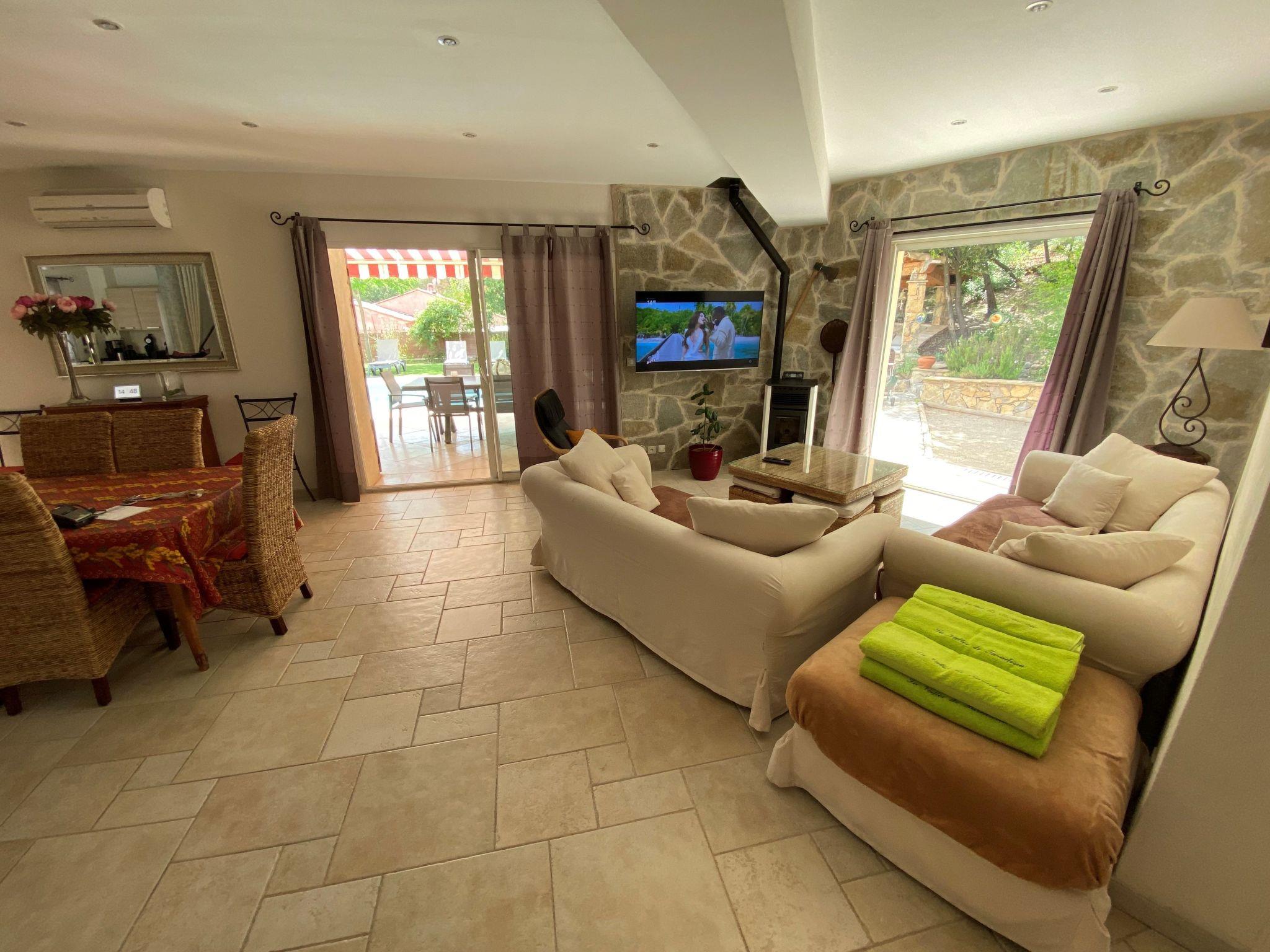 Villa with beautiful view of the village, in the peace, in the heart of the wine growers Superb Villa of charm with 4 rooms for 8 people only for you with swimming pool heated from April till October situated in a residence of 8 private villas, in the peace with view on Taradel in 300 m of the village of Taradeau It has a pleasant stay American kitchen all equipped, dining room, a lounge with sofa, TV, 1 room reads 160 cm situated in the Rez of road, 1 shower-room in the Italian with toilet and 3 rooms in the floor: 1 master suite with 160 cm bed, TV, walk-in shower and toilet, 1 bedroom with 2 single beds 90 x 200 cm, 1 bedroom with 1 double bed 140 cm, 1 walk-in shower room with toilet, study with sofa bed, library, board games, fibre-optic wifi, reversible air conditioning in all rooms, pellet stove on the ground floor. Outside the house you will find an enclosed garden with swimming pool heated from April to the end of October, pool house, petanque area, garden furniture in the shade, 8 deckchairs, barbecue, pool house, outdoor games, garage and 2 parking spaces. 1 km from the villa, free access to a 25 m heated swimming pool from April to October, entertainment, mini club for children, aquagym... in July and August 3 km from the Vidauban leisure centre and shops 30 km from the sea (St Raphael, Ste Maxime) and we are within a 45 km radius of tourist attractions (Lac Ste Croix, Gorges du Verdon, St Tropez, hilltop village, waterfalls...).