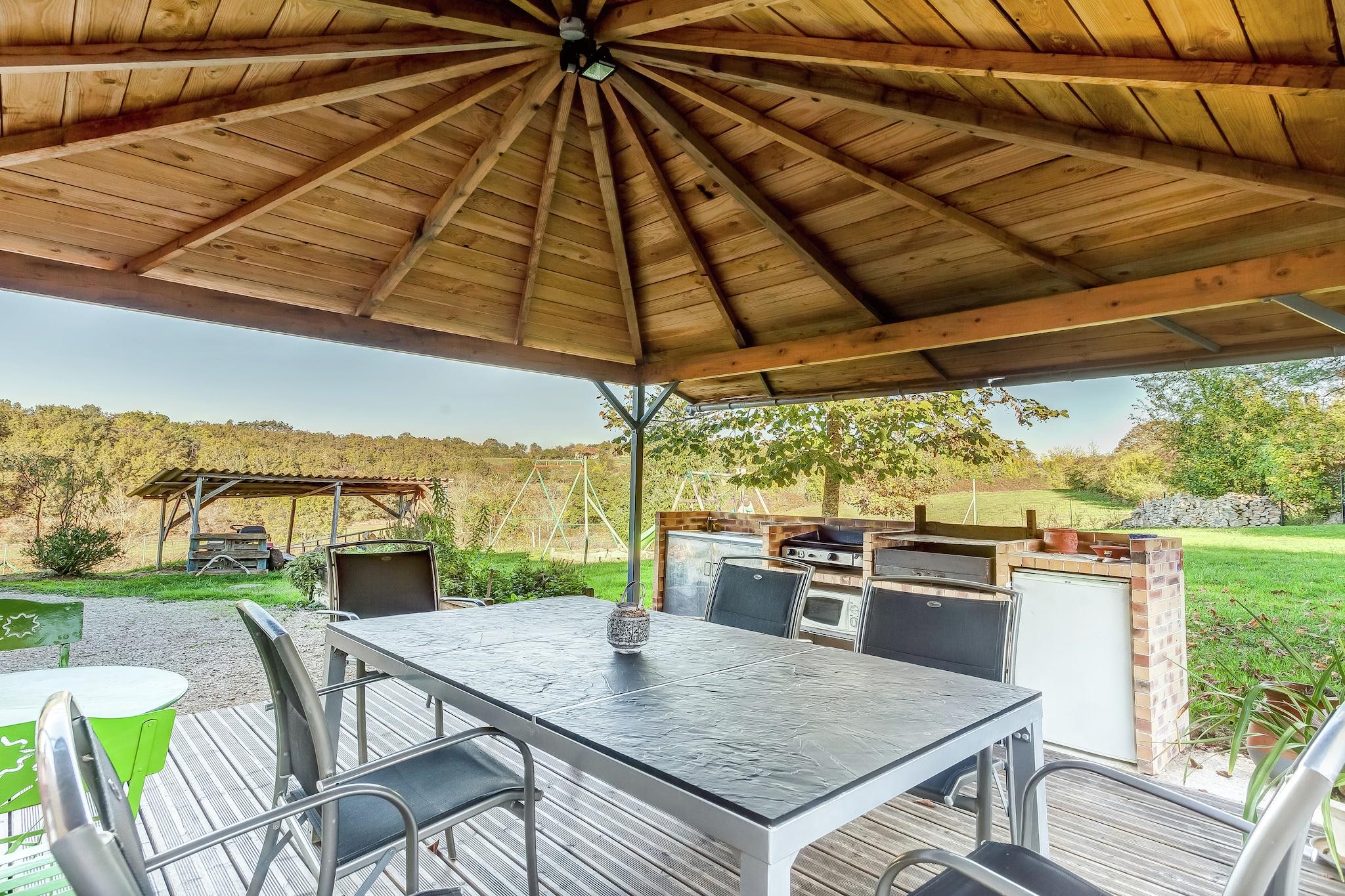 Dette ekspansive feriehus i Thédirac er en drømmeudflugt for store familier eller grupper på op til 10 gæster. Med 5 hyggelige soveværelser og en flot udsigt over skov og marker tilbyder det både komfort og charme kun 150 meter fra landsbyens centrum. Forhaven har en velmøbleret terrasse med parasol, mens den private swimmingpool og liggestole inviterer dig til at nyde solen med stil. Placeringen er ideel til at udforske Lot-regionens skatte. Du er beliggende mellem Cahors (20 km), berømt for sin gotiske Pont Valentré og vingårde, og Gourdon (25 km), en middelalderperle med arkitektur fra det 13.-16. århundrede. Dagsture til Grottes du Pech Merle (44 km), St. Cirq-Lapopie (50 km) og Château de Cénevières (60 km) byder på kulturel rigdom, mens Catus (7 km) byder på en sø med kano- og vandcykeludlejning til udendørs sjov. Tilbage ved huset kan den bageste terrasse prale af et udendørs køkken og både sten- og gasgrill. Børn vil elske gynge-, rutschebane- og bordtennisbordet, mens det åbne, luftige interiør - med dets slående arkitektoniske tomrum - gør indendørs tid lige så dejlig.