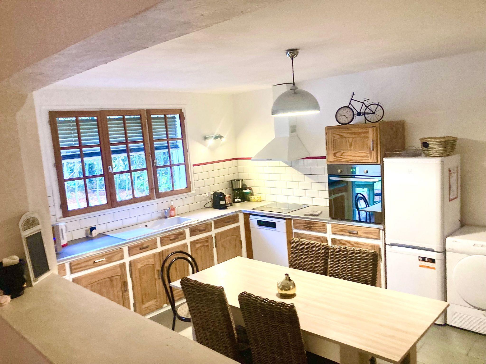 The interior of the house is fully equipped to meet all your needs during your stay. The three spacious bedrooms are ideal for resting after a day exploring the surrounding area. The house also has a practical bathroom, complete with a bathtub for your moments of relaxation. A private washing machine and tumble dryer provide all the comforts you need for an extended stay. Partial air conditioning, combined with three fans, ensures a cool and pleasant interior, while the fireplace adds a warm note to cooler evenings. The kitchen, the heart of the house, is fully equipped with an induction hob, two types of coffee maker, a dishwasher and an electric kettle, promising moments of conviviality and sharing over home-cooked meals.