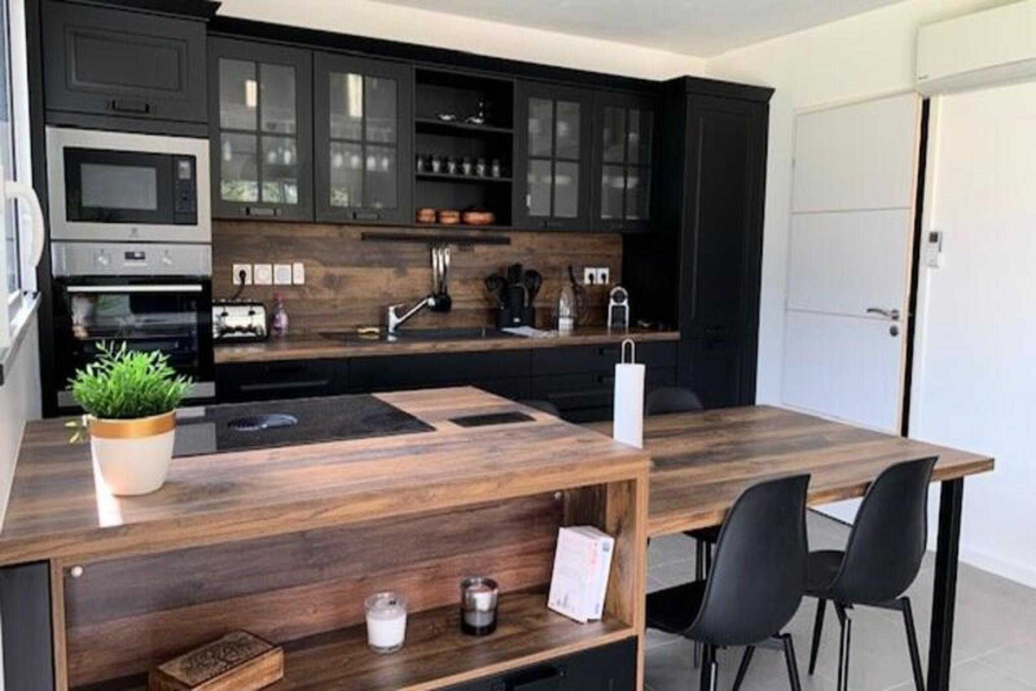 Dette charmerende feriehus med 3 stjerner er ideelt til op til 4 gæster og har et rummeligt interiør på 81 m². Boligen indeholder to komfortable soveværelser, hver indrettet med en 160x200 cm seng, komplet med puder og dyner. Stuen har en stor sofa og et tilsluttet tv til afslapning, og det åbne køkken med spiseplads er fuldt udstyret med moderne bekvemmeligheder såsom induktionskomfur, køleskab med fryser, ovn, mikroovn, opvaskemaskine og kaffemaskine. Kæledyr er velkomne, med højst to tilladte, og slutrengøring er inkluderet. Beliggende i Trébeurden, denne ejendom har nem adgang til sandstrande og er beliggende langs den berømte GR34 vandresti. Udforsk den smukke lyserøde granitkyst, kendt for sine fantastiske naturlandskaber og charmerende atmosfære. Området byder på en række udendørs aktiviteter, fra strandudflugter til vandreture, hvilket gør det til en ideel destination for naturelskere. Lokale caféer og markeder er også inden for rækkevidde, som giver alt hvad du behøver for et afslappende ophold. Feriehuset har desuden spisekammer og badeværelse med bruseniche og toilet. Til udendørs nydelse er der en terrasse med havemøbler, en parasol og en Weber-grill til udendørs spisning. Ejendommen er røgfri og tilbyder et fredeligt tilflugtssted i miljøvenlige omgivelser.