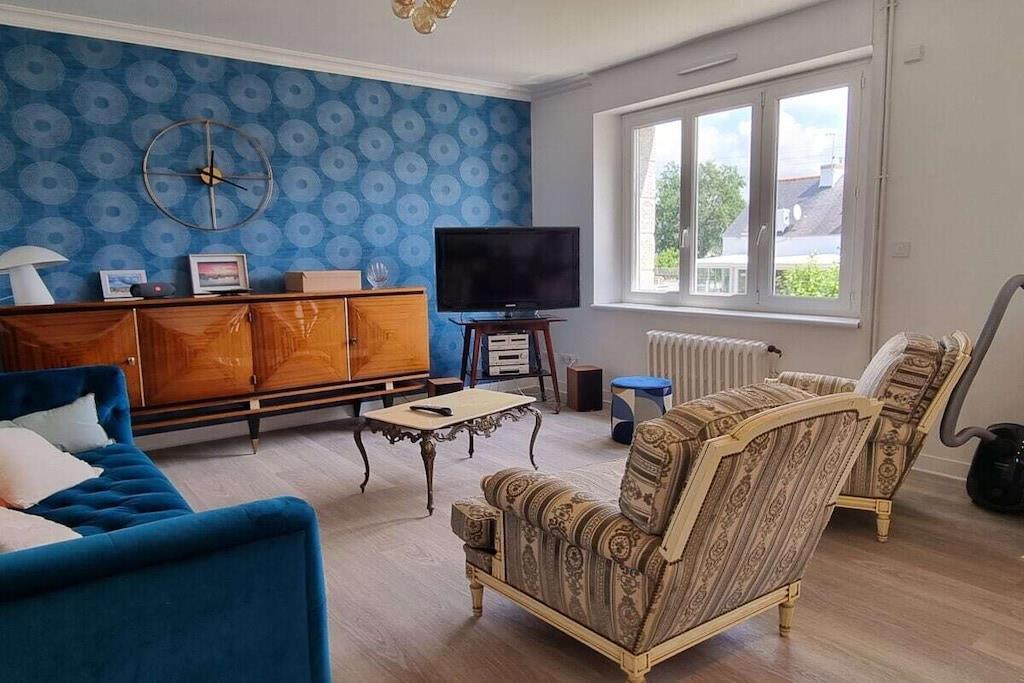 Completely renovated, elevated house, measuring approximately 115m², located in the Lambell district of Trégunc (set back from the road) - Enclosed garden of approximately 300m² - Parking for 2 cars (access via a small 2.50m wide driveway), garage - The beaches of Pendruc and Pouldohan are a 5-minute drive away, as are the shops in Trégunc - Concarneau and its entertainment options are approximately 6km away - Electric shutters Wi-Fi via 4G box - Garage/Laundry room: Washing machine - Dryer - 2 bicycles available - Ping-pong table Garden furniture: Table - Chairs - Barbecue - Parasol Entrance to the MASTER ROOM of approximately 33m², including: A kitchen equipped with: Table and chairs, induction hob - Electric oven - Microwave - Dishwasher - Refrigerator with freezer compartment - Storage room and Living room with: Sofa - Armchairs - Coffee table - Sideboard - TV on furniture - Garden view - Parquet flooring Bedroom: 1 x 1.60m bed - Wardrobe - Chest of drawers - Bedside tables and lamp - View to the rear - Parquet flooring Bathroom: Walk-in shower 160 x 80 - Double sink - Storage - Parquet flooring - Separate toilet Floor: Bedroom 1 x 1.40m bed - Wardrobe - Bedside table + lamp - Armchair - Parquet flooring Bedroom: 1 x 1.60m bed - Chest of drawers - Bedside tables + lamps - Rocking chair - Parquet flooring - Bedroom with 2 x 0.90m beds - Bedside tables and lamps - Storage space - Parquet flooring - Skylight Separate toilet - Bathroom: Bathtub with shower screen - Sink with shelf - Parquet flooring