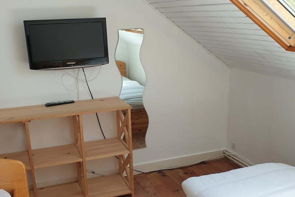 Stueetage: (åbent køkken(Fjernsyn, spisebord, kogeplade, brødrister, kaffemaskine, mikrobølgeovn, køleskab), soveværelse(dobbeltseng), badeværelse(toilet, bruser, håndvask), pulterkammer(, vaskemaskine)) På 1. etage: (soveværelse(dobbeltseng), soveværelse(enkeltseng, enkeltseng), badeværelse(badekar, håndvask), guest toilet) , , , garage, Internetadgang, vaskemaskine, have(Grill center, havemøbler), parkering, strygebræt, strygejern