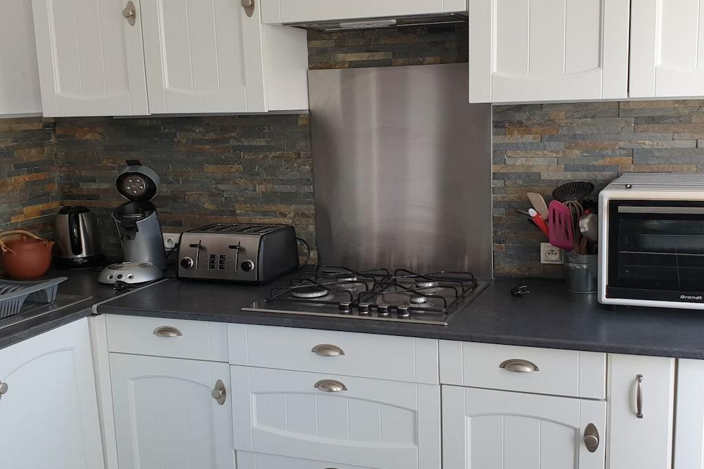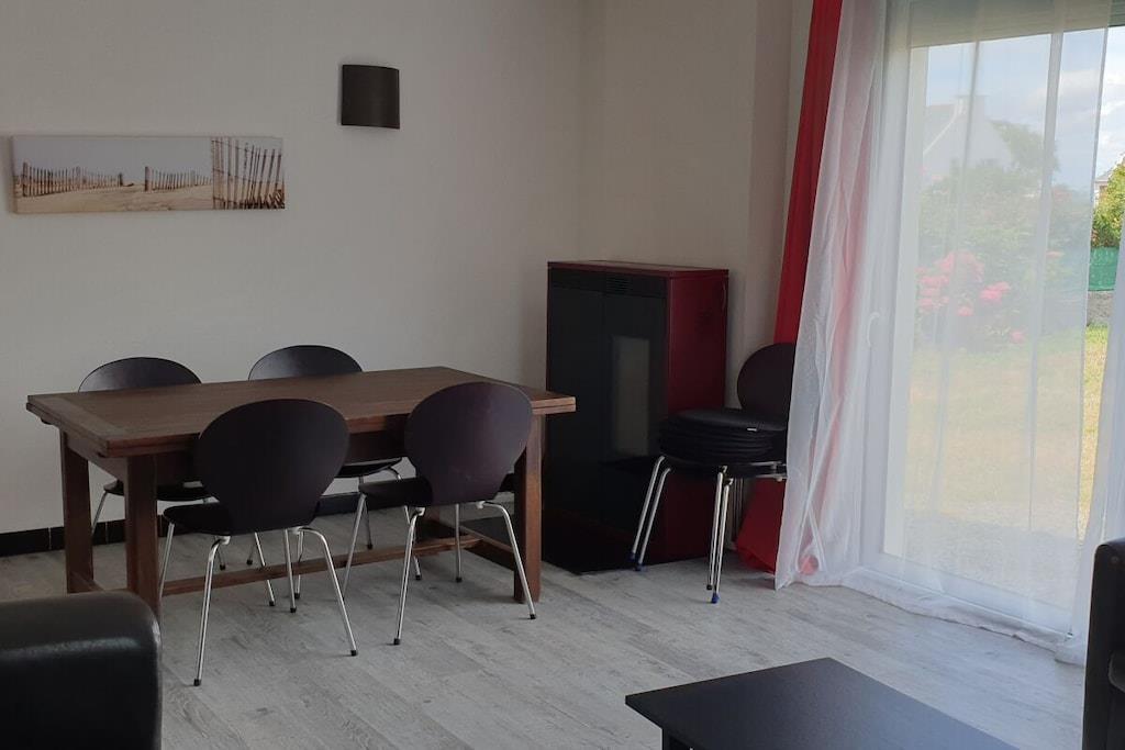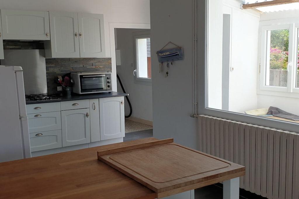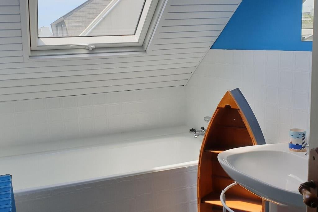 Dette traditionelle hus på 90 m² er smukt beliggende cirka 150 meter fra havet og de dejlige sandstrande ved den lille havn Trévignon i Trégunc-området. Huset ligger i et roligt boligområde med en 500 m² indhegnet have. Det er udstyret som følger: Stueetage: Stue med sofa, lænestole, bord og stole, TV, karnap med udsigt over haven, tekøkken med mikrobølgeovn, køleskab, spisekammer, komfur, opvaskemaskine, vaskemaskine, soveværelse med dobbeltseng og eget badeværelse med bruser, håndvask og toilet (fuldstændig renoveret i 2019). Første sal: Soveværelse med en 140 cm seng, et andet soveværelse med to 90 cm senge, badeværelse med badekar, håndvask og toilet. Wi-Fi er også tilgængelig.
