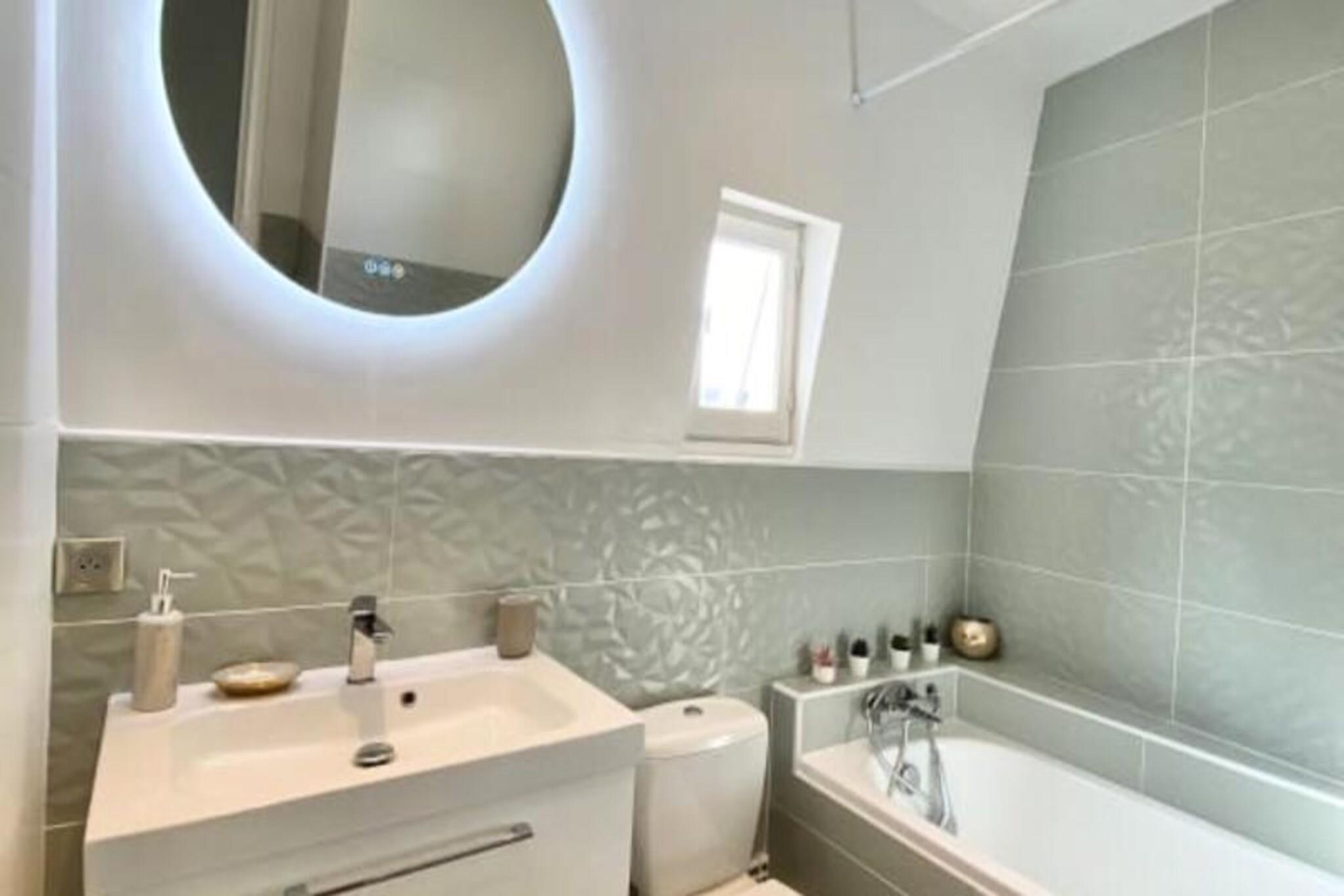 Denne rummelige duplex-lejlighed er perfekt til familier, professionelle eller vennegrupper med plads til op til 6 gæster. Beliggende på 3. sal i en sikker bolig (uden elevator), den har en hyggelig stue med et UHD Smart TV og et bibliotek. Lejligheden byder på 3 soveværelser, herunder et soveværelse i stueetagen med dobbeltseng og to soveværelser ovenpå, hver med dobbeltsenge. To badeværelser, det ene med badekar, giver ekstra komfort. Lejligheden er kæledyrsvenlig, og en rejseseng er tilgængelig efter anmodning. Lejligheden er ideelt placeret, kun 2 minutters gang fra stranden og kasinoet, og tilbyder den perfekte balance mellem bekvemmelighed og ro. Det er beliggende i hjertet af Trouville, omgivet af butikker, caféer og markeder, så du kan fordybe dig fuldt ud i den lokale kultur. De ikoniske Trouville fiskerhuse i nærheden tilføjer en unik charme til området, og du kan nemt udforske den pulserende by eller slappe af ved havet. Det fuldt udstyrede køkken omfatter køleskab, ovn, mikroovn, vaskemaskine, tørretumbler og Nespresso-kaffemaskine, hvilket gør det nemt at tilberede måltider. Lejligheden tilbyder også gratis trådløs internetadgang, sengetøj og håndklæder samt vigtige toiletartikler. Bemærk venligst, at morgenmad ikke er inkluderet, og mens lejligheden i øjeblikket er under facaderenovering, er interiøret stadig et fredeligt tilflugtssted.