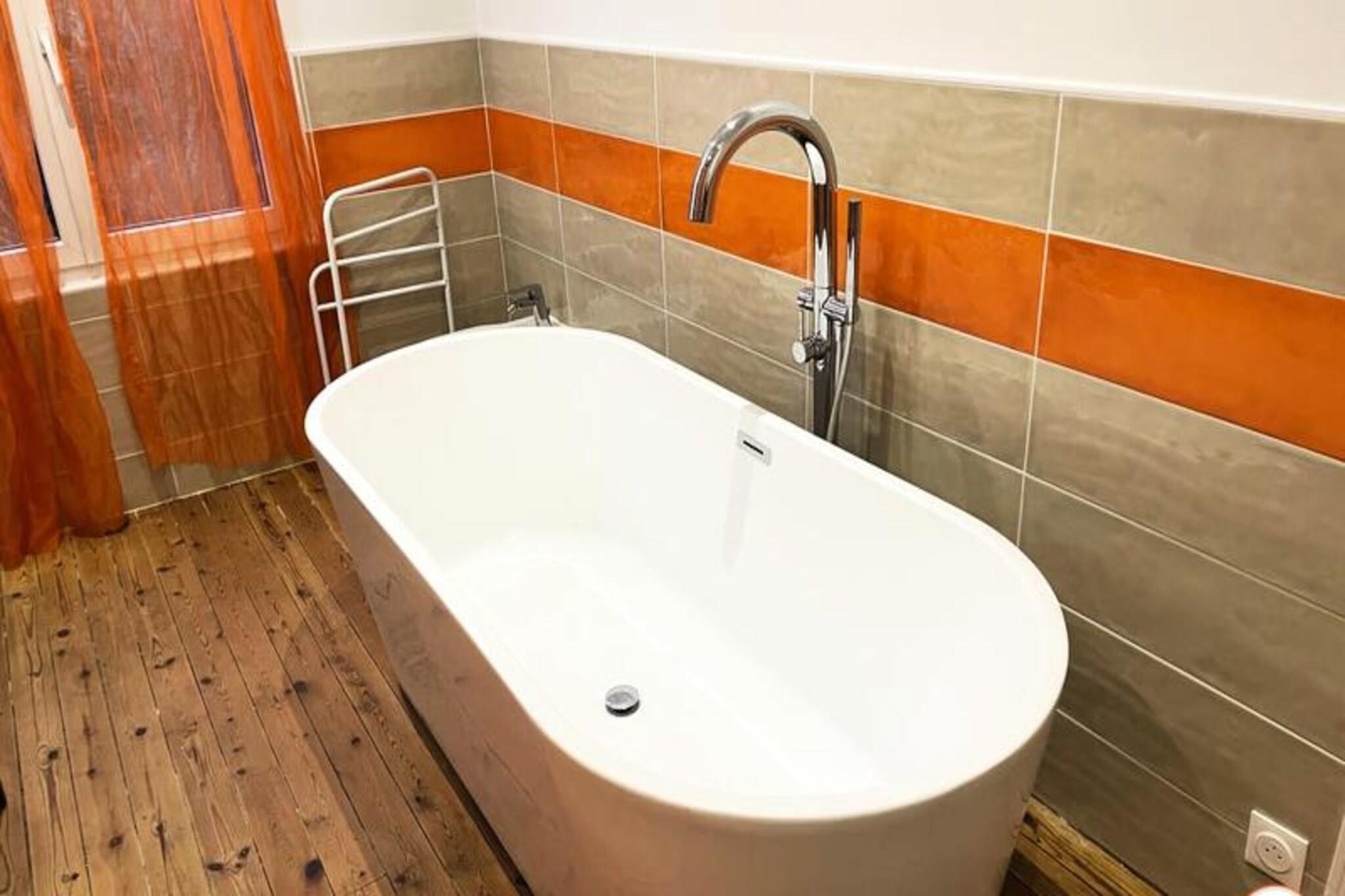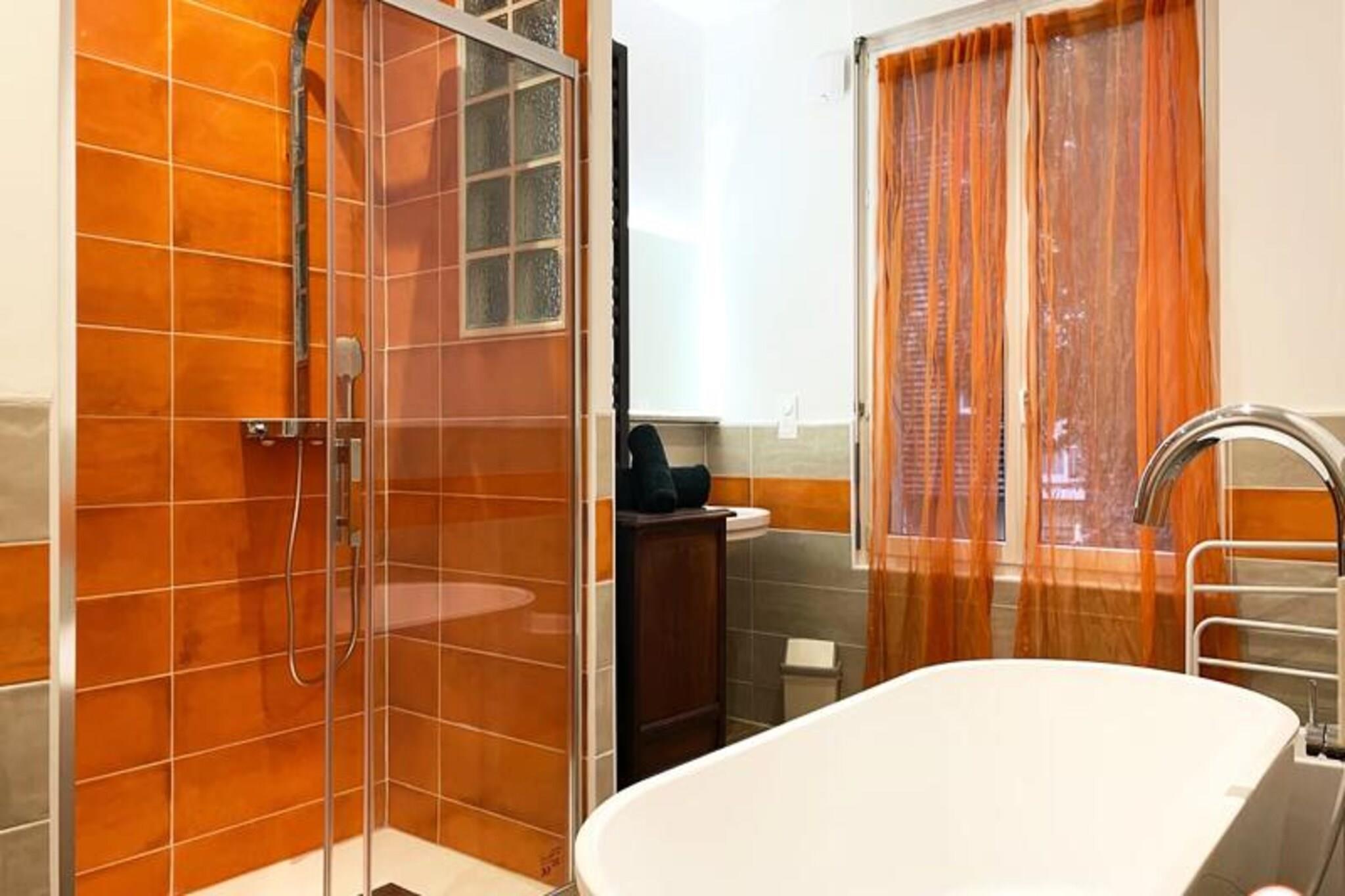 Dette charmerende byhus tilbyder et fredeligt tilflugtssted for op til 6 g?ster med privat terrasse og have. Huset har et master sovev?relse med dobbeltseng og to ekstra sovev?relser med komfortable 140x200 cm senge. En rummelig stue med komfur og fuldt udstyret k?kken, herunder ovn, k?leskab, opvaskemaskine og Nespresso kaffemaskine, sikrer et bekvemt og behageligt ophold. Huset er k?ledyrsvenligt, og en rejseseng er tilg?ngelig efter anmodning. Huset er ideelt beliggende i et roligt omr?de, kun 10 minutters gang fra togstationen og 15 minutters gang fra stranden. Butikker og restauranter er i n?rheden, hvilket g?r det nemt at udforske det pulserende lokalomr?de. Nyd den fredelige atmosf?re i nabolaget, mens du har hurtig adgang til Trouvilles attraktioner. Huset tilbyder moderne bekvemmeligheder p? tv?rs af tre niveauer, med en bruser i italiensk stil, et badekar og et ekstra brusebad. Et dedikeret arbejdsomr?de p? ?verste etage er perfekt til fjernarbejde eller for b?rn at lege. G?sterne kan ogs? nyde gratis Wi-Fi, te og kaffe, med nemme parkeringsmuligheder tilg?ngelige i n?rheden.