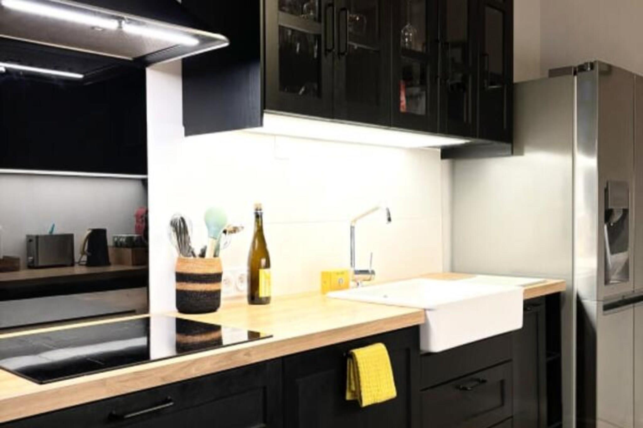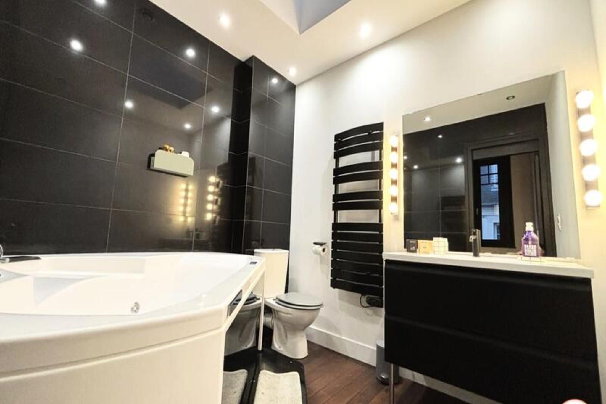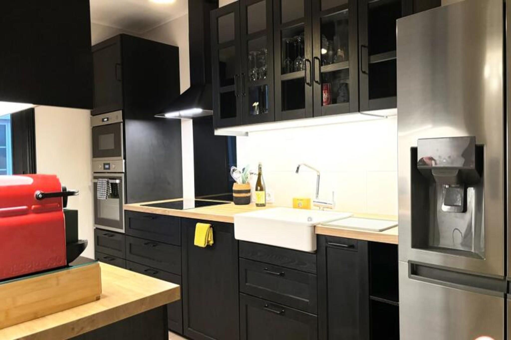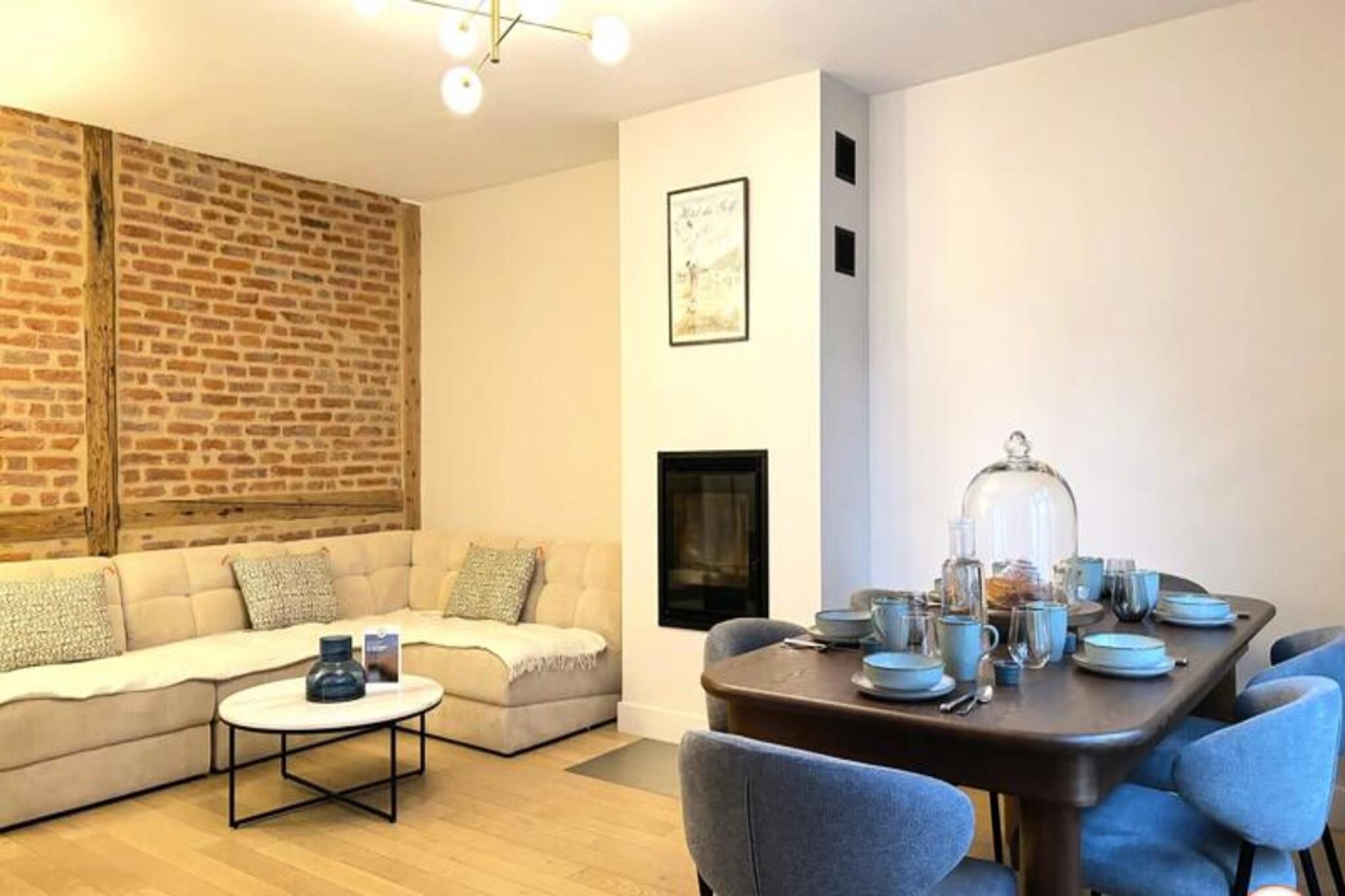 Dette elegante feriehus tilbyder et fredeligt tilflugtssted i hjertet af Trouville-sur-Mer, kun få skridt fra stranden og lokale faciliteter. Huset er fordelt på tre niveauer og har en queen-size seng i soveværelset, en køjeseng til børn og to ekstra dobbeltsenge i de andre værelser. Hjemmet kan komfortabelt rumme en familie eller gruppe, hvilket gør det ideelt til en afslappende ferie. Kæledyr er ikke tilladt, hvilket sikrer et roligt miljø for alle gæster. Placeringen af ??dette hjem er perfekt til at udforske den pulserende by Trouville. Det er kun 150 meter fra stranden, 200 meter fra kasinoet og kun en kort gåtur til fiskemarkedet, der tilbyder masser af muligheder for at nyde den lokale kultur og køkken. Den berømte gågade "Rue des Bains" er i nærheden, med butikker, restauranter og caféer at udforske. For dem, der ønsker at vove sig længere, ligger Deauville-Trouville SNCF-stationen 15 minutters gang væk, hvilket gør det nemt at opdage Normandiet-regionen. Huset er fuldt udstyret med moderne bekvemmeligheder for at sikre et behageligt ophold. Køkkenet er designet til selvforplejning med ovn, køleskab, opvaskemaskine og Nespresso-kaffemaskine, mens stuen har et smart-tv med Netflix. Boligen indeholder også to badeværelser, et brusebadeværelse med inventar i italiensk stil og et badeværelse med badekar. For ekstra bekvemmelighed har gæsterne adgang til UHD WiFi, og sengetøj og håndklæder leveres.