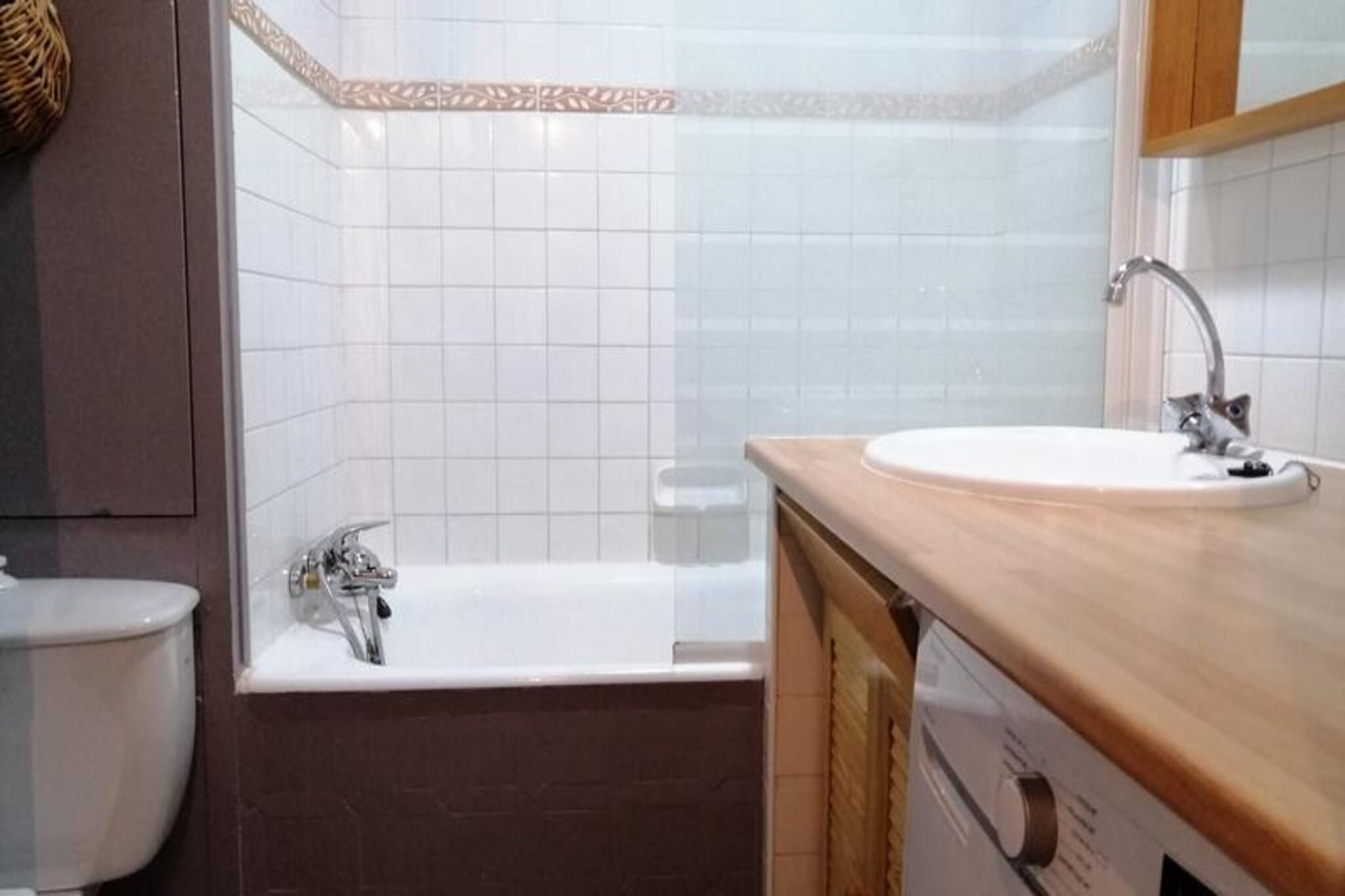 This charming studio apartment, located on the slopes of Pra-Loup 1600, offers a cozy and inviting atmosphere for up to 4 guests. It features a mountain area with two bunk beds, complete with duvets, and a living room equipped with a 2-seater sofa bed and a bench seat. The decor follows a traditional "chalet" style, and the apartment is fitted with parquet flooring for added warmth. The apartment is strictly non-smoking and does not allow pets, ensuring a peaceful retreat for all guests. A parking space is available nearby for convenience. The apartment enjoys a prime location, just 100 meters from the shopping mall, allowing easy access to local shops, cafes, and restaurants. The slopes are right at your doorstep, making it perfect for skiing enthusiasts. After a day on the slopes, you can unwind at nearby cafes or explore the markets to experience the local charm of the area. The south-facing balcony offers beautiful views of the slopes, perfect for relaxing and soaking in the scenery. For added convenience, the studio is equipped with a fully functional kitchen area, featuring an oven, refrigerator, 2 hotplates, microwave, and both a filter coffee maker and a Dolce Gusto machine. A raclette and fondue set are also provided for a cozy evening in. The bathroom is complete with a bathtub, toilet, and a washing machine, ensuring a comfortable stay. A ski box is available at level -1 to store your gear securely.