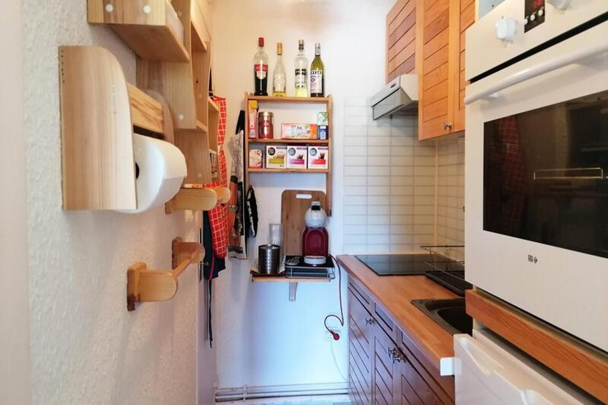 This cozy studio apartment for 4 to 5 people offers a comfortable stay with a south-east facing balcony and panoramic mountain views. The living room features a convertible sofa, a foldaway bed, and an HD TV, ensuring ample space for relaxation. The studio also includes a mountain corner with two bunk beds and storage for your belongings. This non-smoking apartment is pet-free and provides a pleasant environment with parquet flooring, double glazing, and wooden shutters to maintain a peaceful atmosphere. The property is ideally located just 200 meters from the Molanès cable car and 40 meters from a free shuttle stop, making it easy to access skiing and other mountain activities. A short distance away, you'll find local cafes and shops, perfect for grabbing a warm drink or snacks. Explore nearby markets for local goods and enjoy the beauty of the surrounding mountainous landscape. The apartment is equipped with a functional kitchen area, including a refrigerator, four ceramic hobs, an oven, microwave, and coffee maker. For added convenience, a raclette grill, toaster, and kettle are also available. The bathroom has a shower and washing machine, while the independent WC ensures privacy. A dedicated ski box is provided for your winter gear, ensuring a hassle-free experience during your stay.