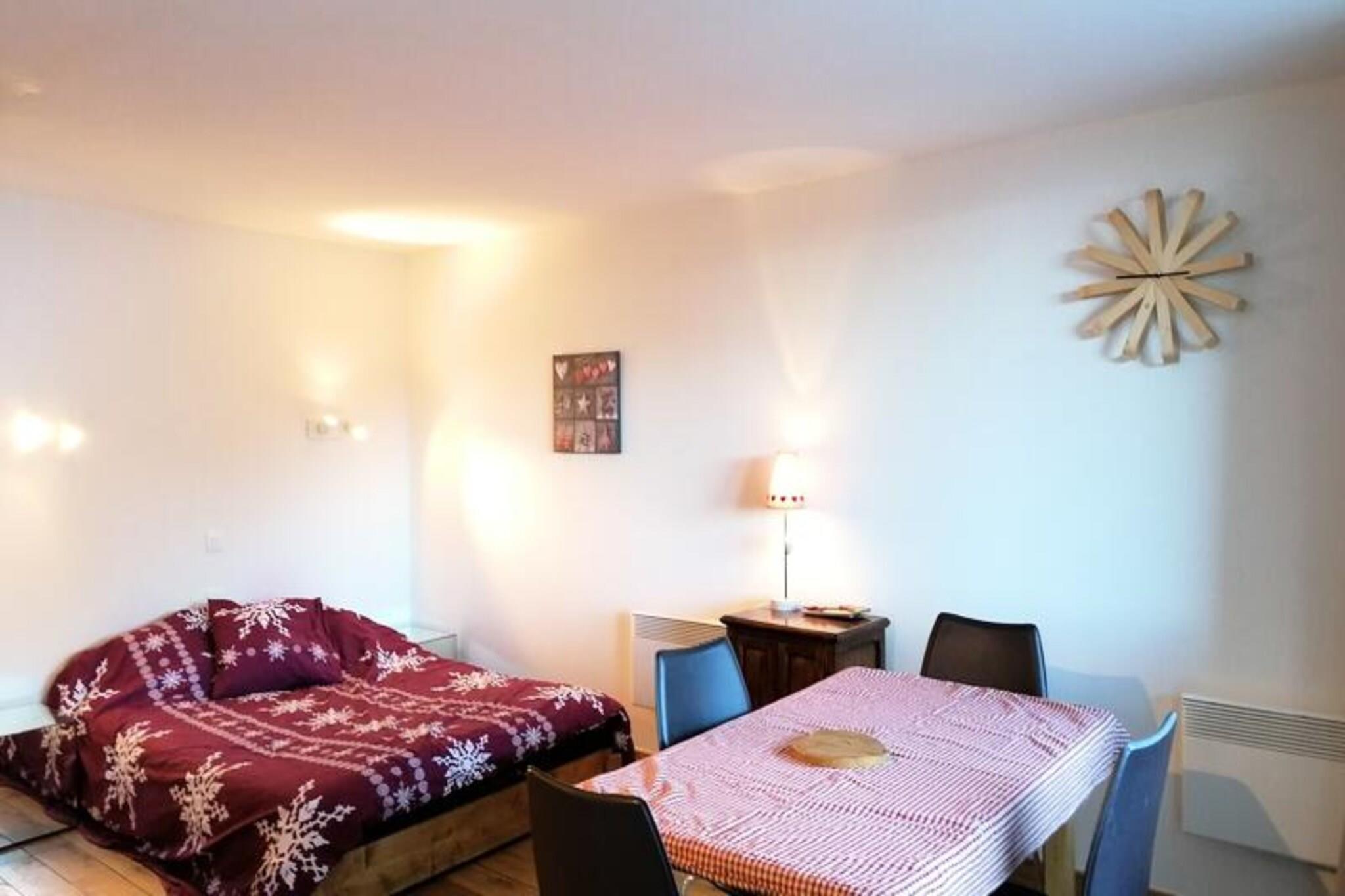 Denne storslåede, renoverede 2-værelses lejlighed på ca. 48 m² ligger på 5. sal i en bygning med elevator og kan komfortabelt rumme op til fire gæster. Sovearrangementer inkluderer en permanent åben 140 cm BZ sovesofa i opholdsområdet og to køjesenge i et blindt rum (ingen vinduer). Lejligheden er ikke-ryger, og kæledyr er strengt forbudt. Der er et privat skiskab i stueetagen, og der er adgang til privat udendørs parkering. Beliggende i Pra-Loup 1600, har dette feriehus en privilegeret beliggenhed kun 20 m fra pisterne og 50 m fra indkøbscentret. Dens syd/vest eksponering og lille balkon tilbyder en dejlig udsigt over resortet og pisterne. Denne førsteklasses beliggenhed giver øjeblikkelig adgang til skiløb og andre vinteraktiviteter samt butikker, restauranter og andre faciliteter. Denne lejlighed har en stue med spiseplads og moderne indretning, et åbent køkken (køleskab, opvaskemaskine, keramisk kogeplade, emhætte, Nespresso- og filterkaffemaskine, raclette-grill), et badeværelse med badekar og vaskemaskine samt separat toilet . Lejligheden har parketgulv overalt. Varme er inkluderet. Der kræves et depositum.