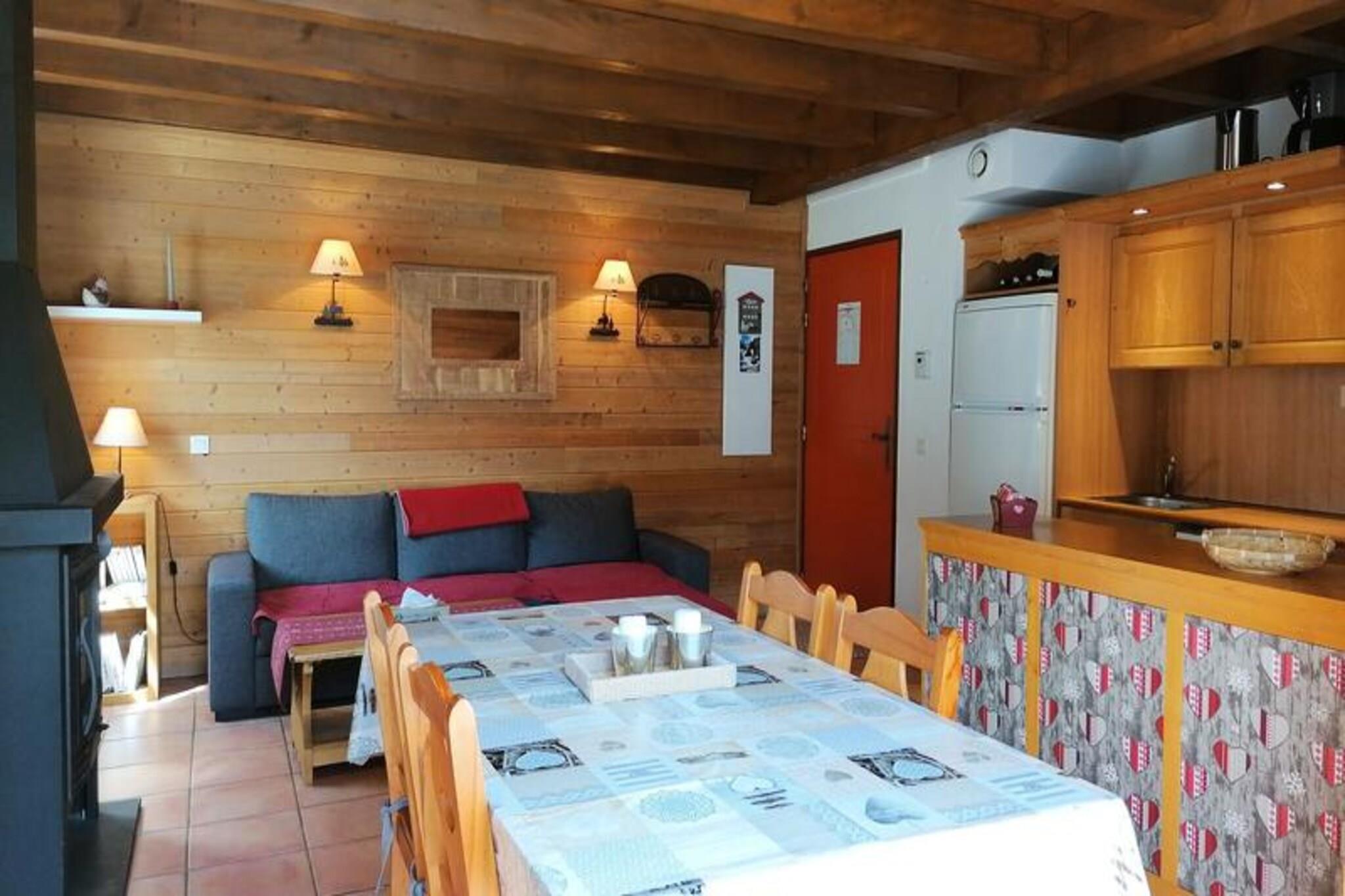 This charming 3-room chalet, ideal for 4-6 people, spans approximately 49m² and is located in a peaceful, nature-filled setting. The chalet features two cozy bedrooms, each with a double bed and ample storage space. The living room is equipped with a convertible corner sofa that sleeps two, an HD TV, and a beautiful insert fireplace, perfect for relaxing after a day outdoors. The property is pet-free and non-smoking, ensuring a fresh and clean environment. A deposit is required upon check-in. Located in a serene area, this chalet offers a quiet escape while being close to local attractions. The surrounding mountains provide the perfect backdrop for outdoor activities, from hiking to skiing, depending on the season. Nearby cafes and markets offer local products, giving you a chance to explore the regional cuisine and culture. The area is ideal for those seeking both tranquility and adventure. The chalet comes fully equipped with a kitchen area, featuring a ceramic hob, oven, fridge/freezer, dishwasher, washing machine, microwave, and coffee makers (both Nespresso and filter). The bathroom includes a bathtub and sink, with an independent WC for added convenience. The south-facing terrace is an excellent spot for outdoor relaxation, and the chalet includes free Wi-Fi and an Orange TV Box to keep you entertained.